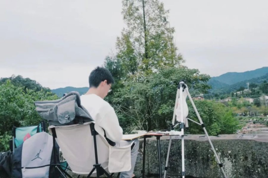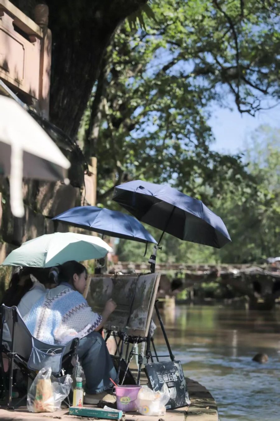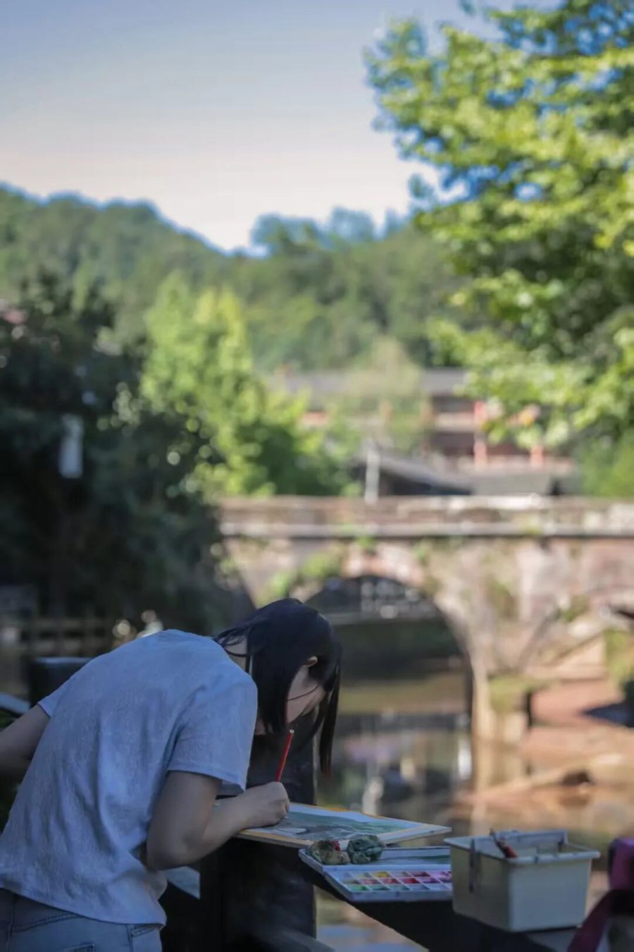 一场艺术与自然的邂逅,带着画板与颜料,坐在古树旁边,静静描绘着眼前的风景,水上的倒影,古宅的飞檐..