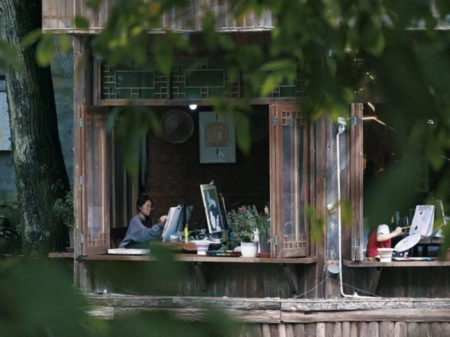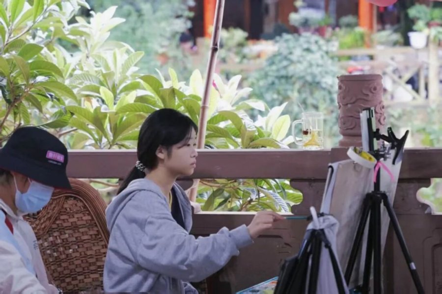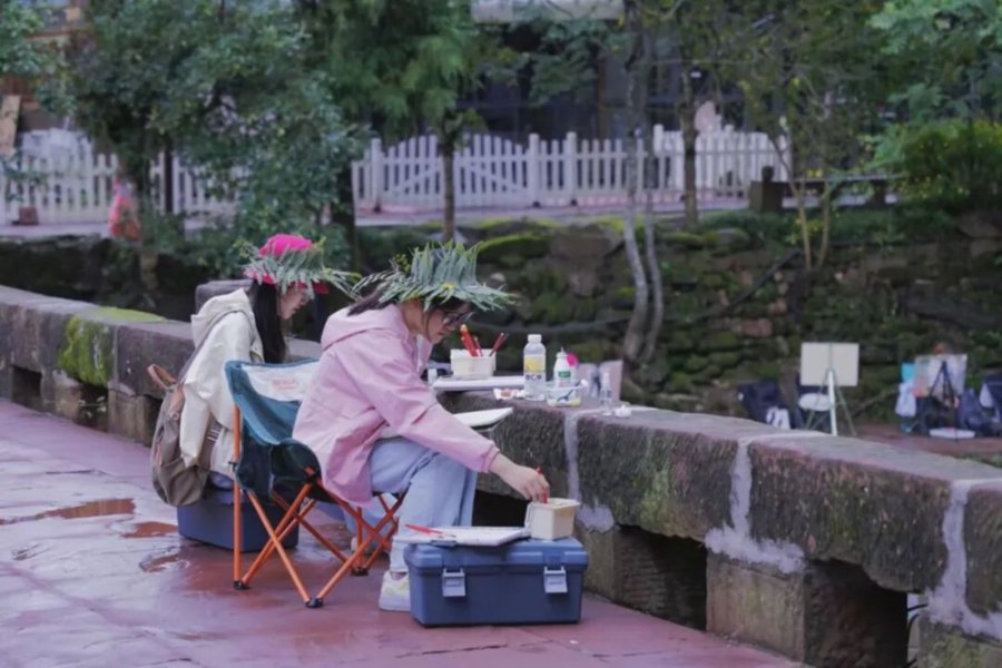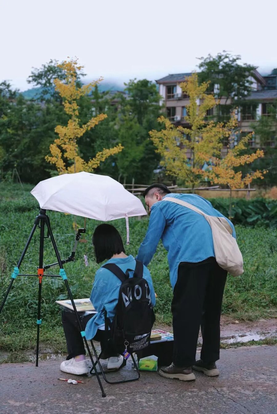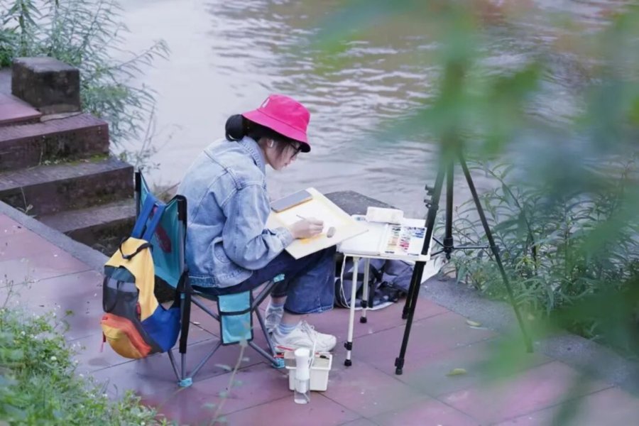 一场艺术与自然的邂逅,带着画板与颜料,坐在古树旁边,静静描绘着眼前的风景,水上的倒影,古宅的飞檐..