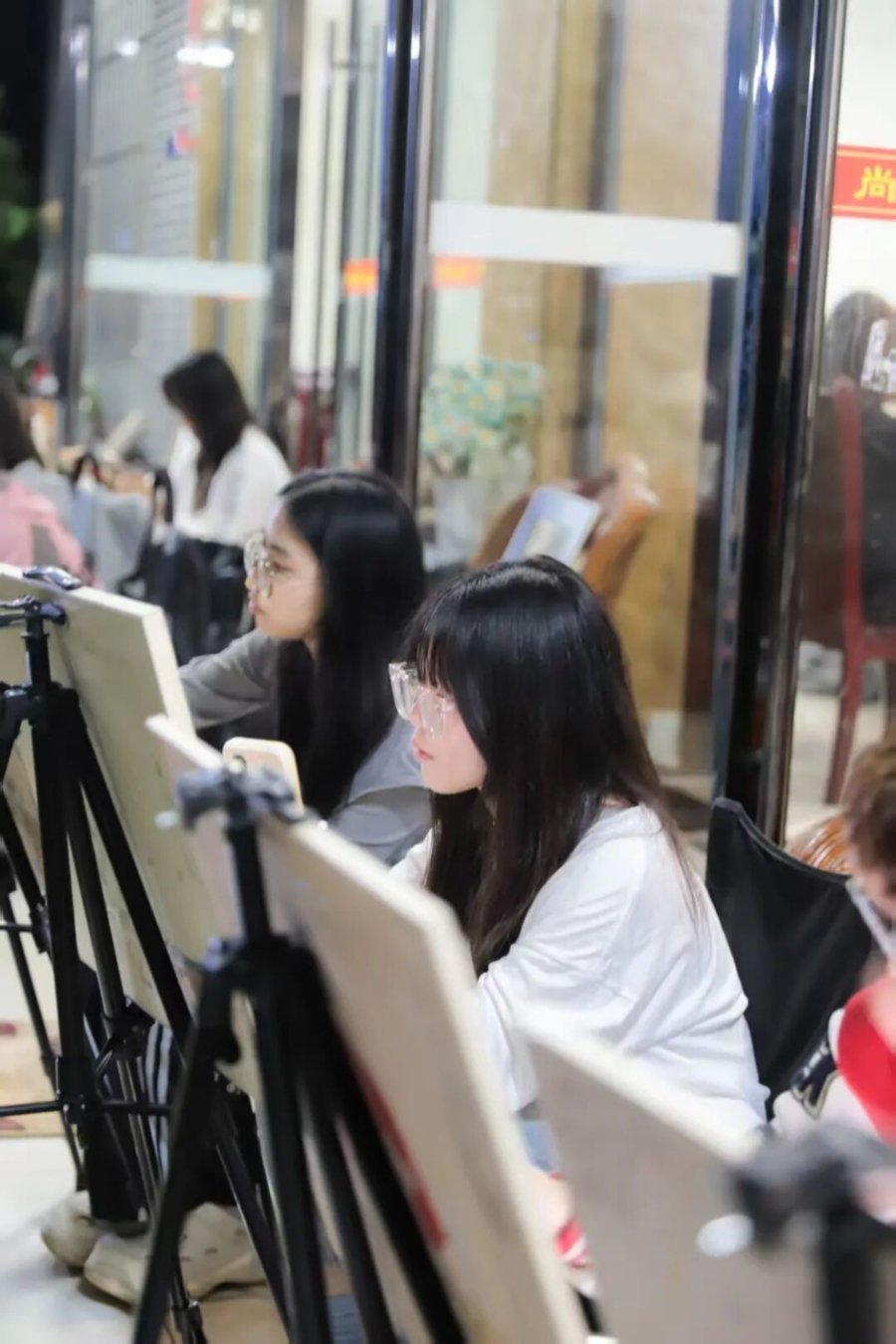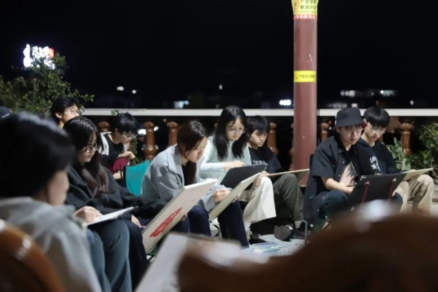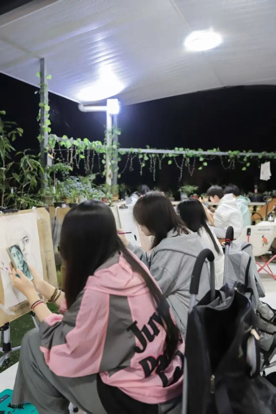 夜色降临,寂静的夜晚只听得见画笔划过画纸的声音,沙沙作响,悦耳动听。并肩作战的同学、一丝不苟的老师,一起与自然相拥,与艺术相遇!