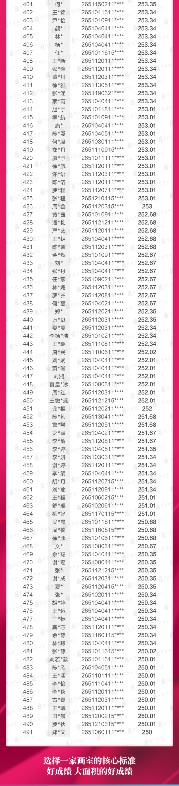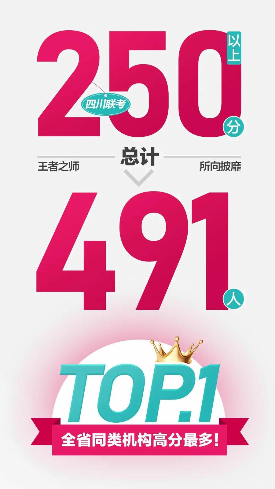 另外,我校学生250分以上的高分多达491人!连续三年全省所有机构该高分段最多!