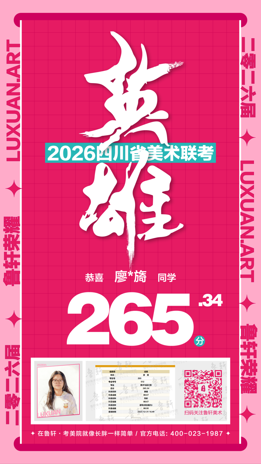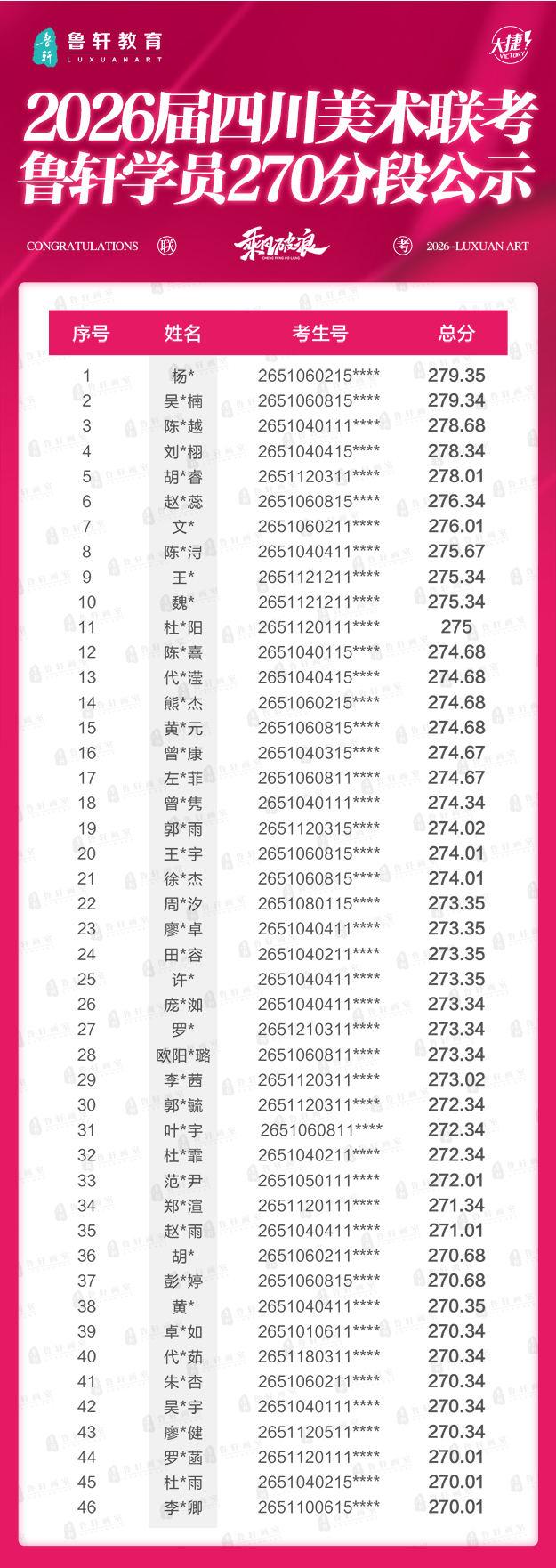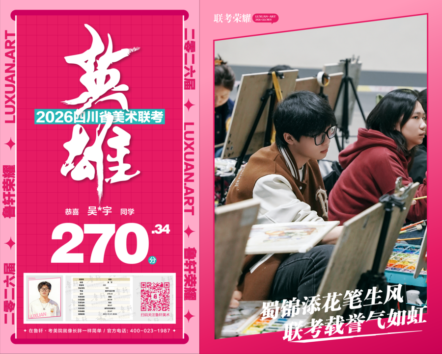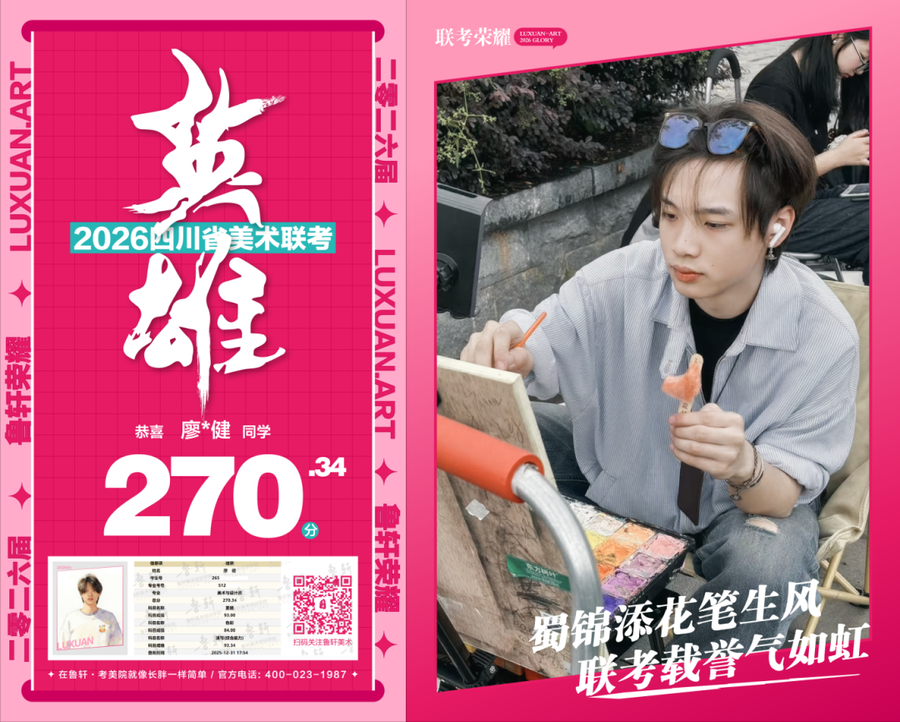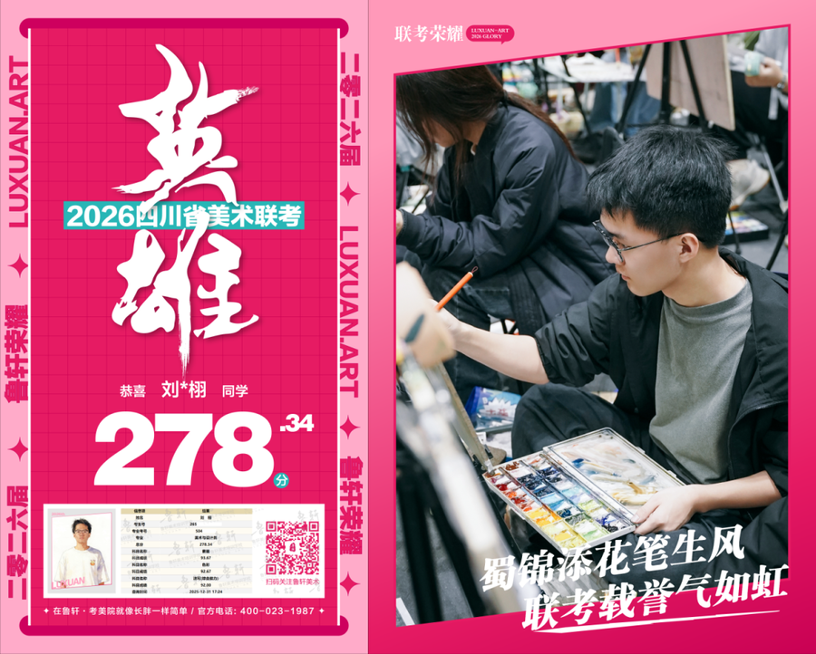 四川美术联考放榜,鲁轩川军强势霸榜