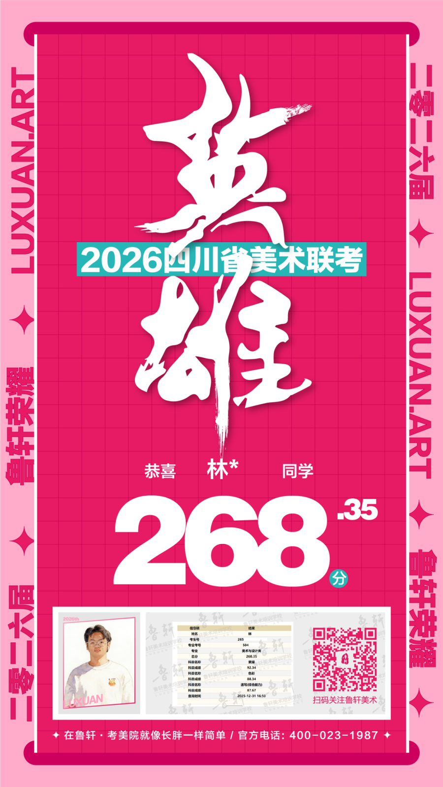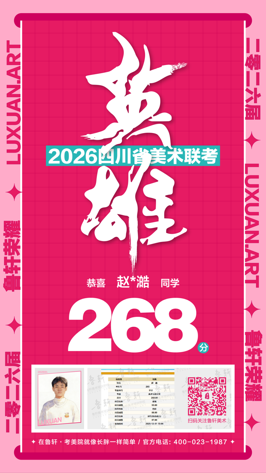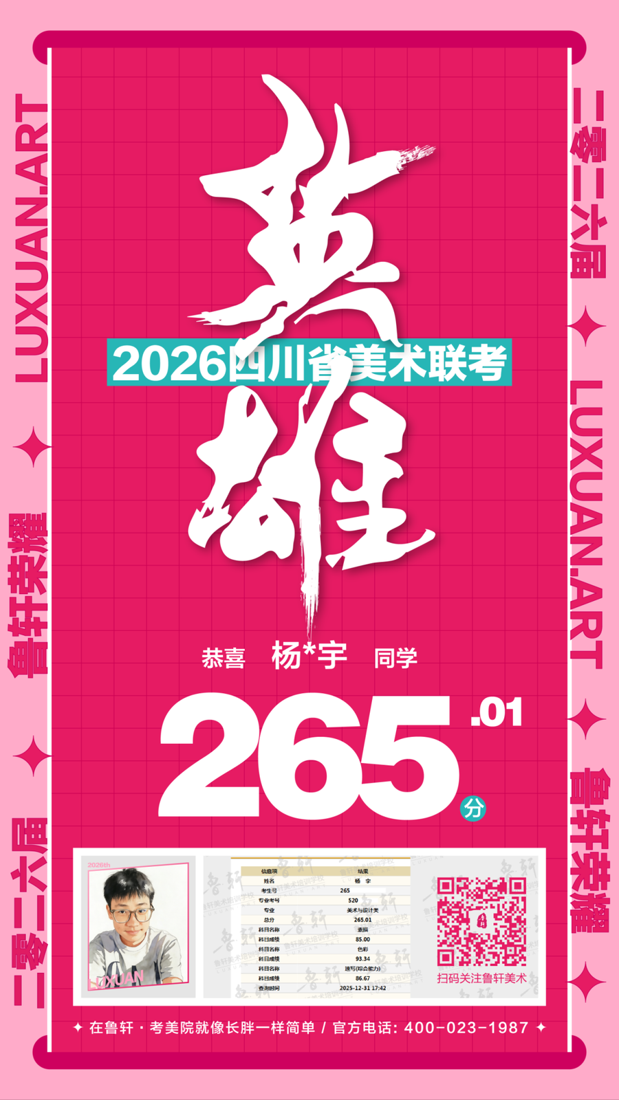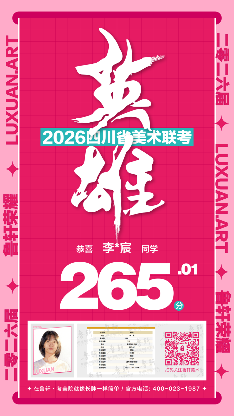 四川美术联考放榜,鲁轩川军强势霸榜