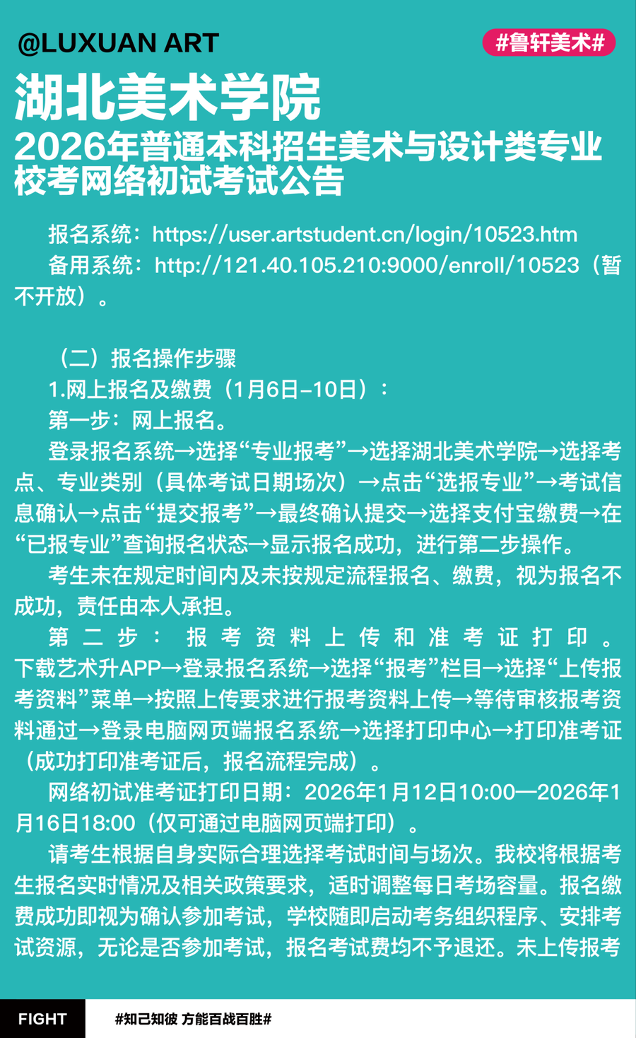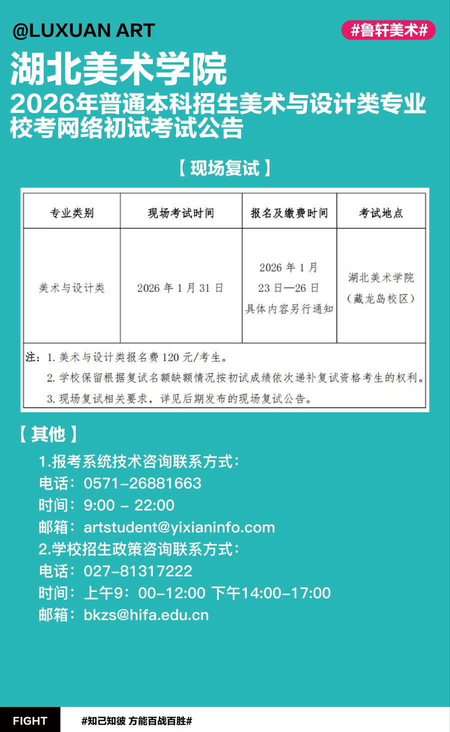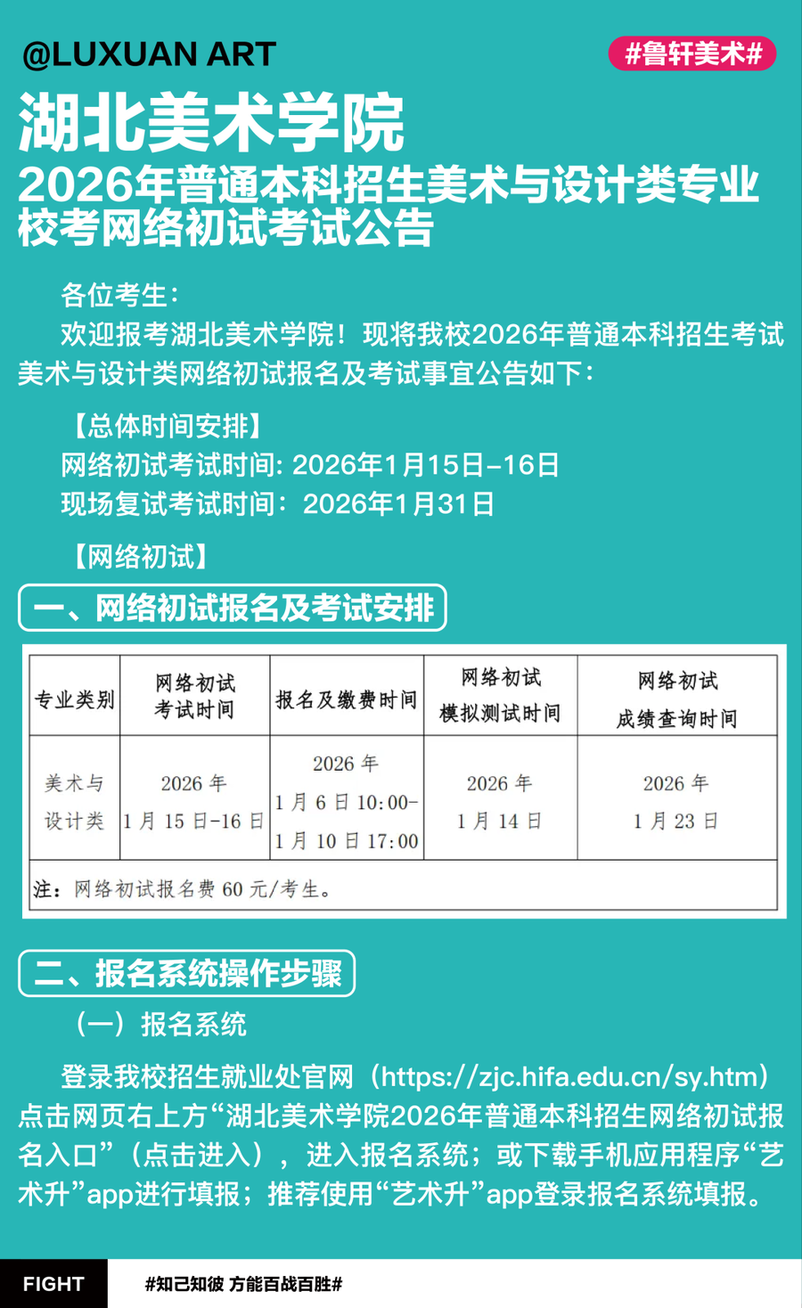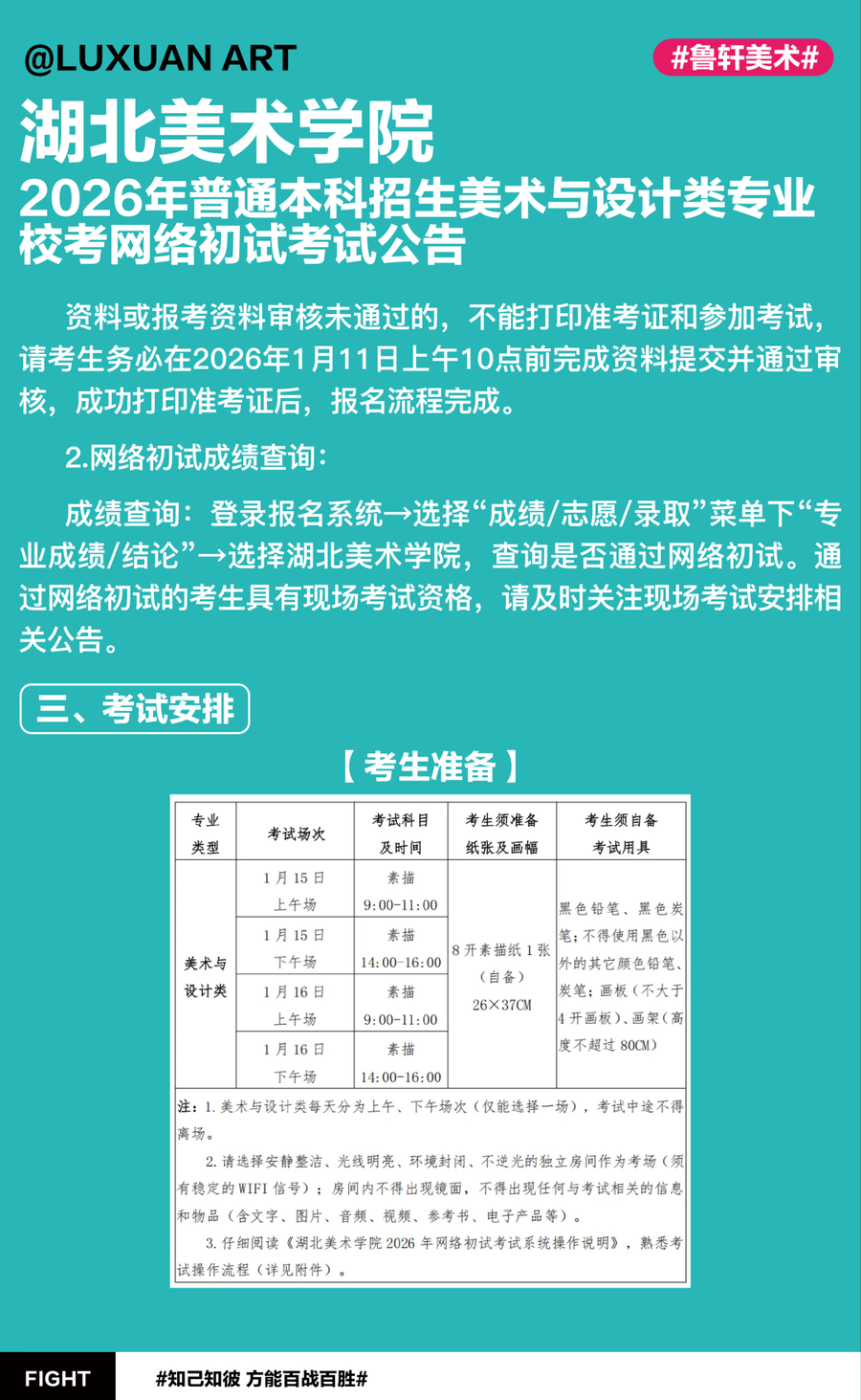 最新资讯 | 湖北美术学院2026年普通本科招生美术与设计类专业校考网络初试考试公告