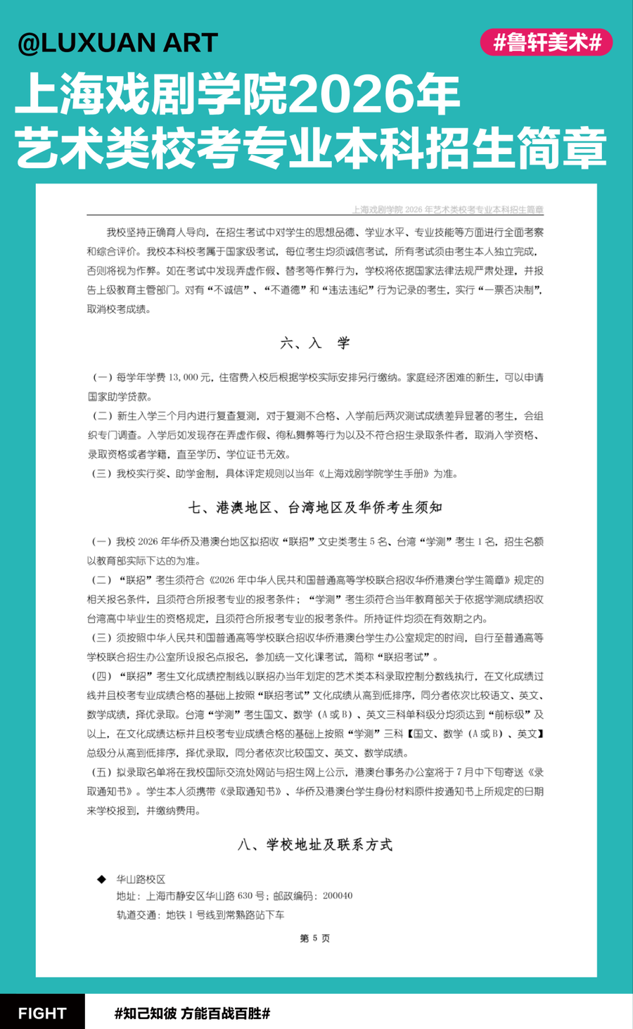 最新资讯 | 上海戏剧学院2026年艺术类校考专业本科招生简章,1月11日初试!