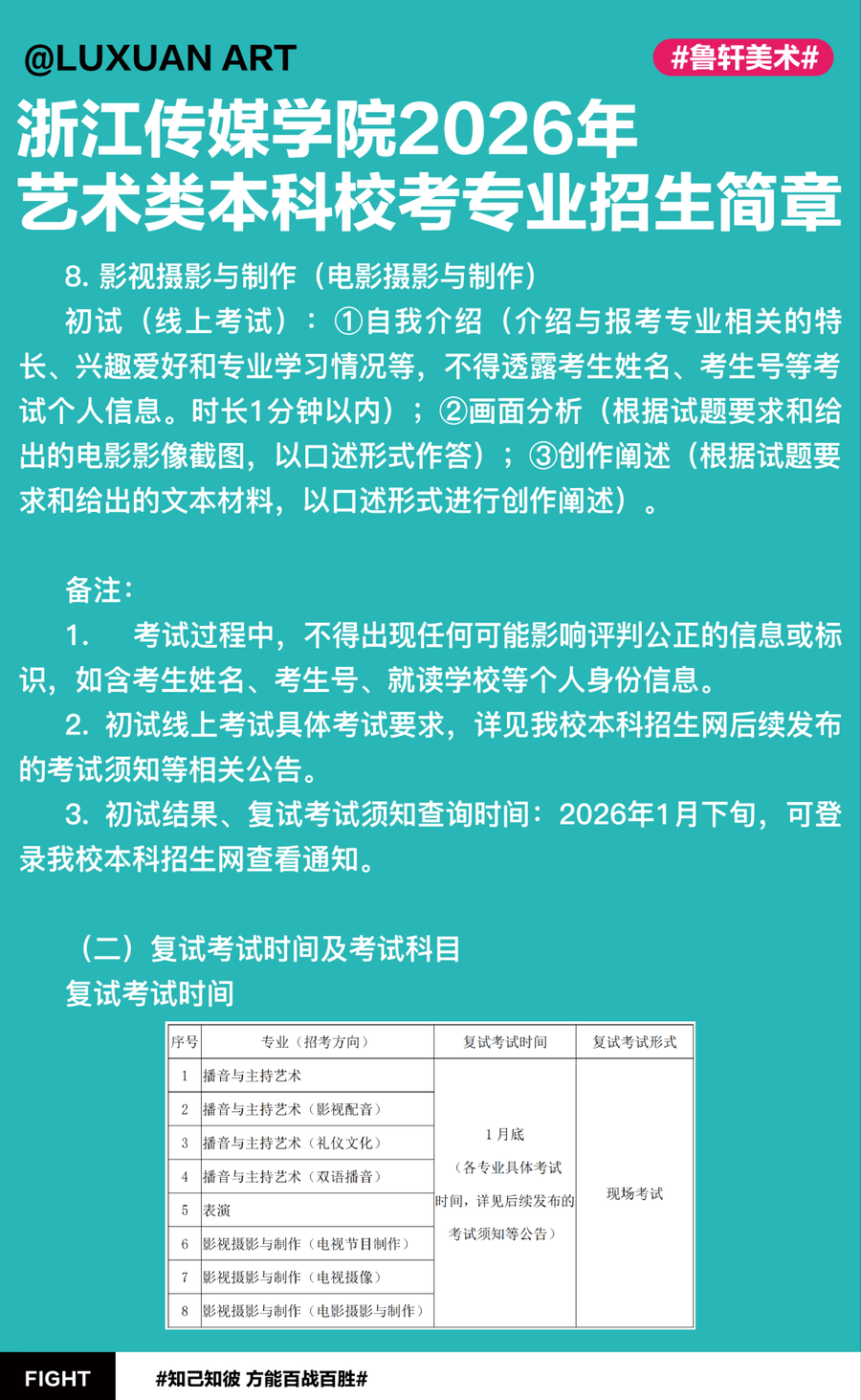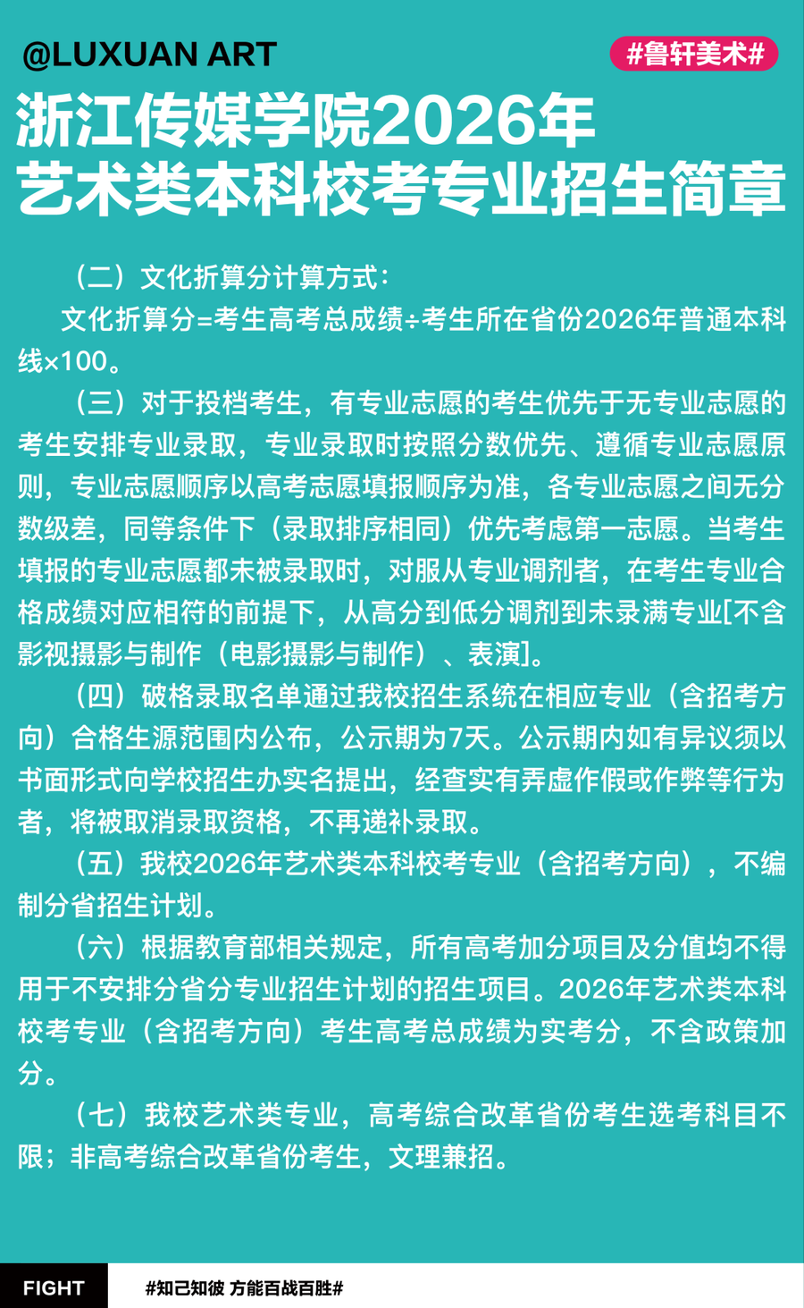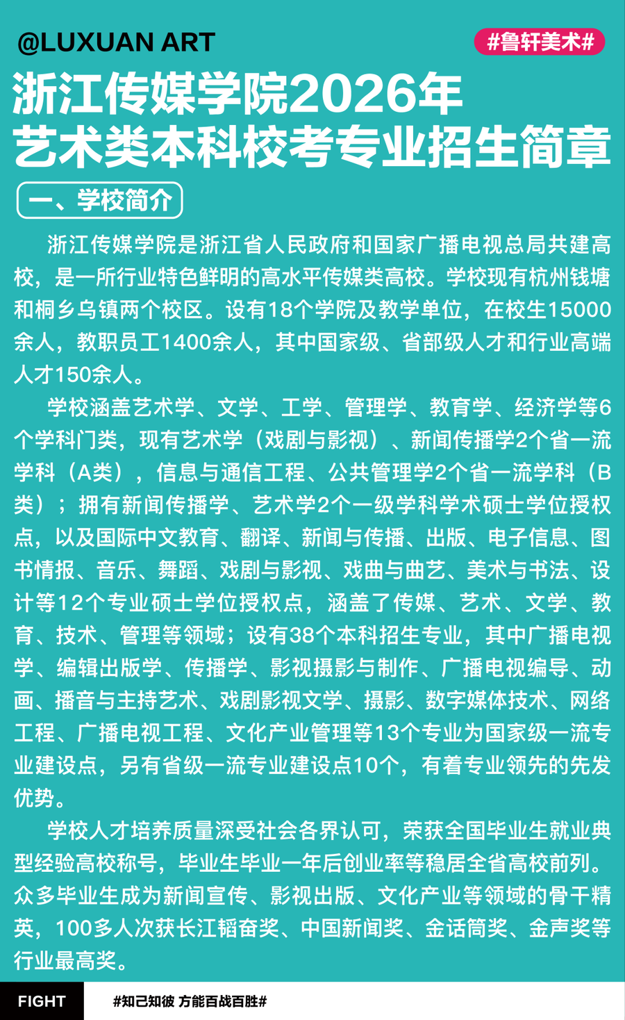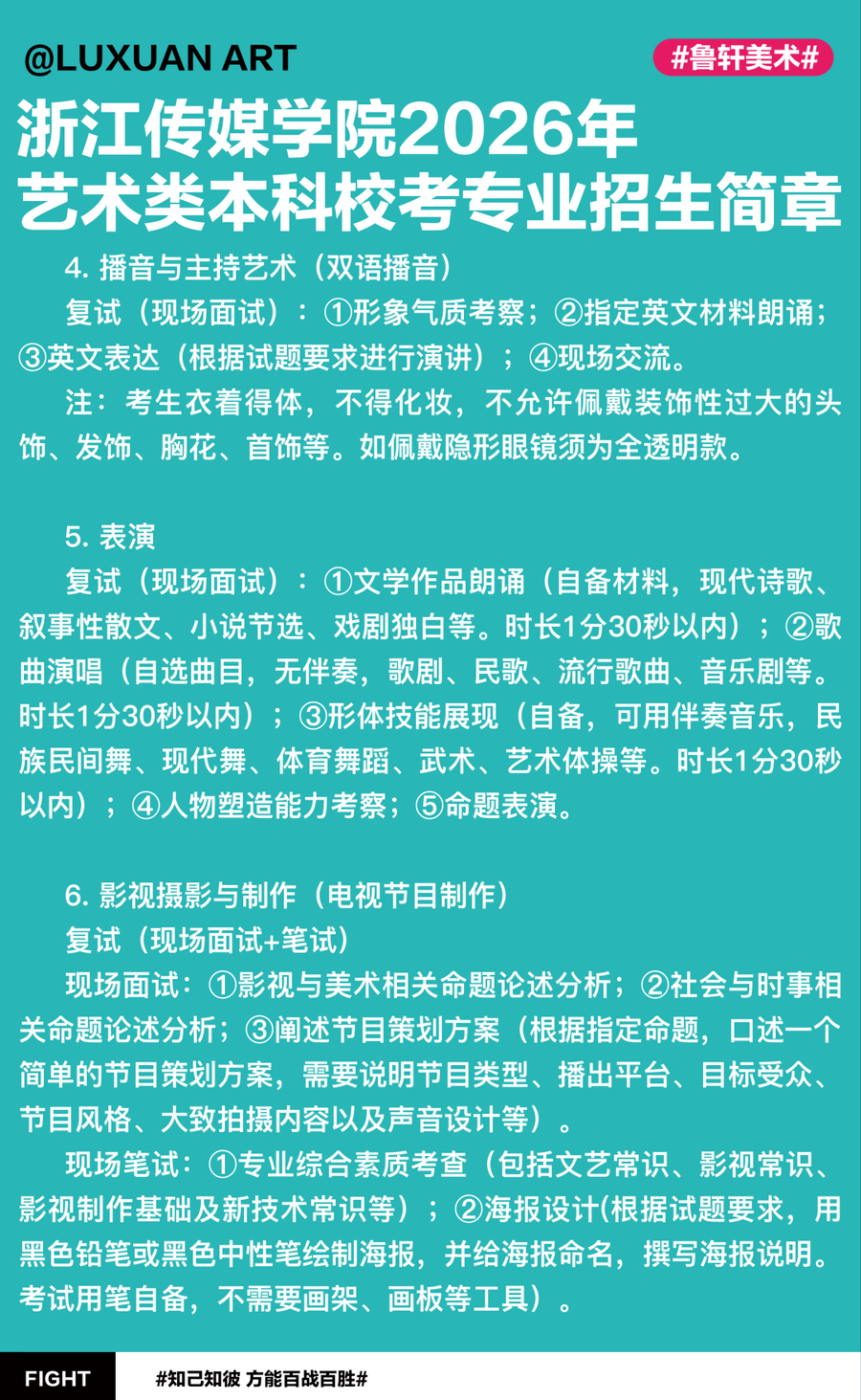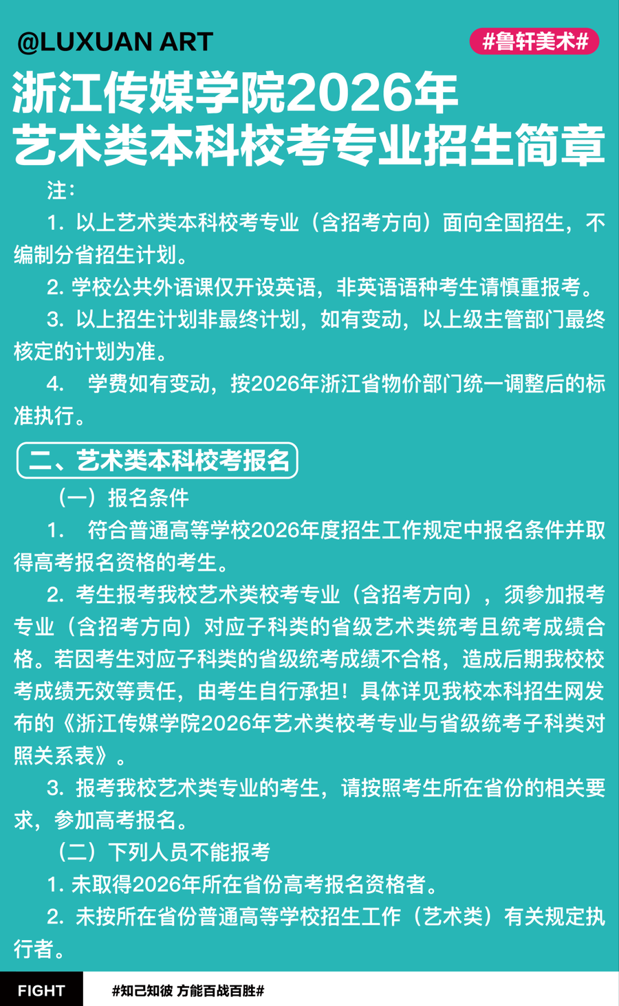最新资讯 | 浙江传媒学院2026年艺术类本科校考专业招生简章,1月12日至14日初试!