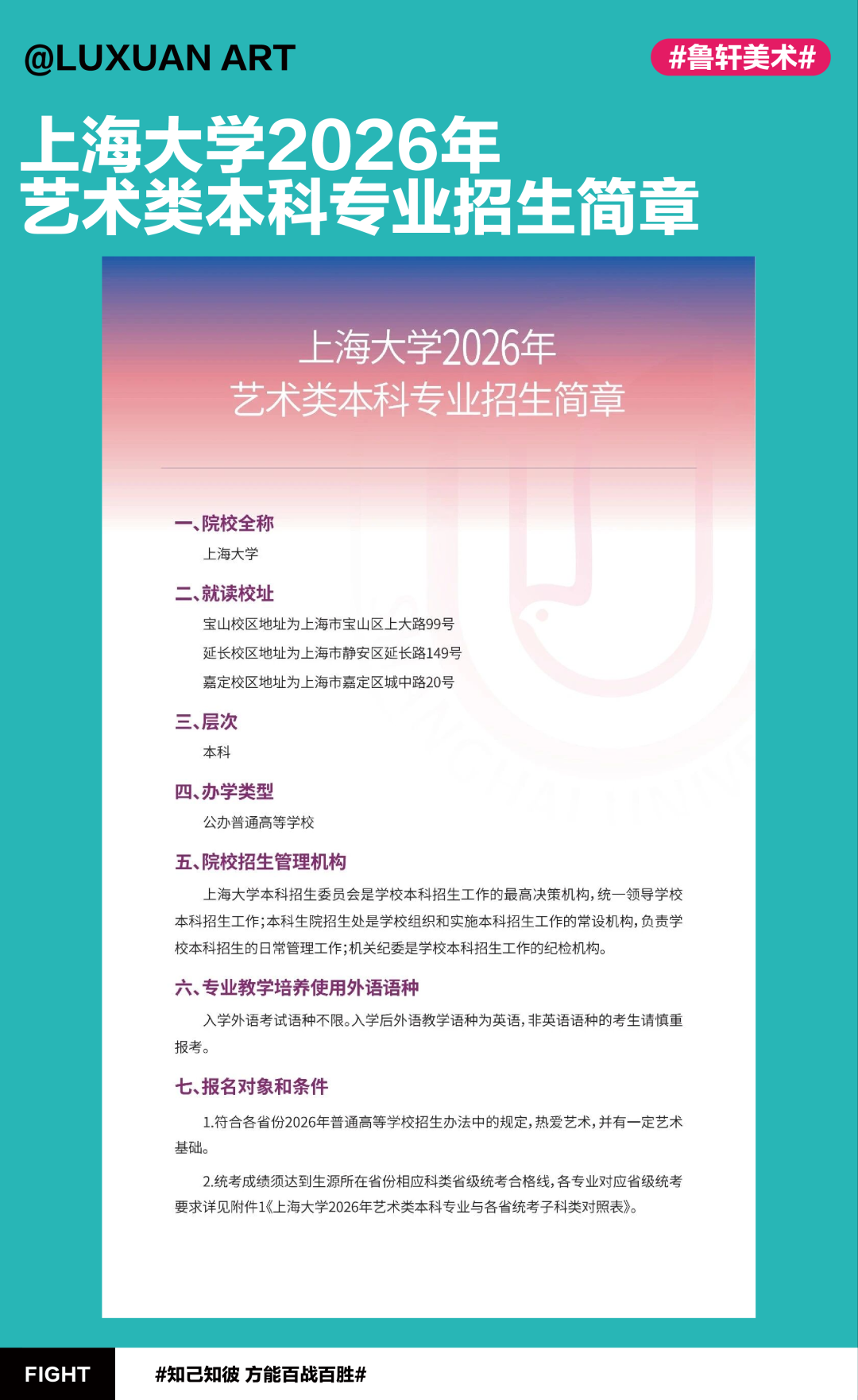 最新资讯 | 上海大学2026年艺术类本科专业招生简章