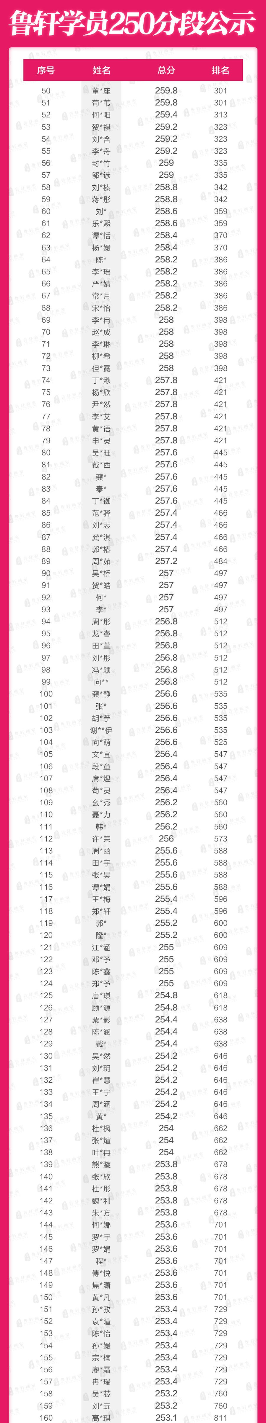 ❖全市前50名,鲁轩独占9位,占全市前50名近1/5!
