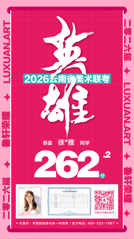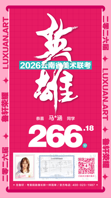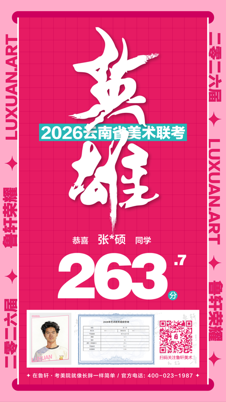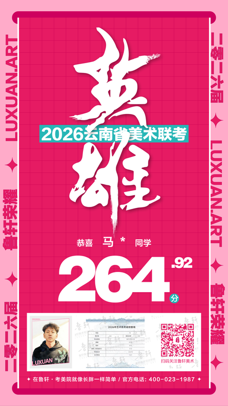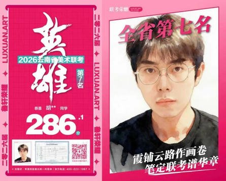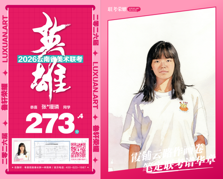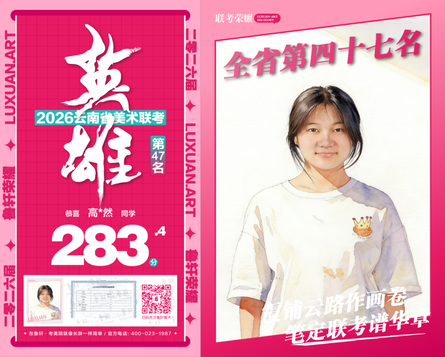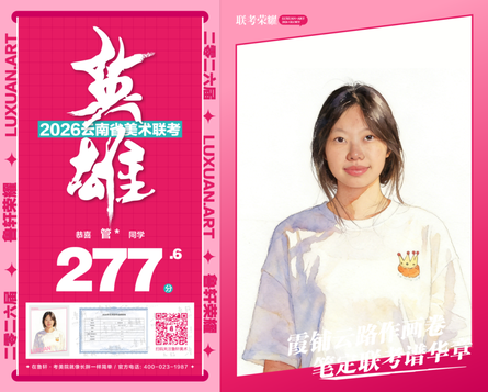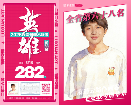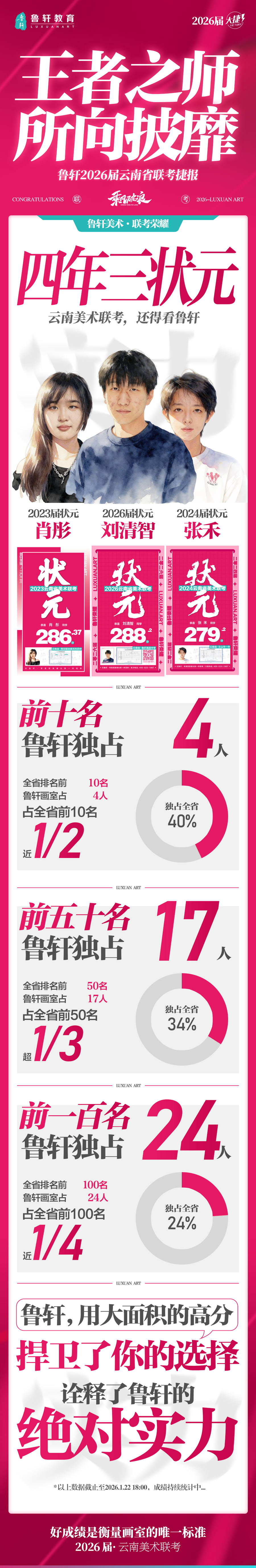 ❖ 2024届,继19届,23届之后,鲁轩再次拿下云南美术联考魁首!全省两连冠!其中,全省前6名独占3位,全省前100名霸榜20位!