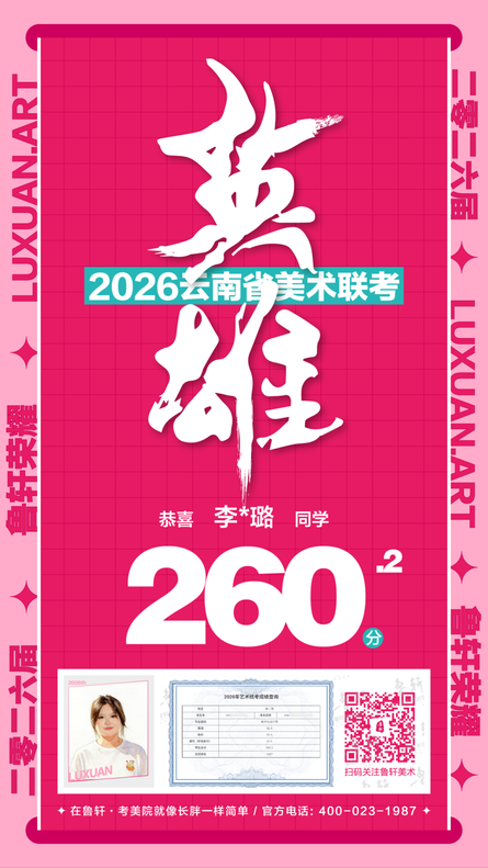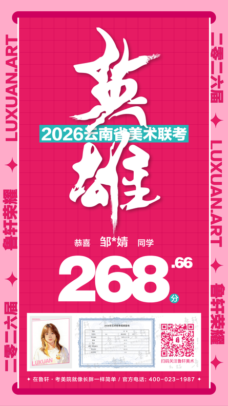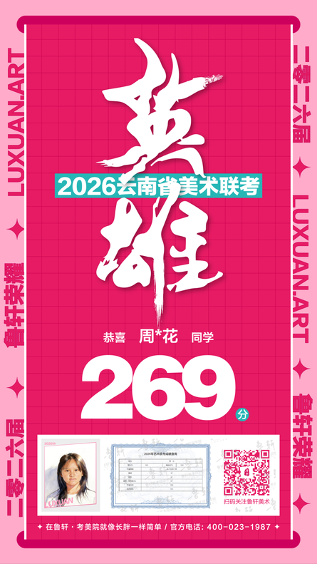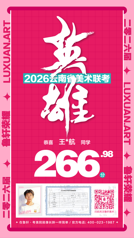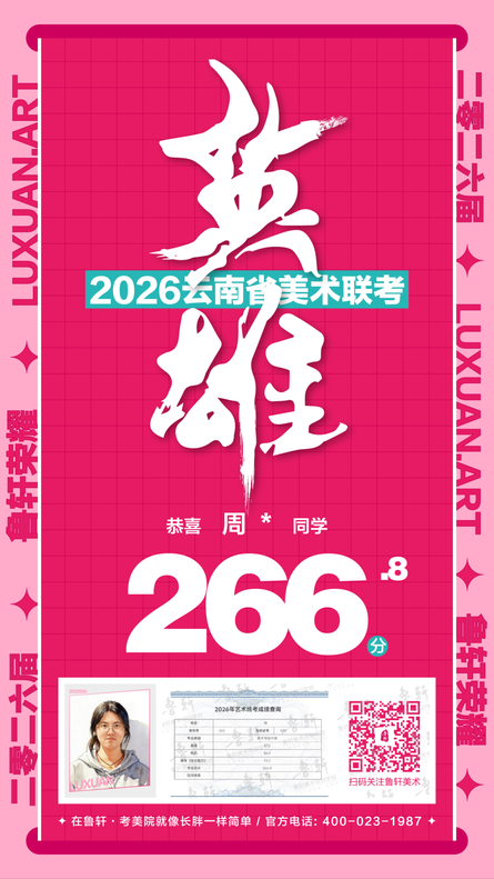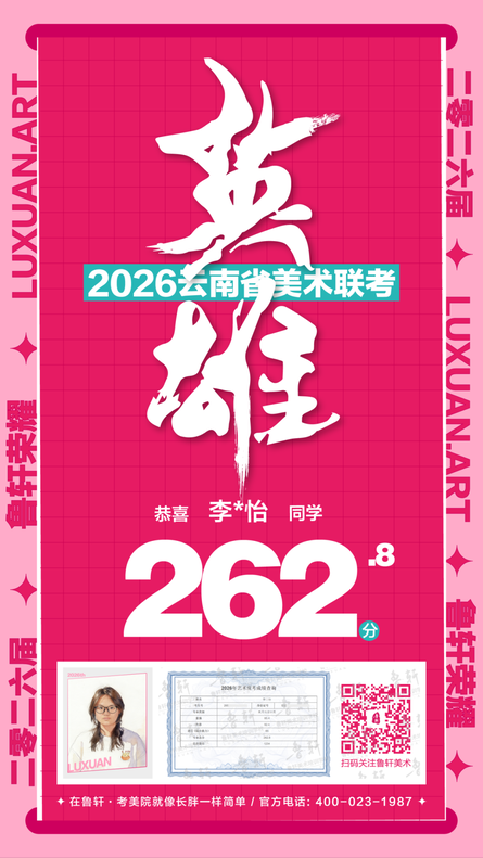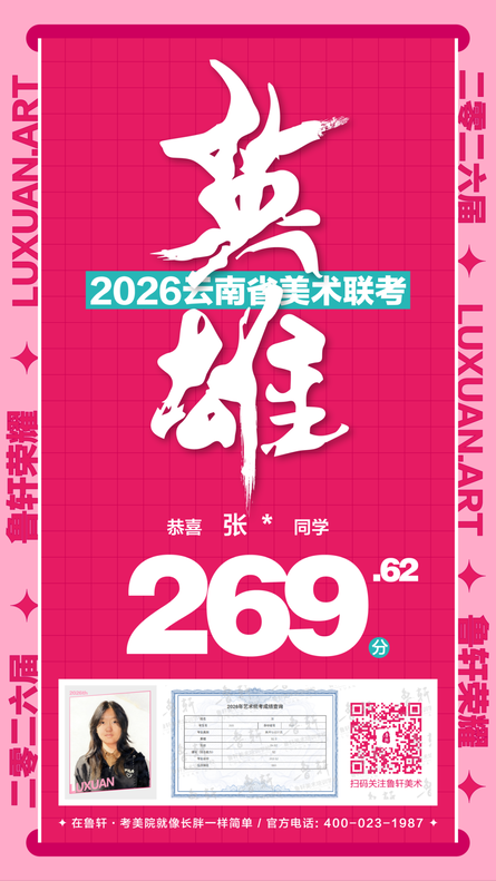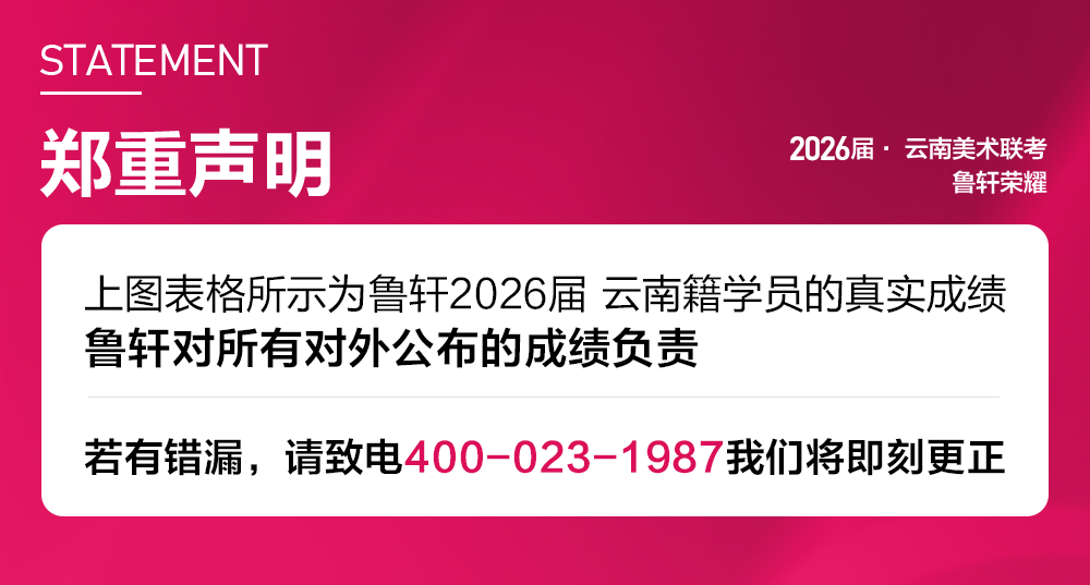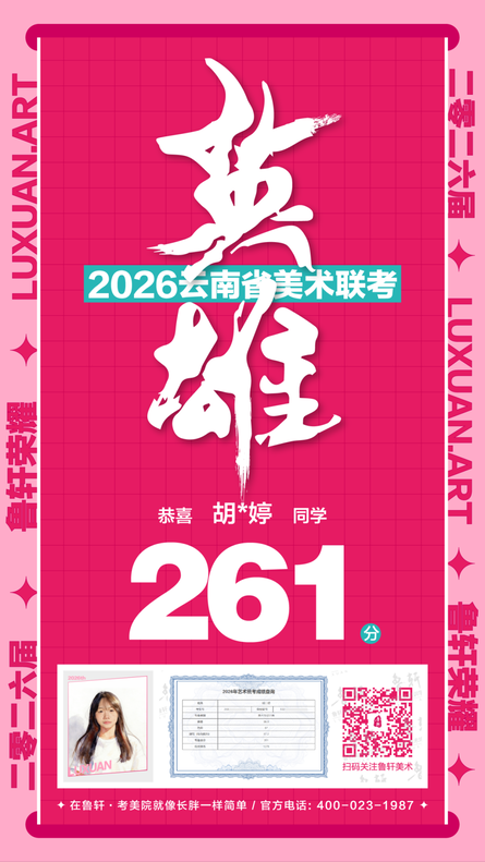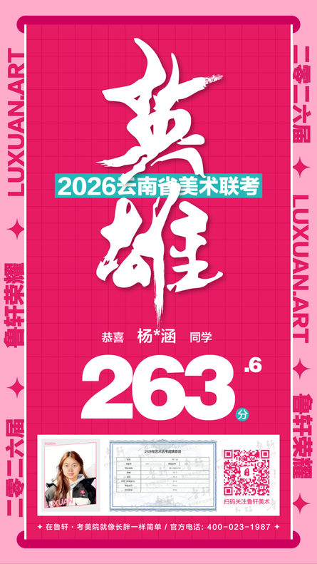❖ 2024届,继19届,23届之后,鲁轩再次拿下云南美术联考魁首!全省两连冠!其中,全省前6名独占3位,全省前100名霸榜20位!