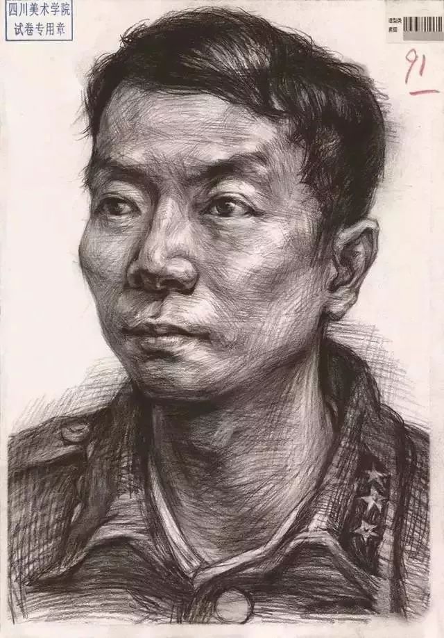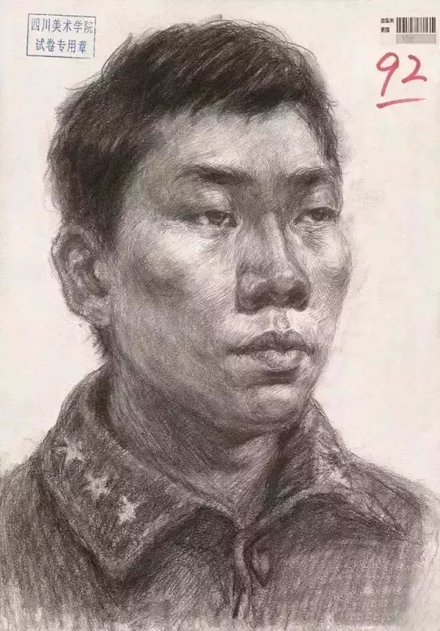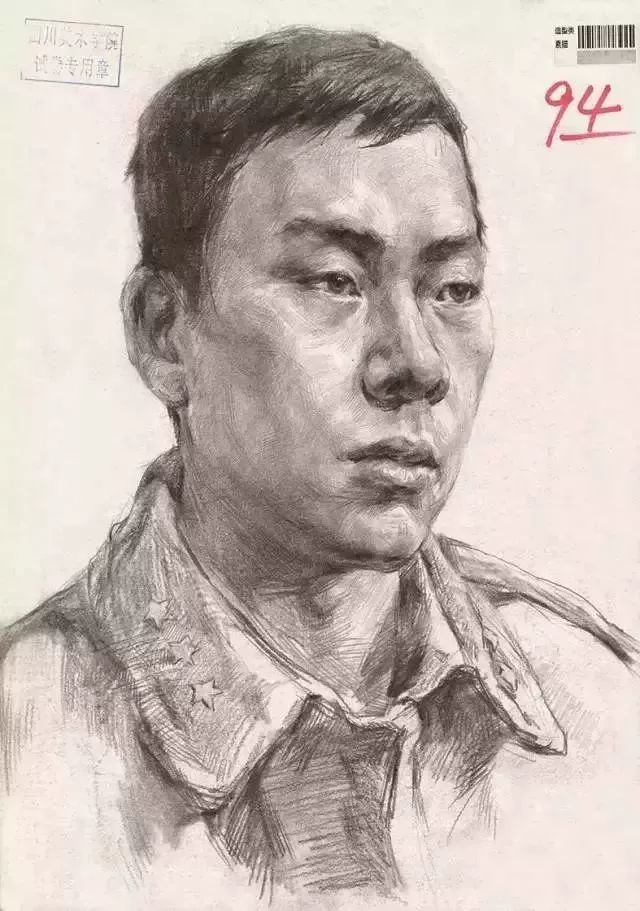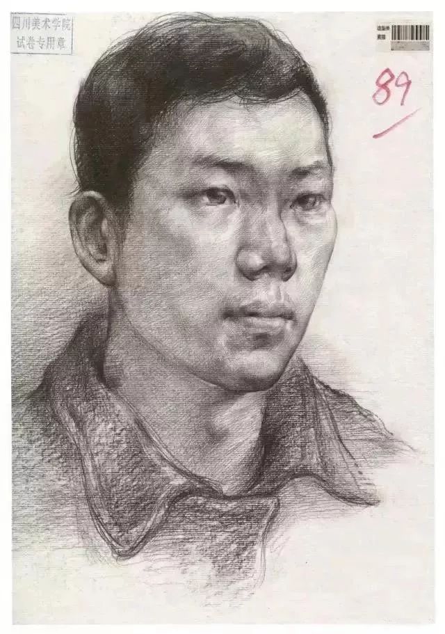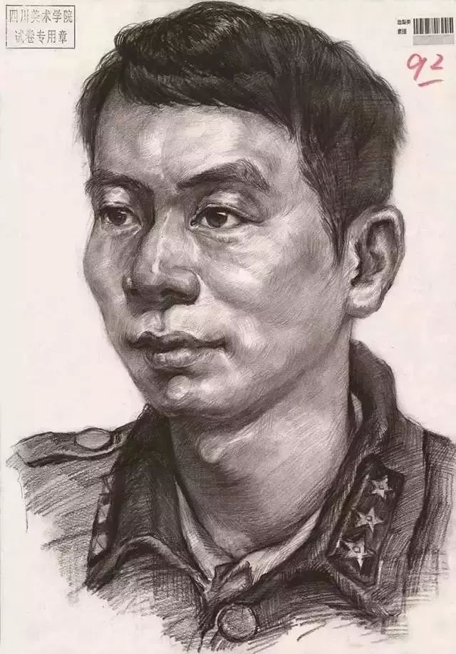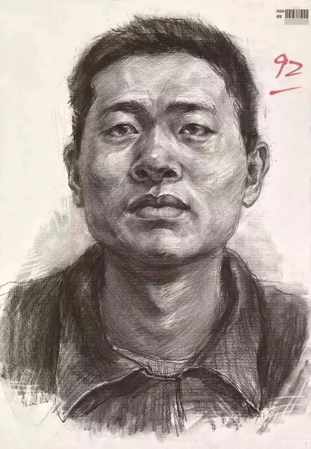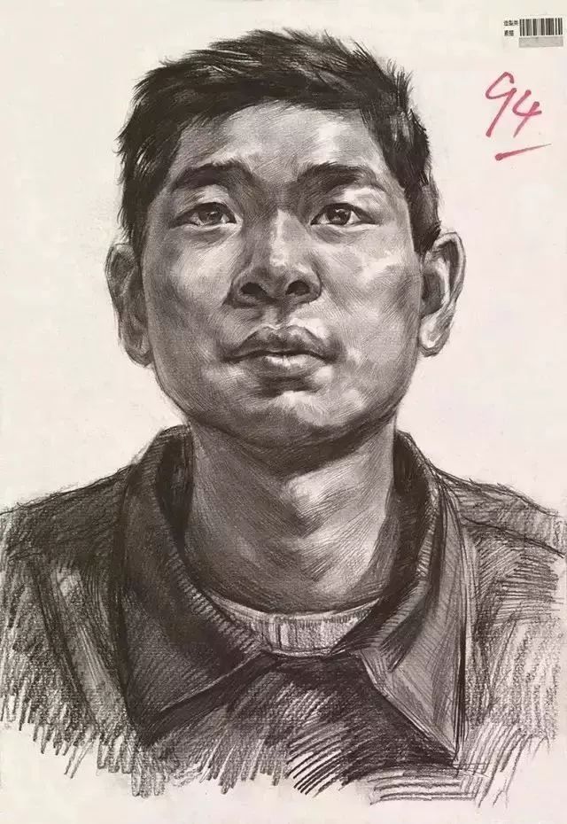 ▲ 名师点评:该作者具备很强的概括能力,用最简洁的色调将亮部和暗部分开,明暗交界线处理轻松富有变化,暗部形体结构透明柔和,但不空洞。五官刻画生动,神情自然,衣领处理也十分简练。