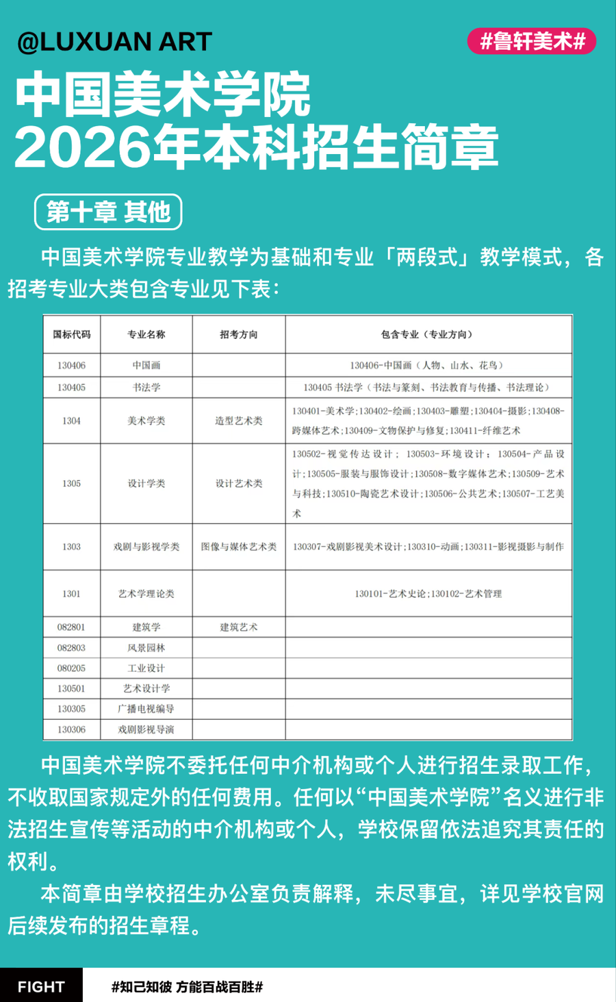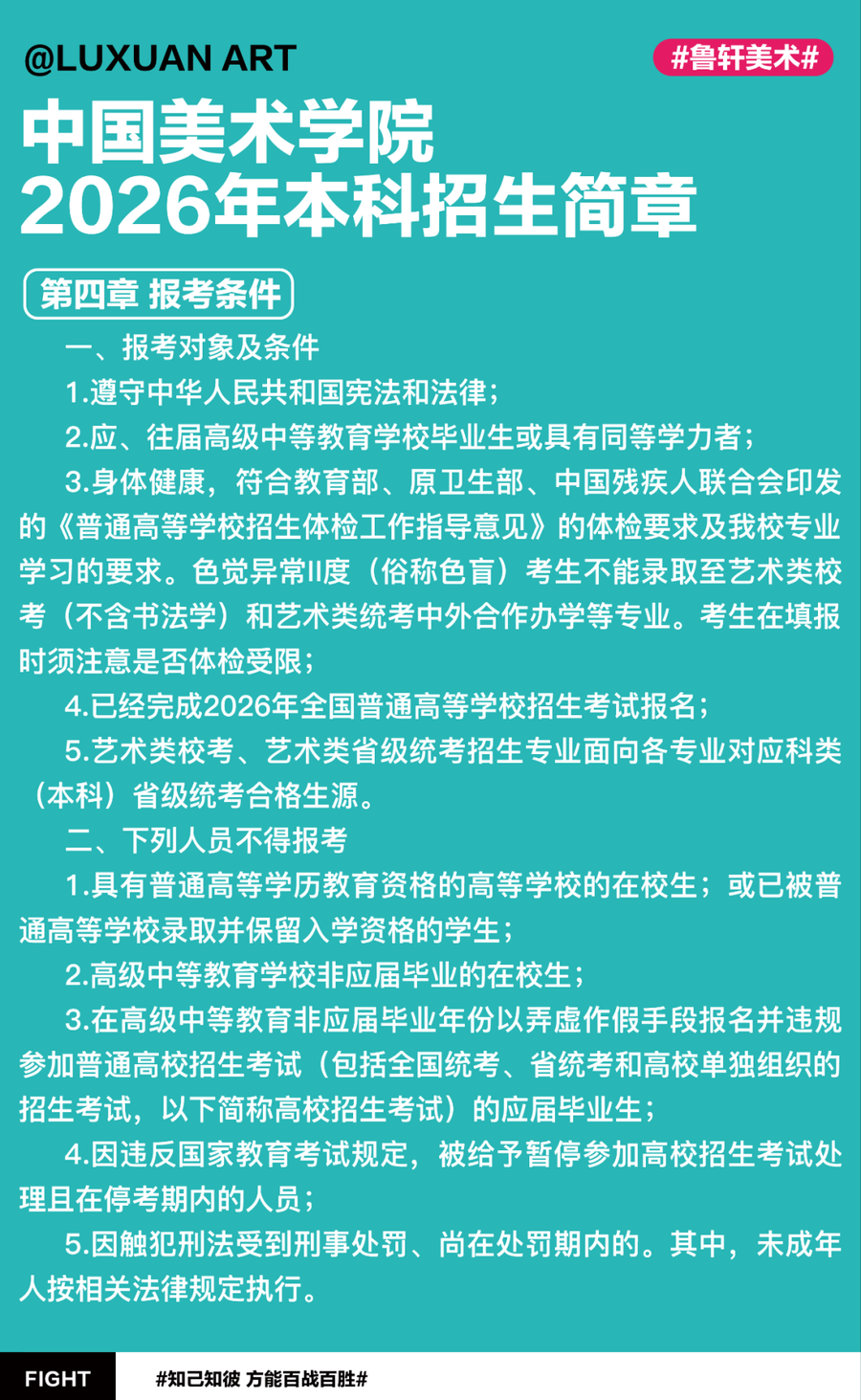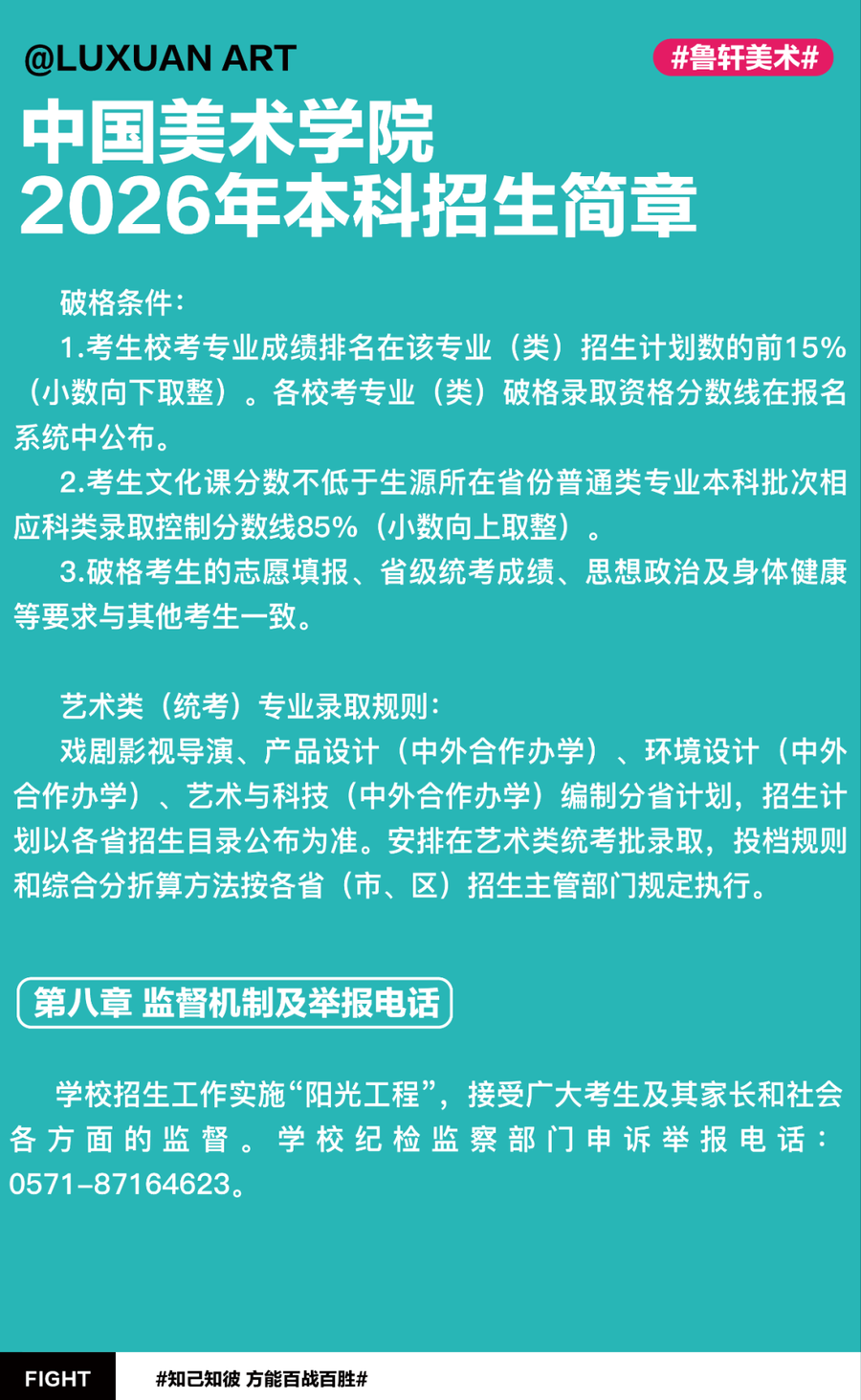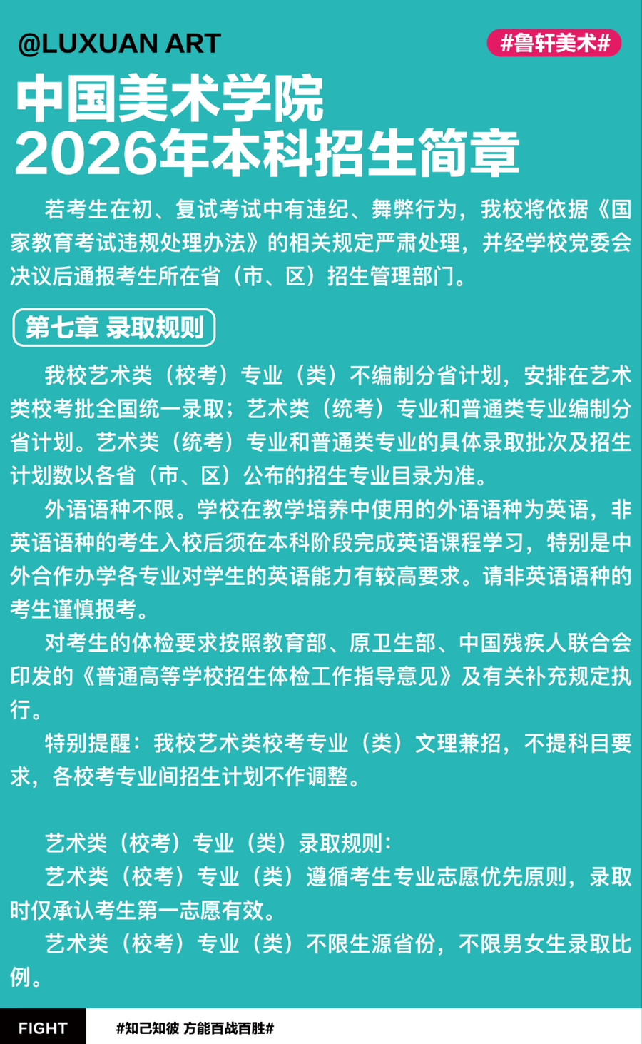 最新资讯 | 中国美术学院2026年本科招生简章已发布!1月12日-13日初试!