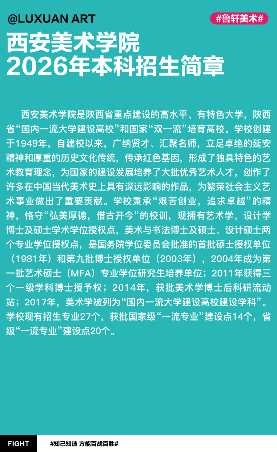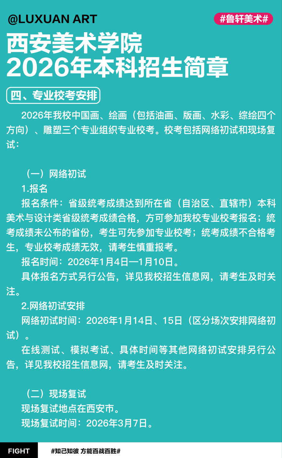 最新资讯 | 西安美术学院2026年本科招生简章已发布!1月14-15日初试!