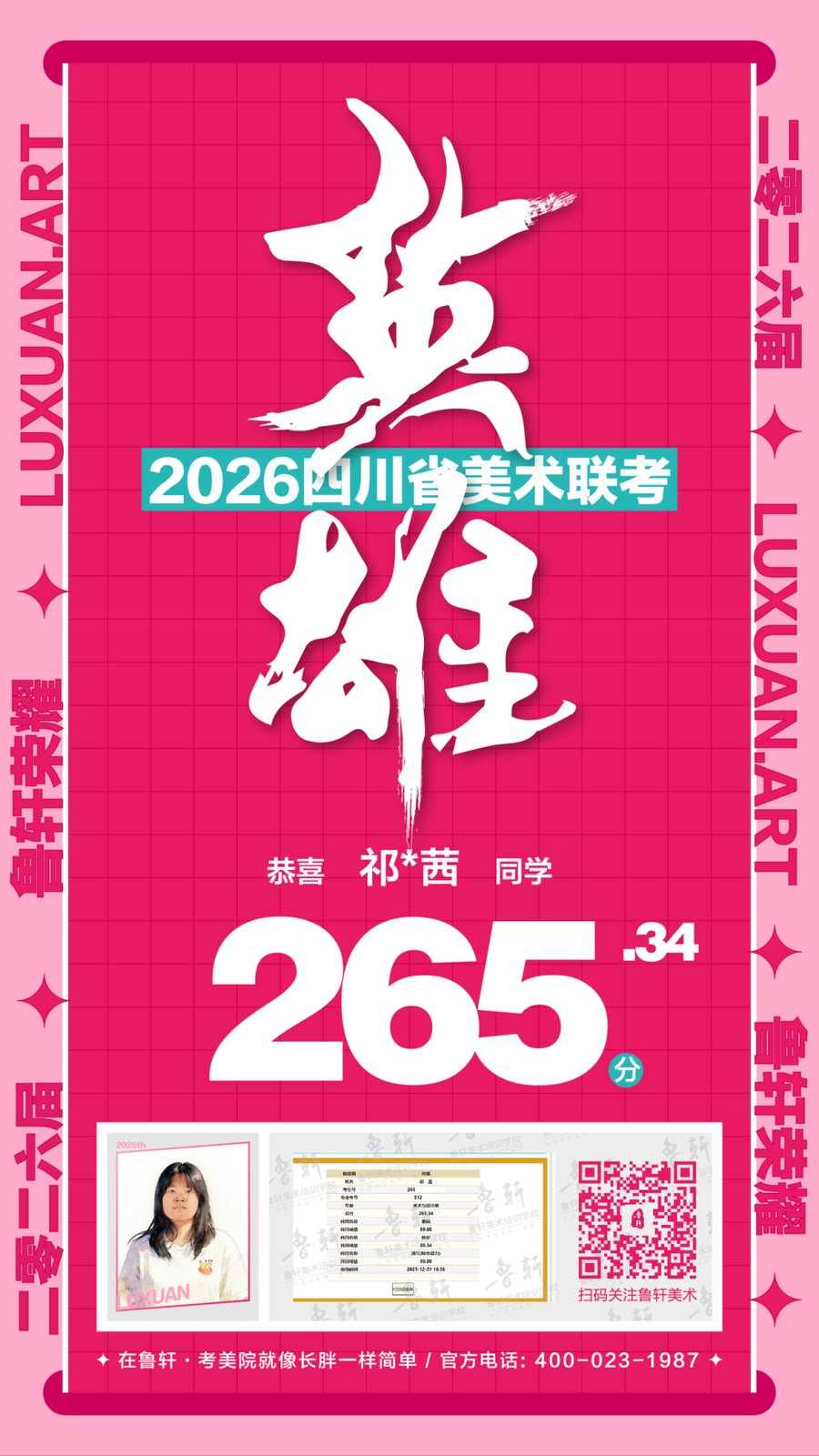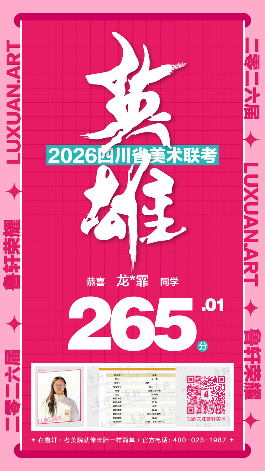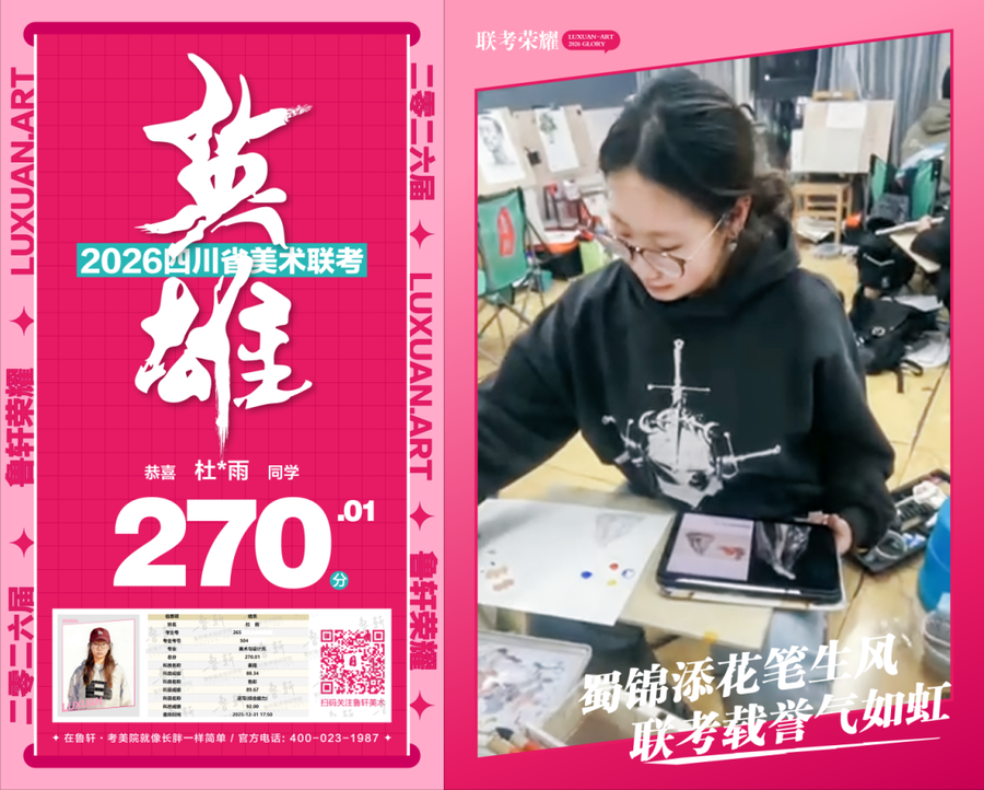 四川美术联考放榜,鲁轩川军强势霸榜