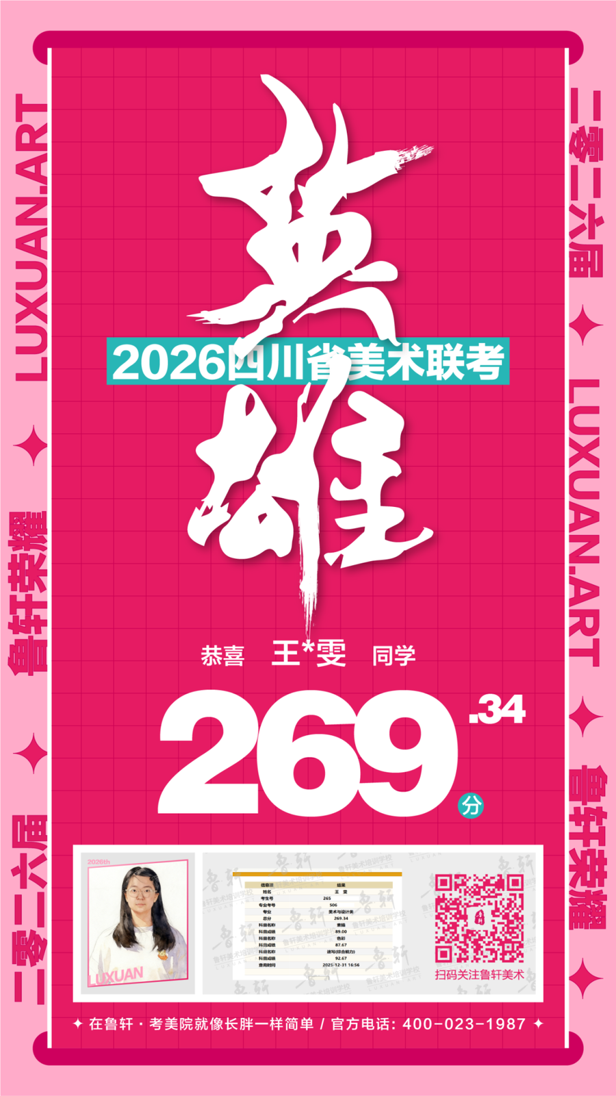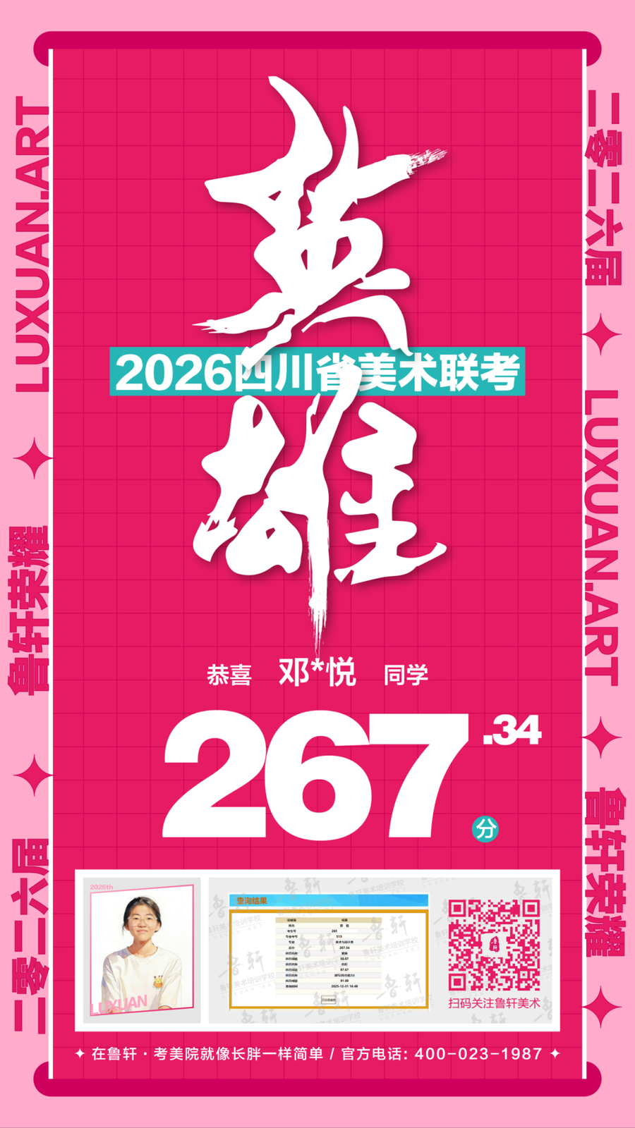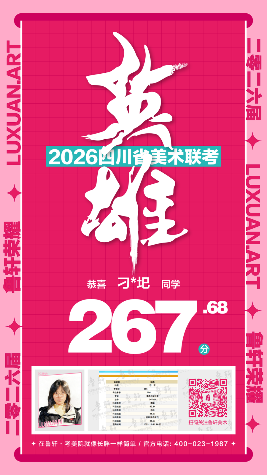 四川美术联考放榜,鲁轩川军强势霸榜