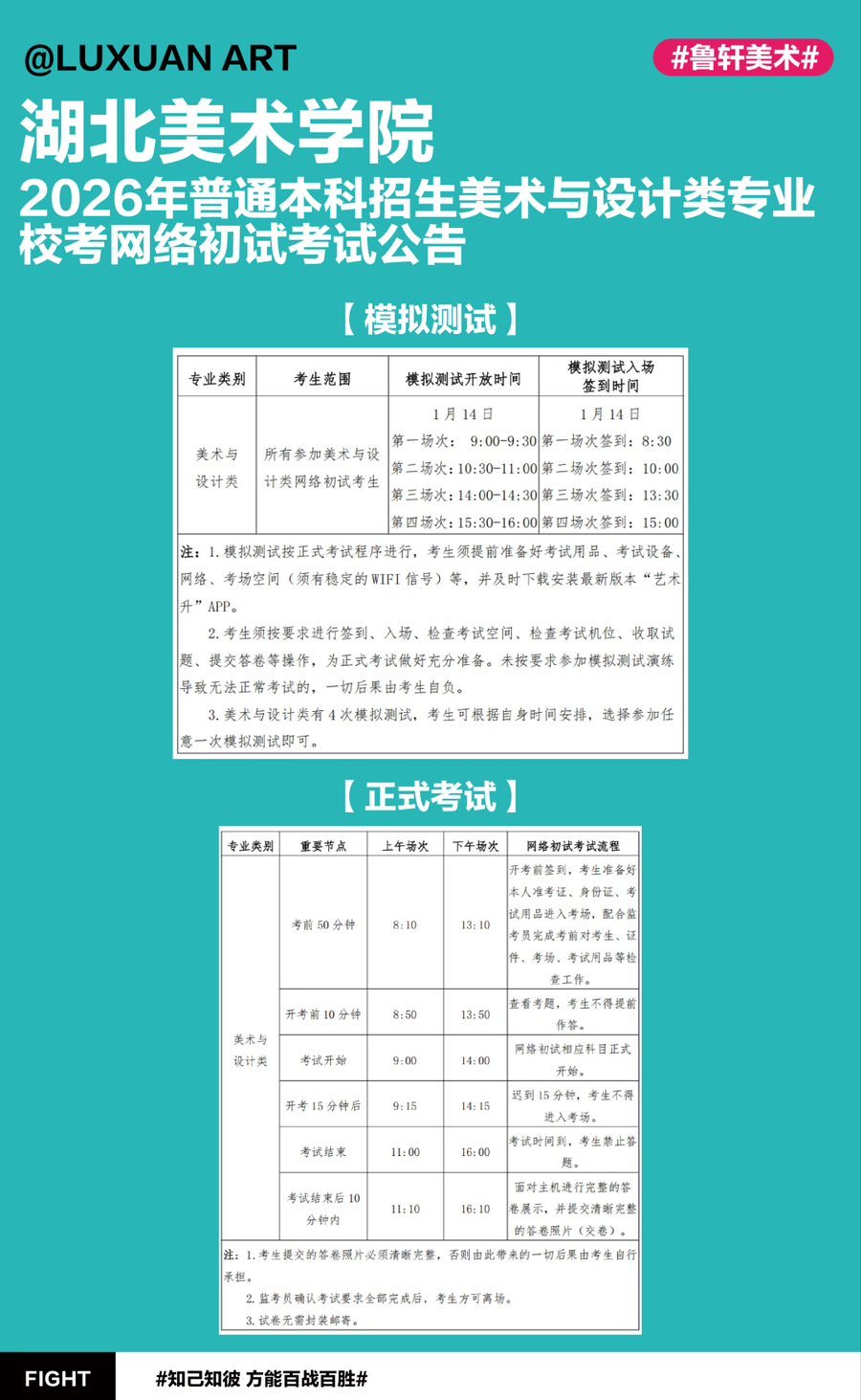 最新资讯 | 湖北美术学院2026年普通本科招生美术与设计类专业校考网络初试考试公告