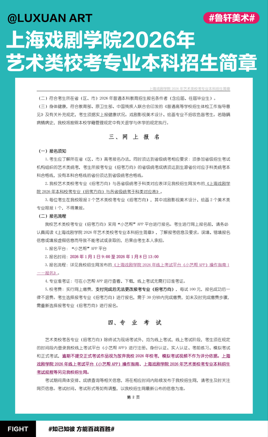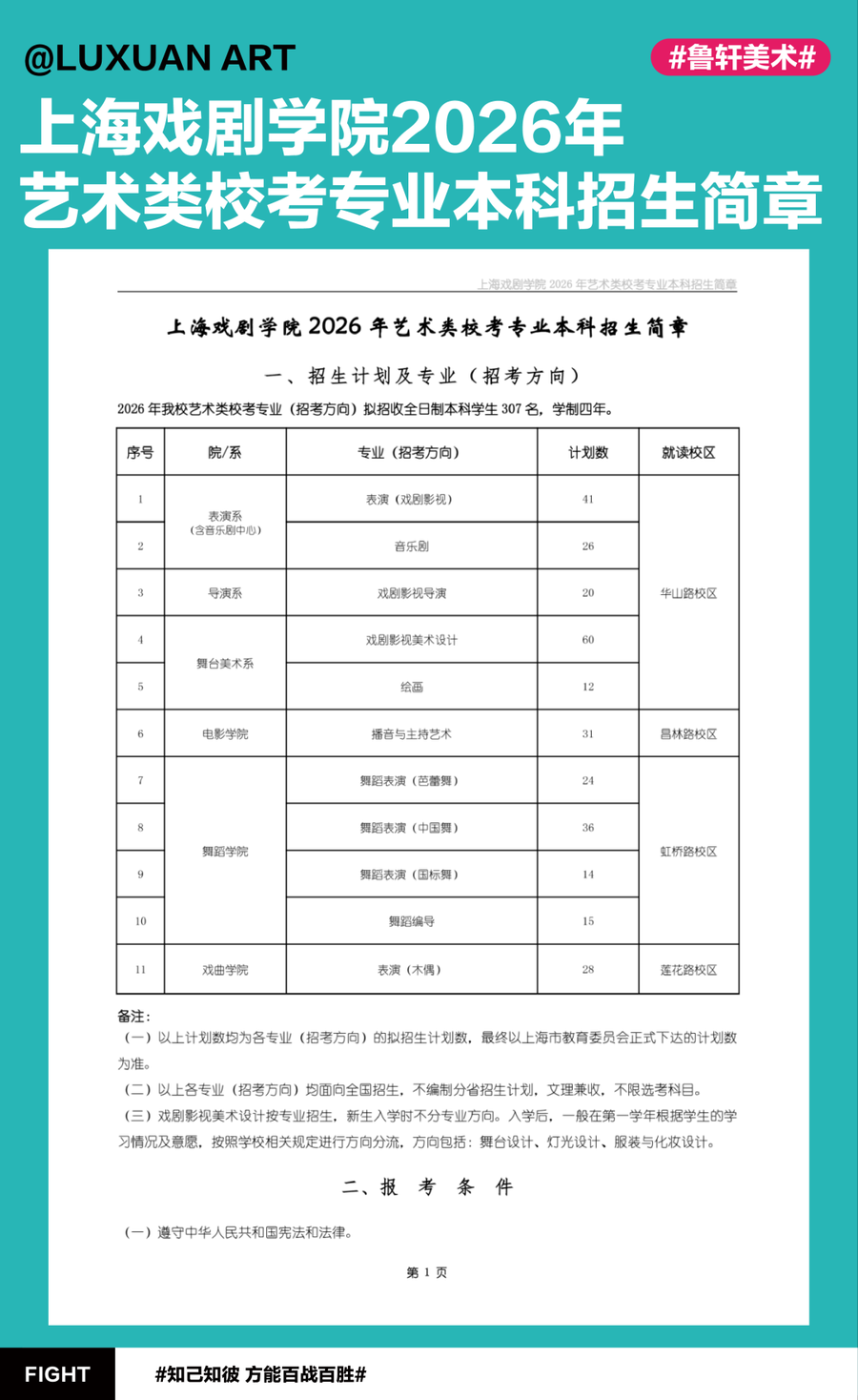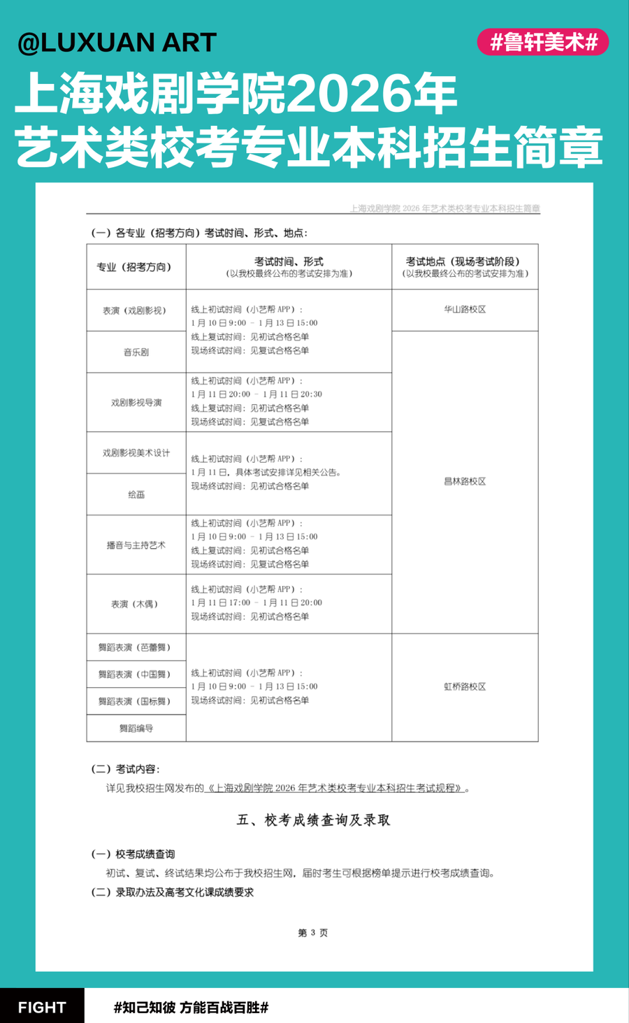 最新资讯 | 上海戏剧学院2026年艺术类校考专业本科招生简章,1月11日初试!