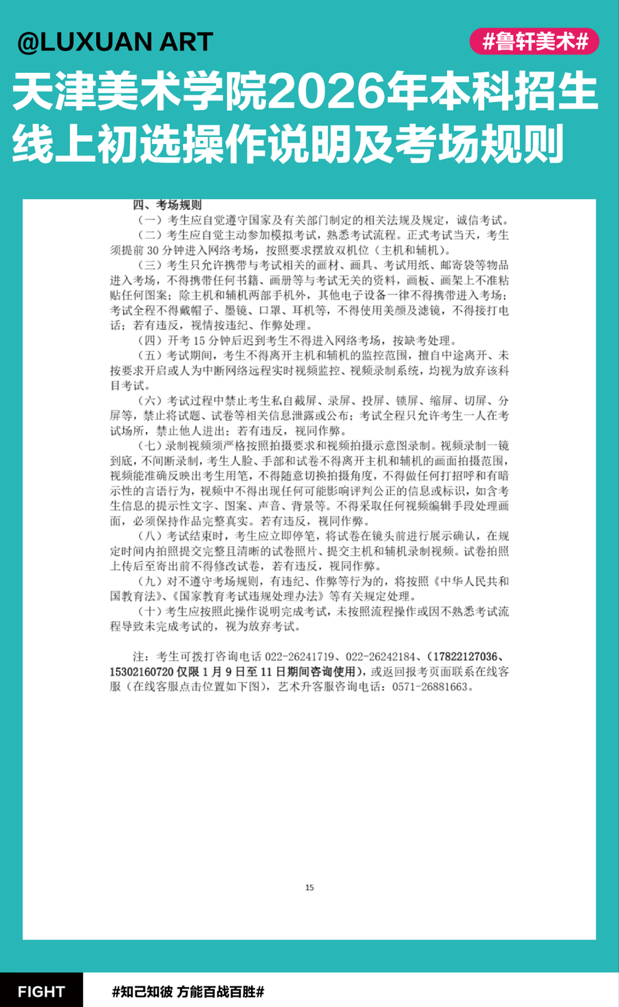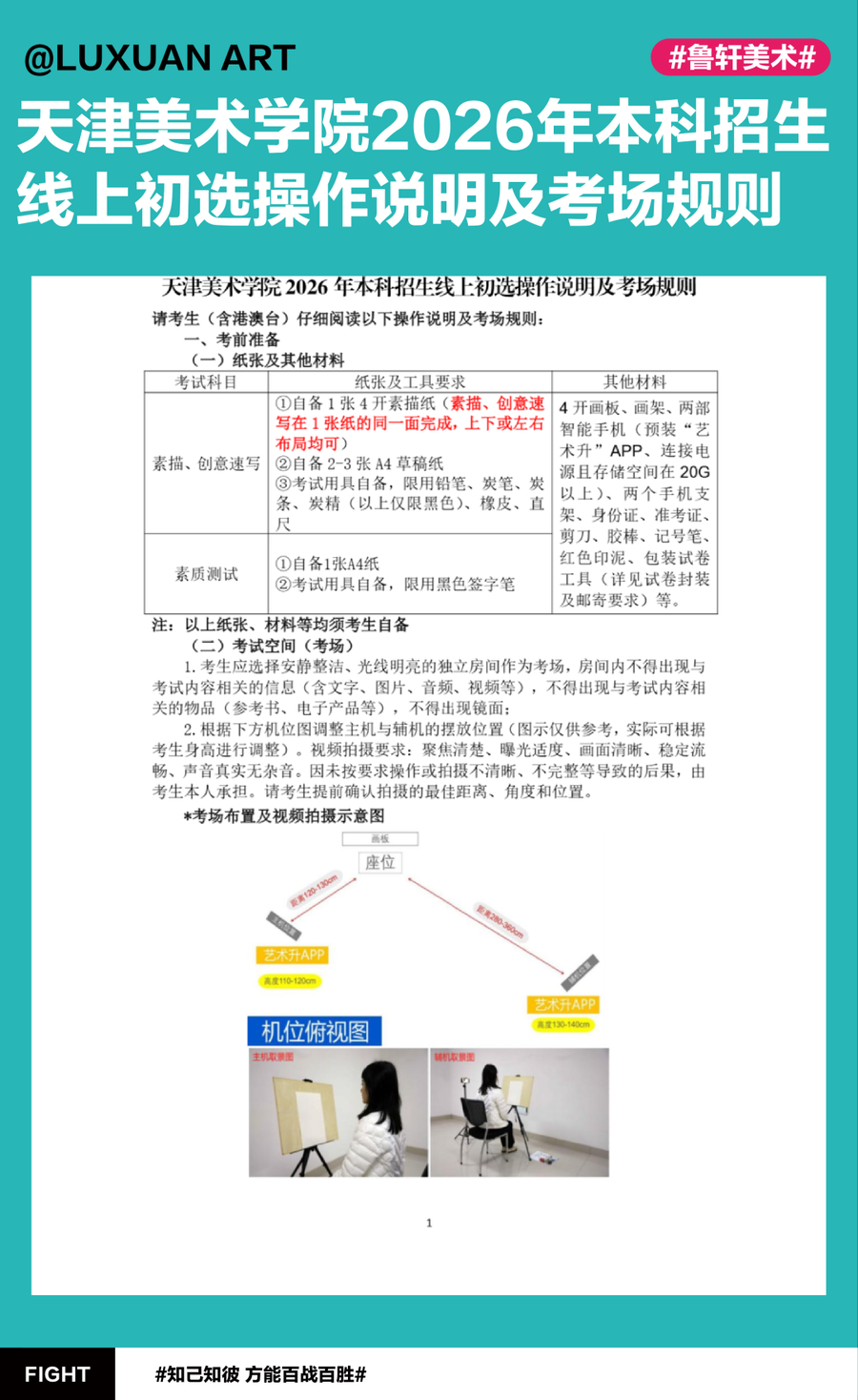 最新资讯 | 天津美术学院2026年本科招生线上初选操作说明及考场规则