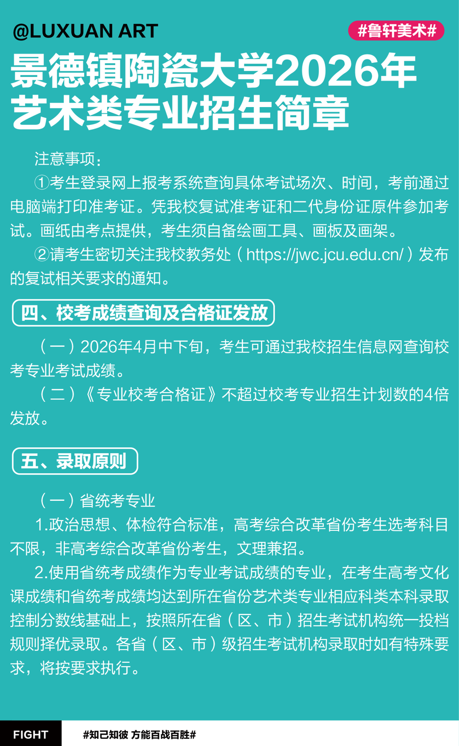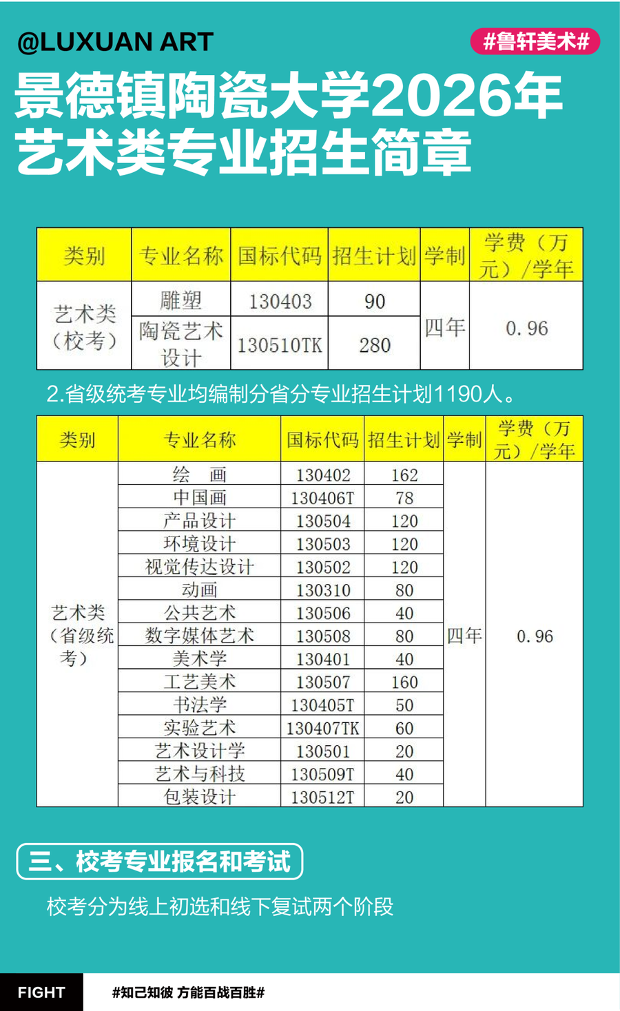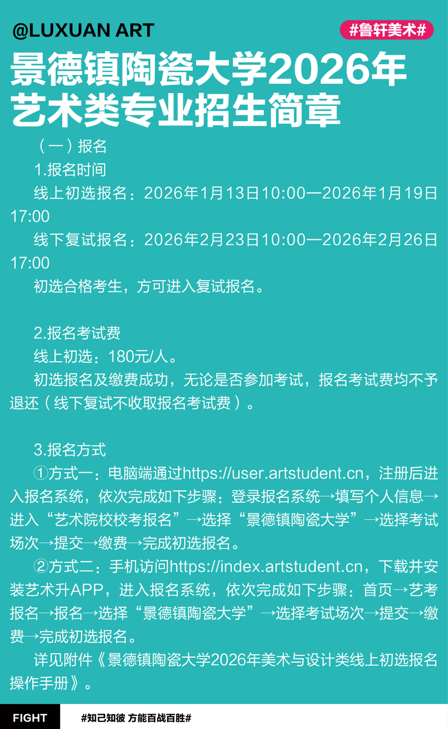最新资讯 | 景德镇陶瓷大学2026年艺术类专业招生简章,1月13号报名!