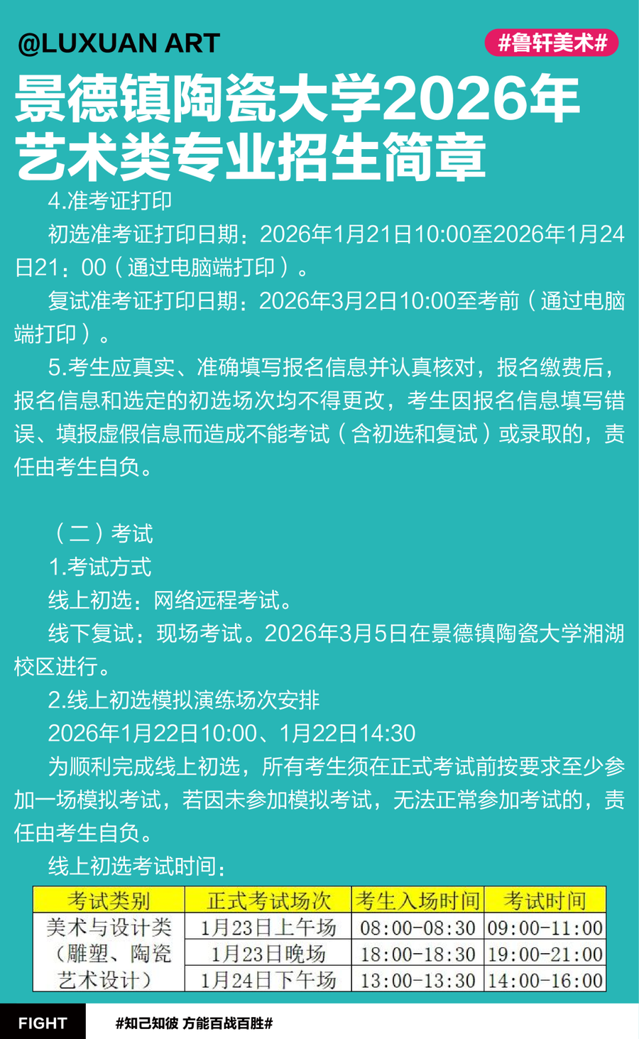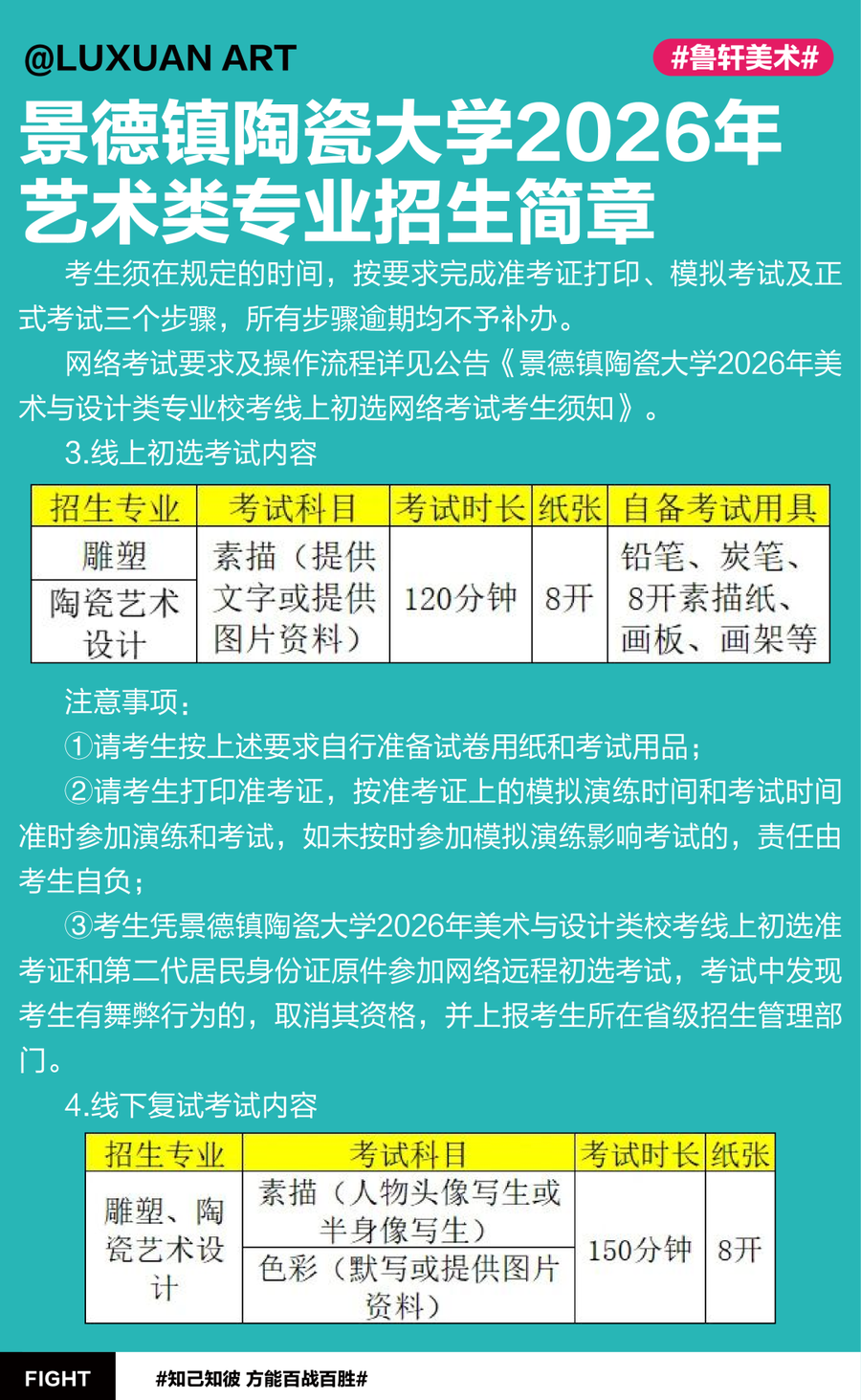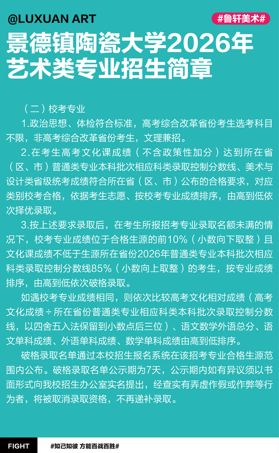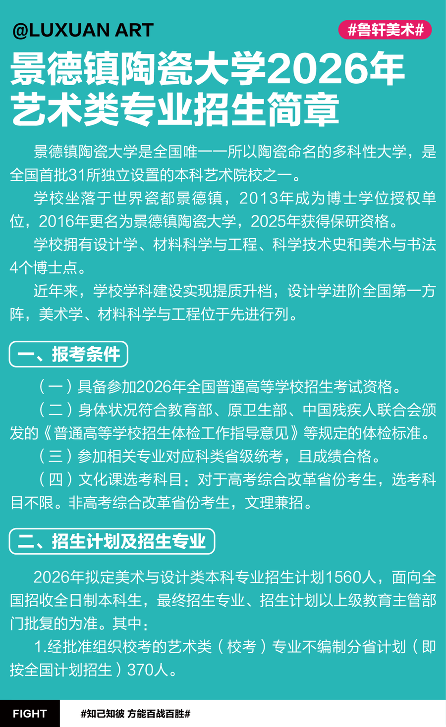 最新资讯 | 景德镇陶瓷大学2026年艺术类专业招生简章,1月13号报名!