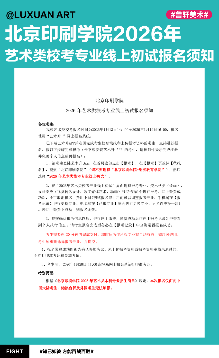 最新资讯 | 北京印刷学院2026年艺术类校考专业线上初试报名须知