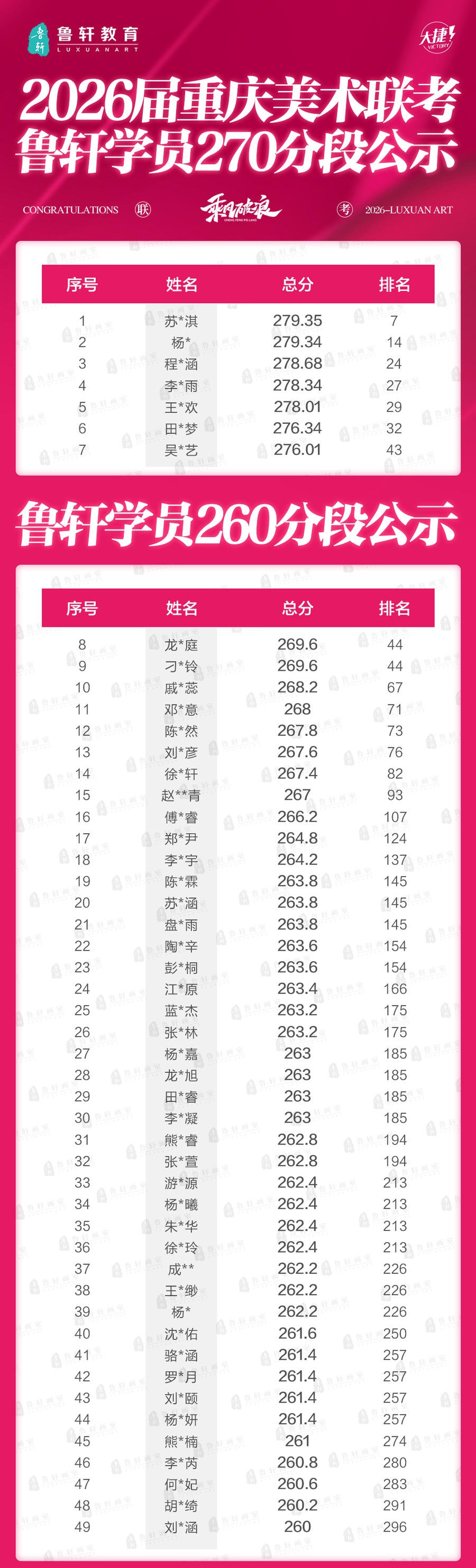 26届重庆美术联考成绩放榜!