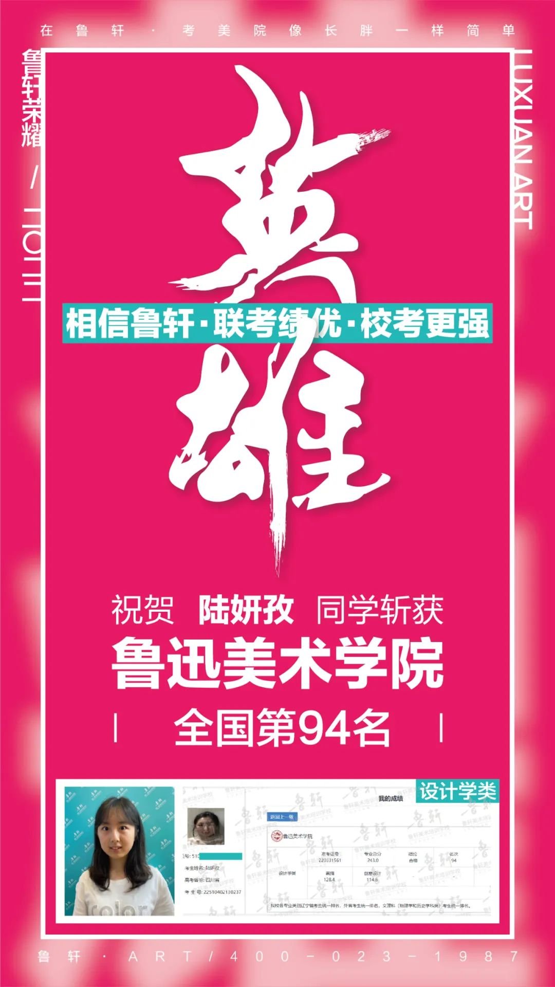 鲁美荣耀 || 专业过线43位!全国前100霸榜10位!相信鲁轩 联考绩优 校考更强!!