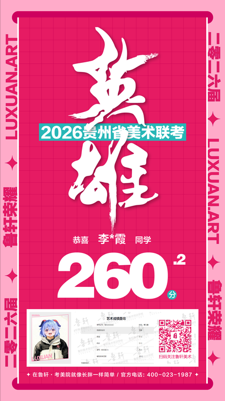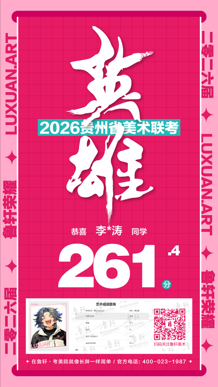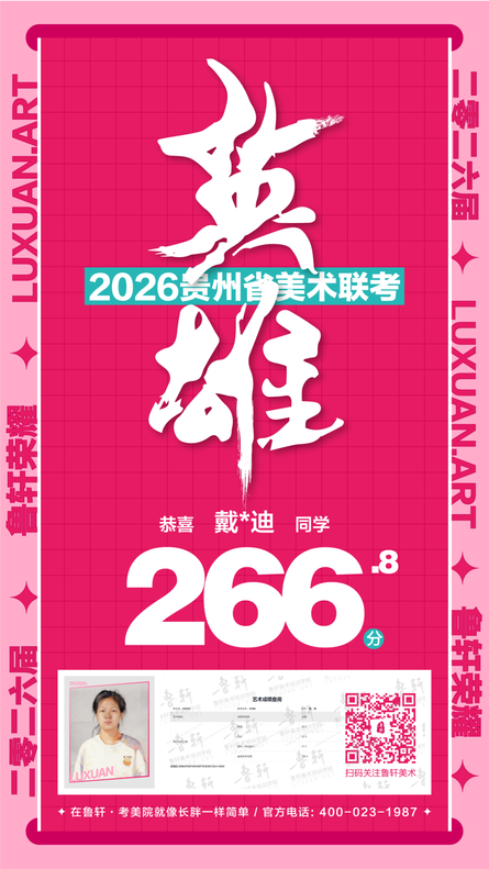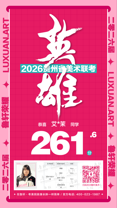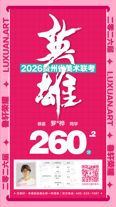 连续六年,鲁轩用彪悍的战绩捍卫了贵州美术培训的王者荣耀!