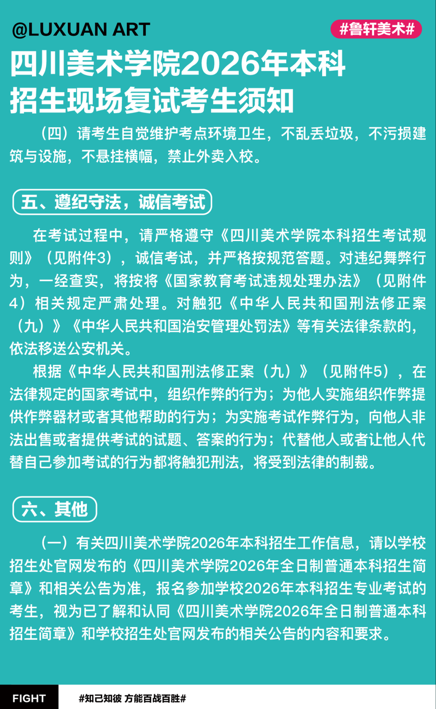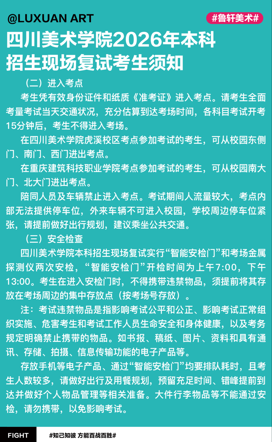 最新资讯 | 四川美术学院2026年本科招生现场复试考生须知