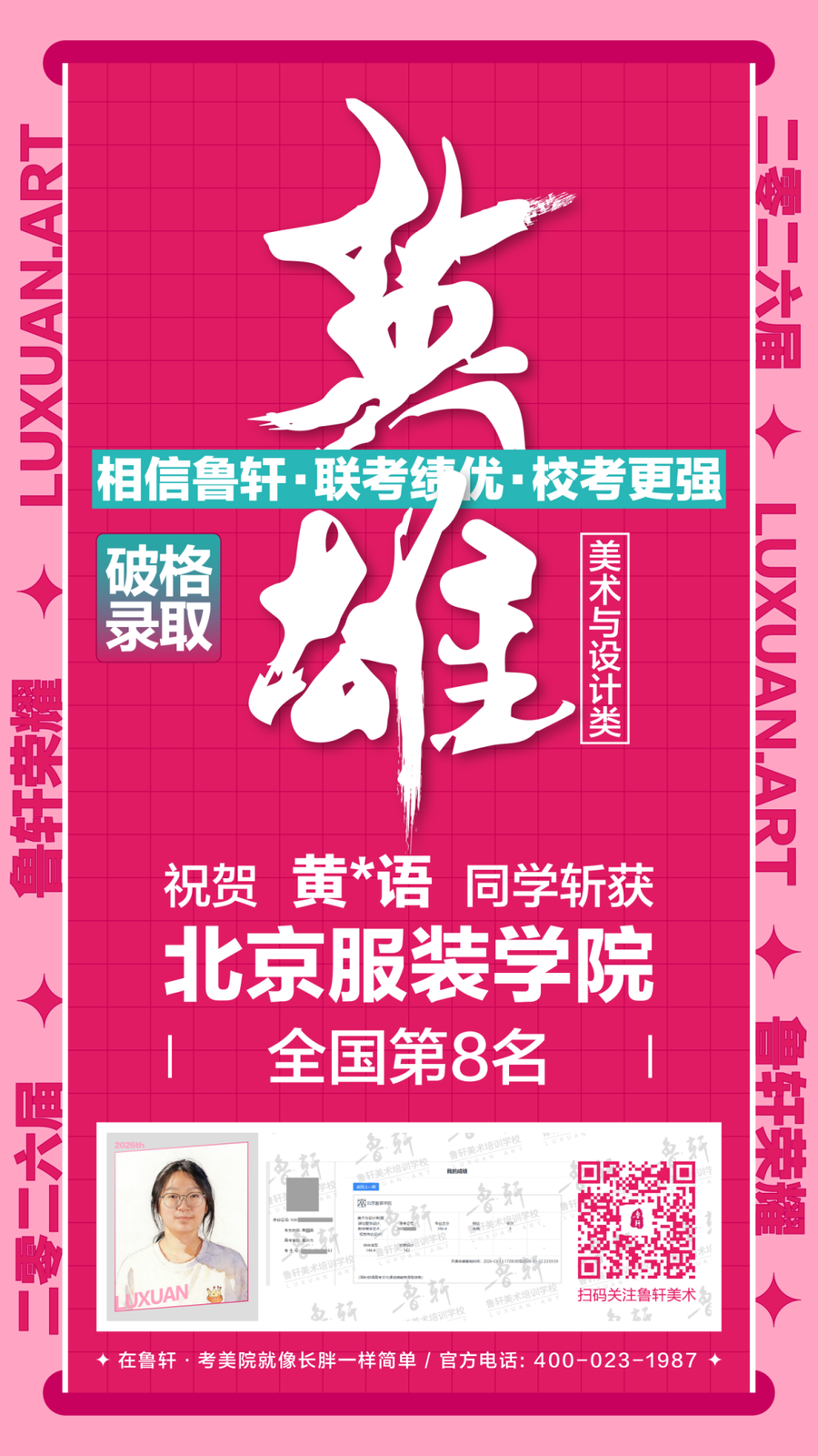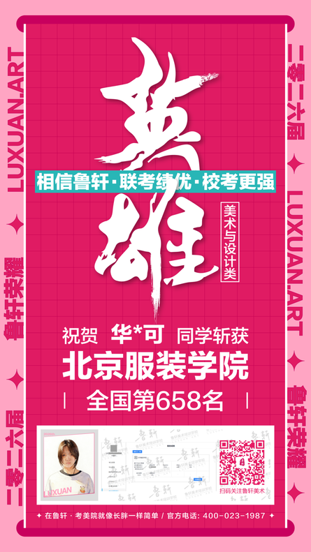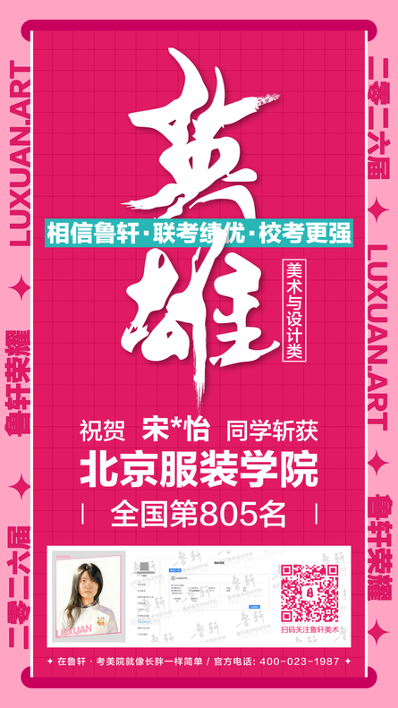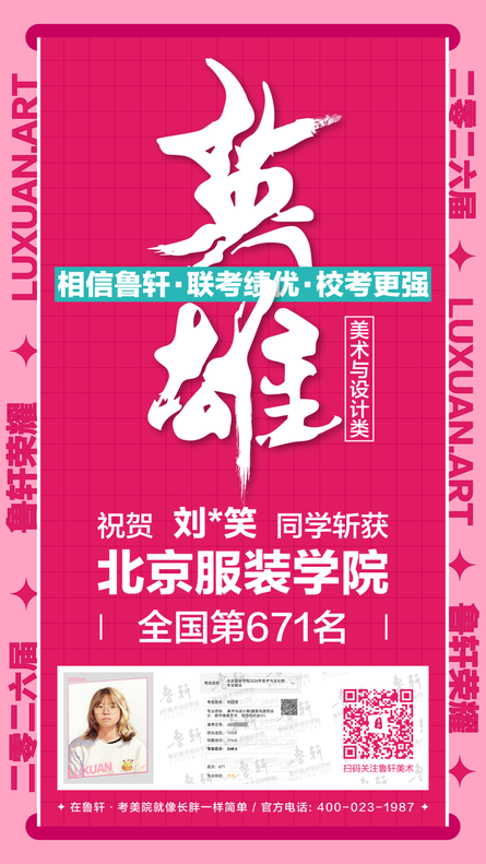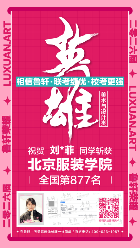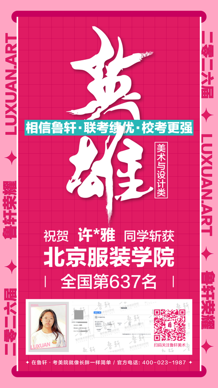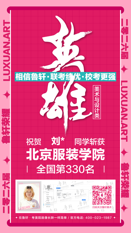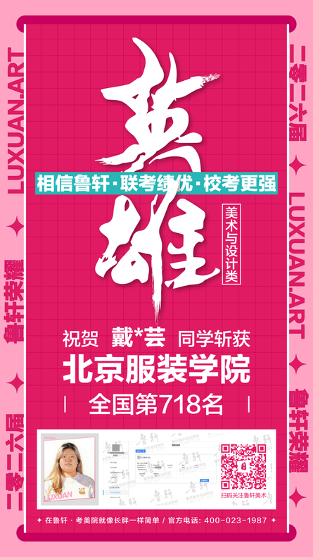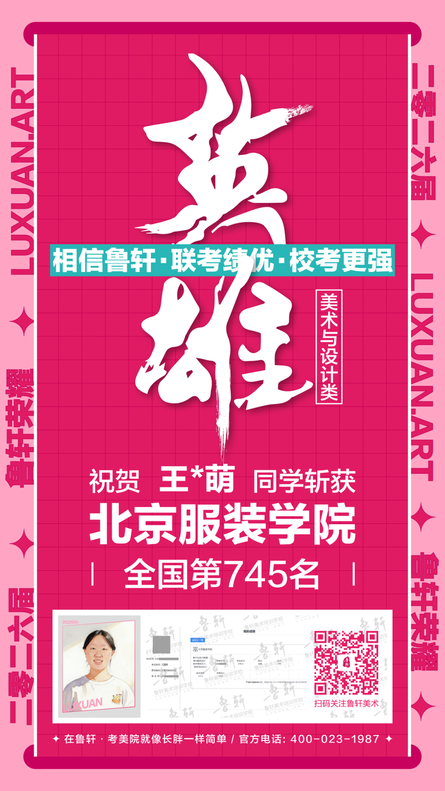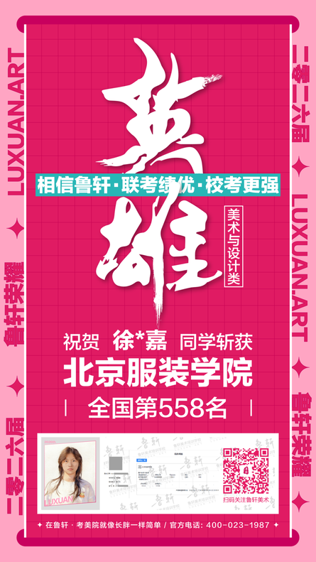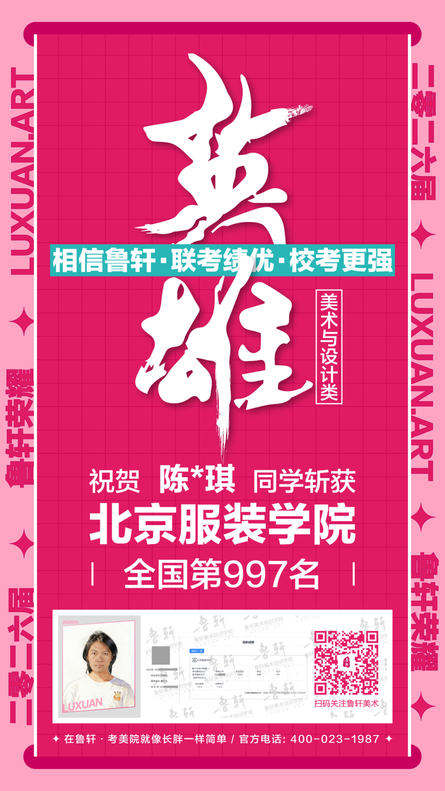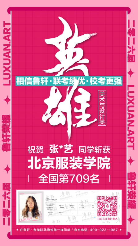 截至目前,鲁轩今年共斩获59张北服合格证!其中,黄心语同学斩获北京服装学院美术与设计类全国第8名!破格录取6位!在西南地区各大机构一骑绝尘!