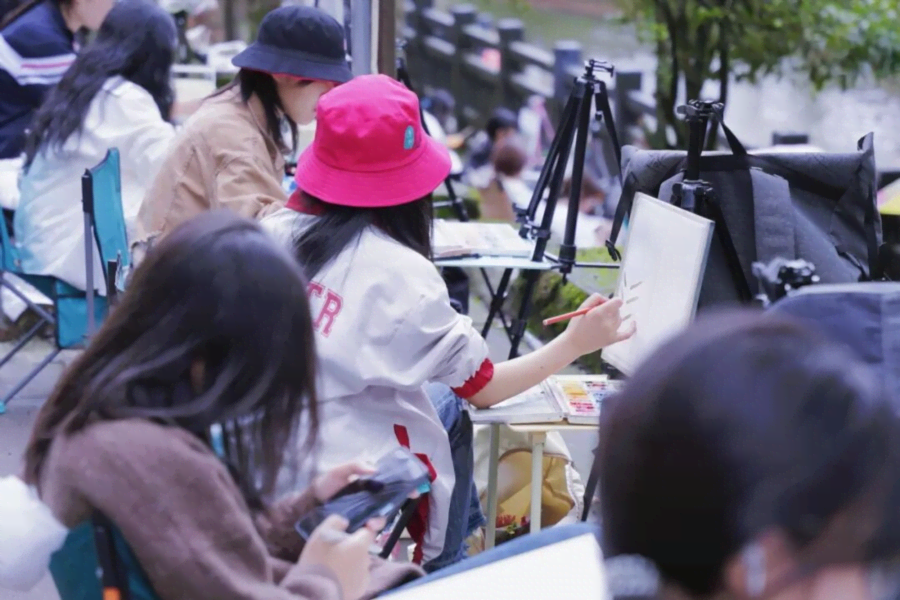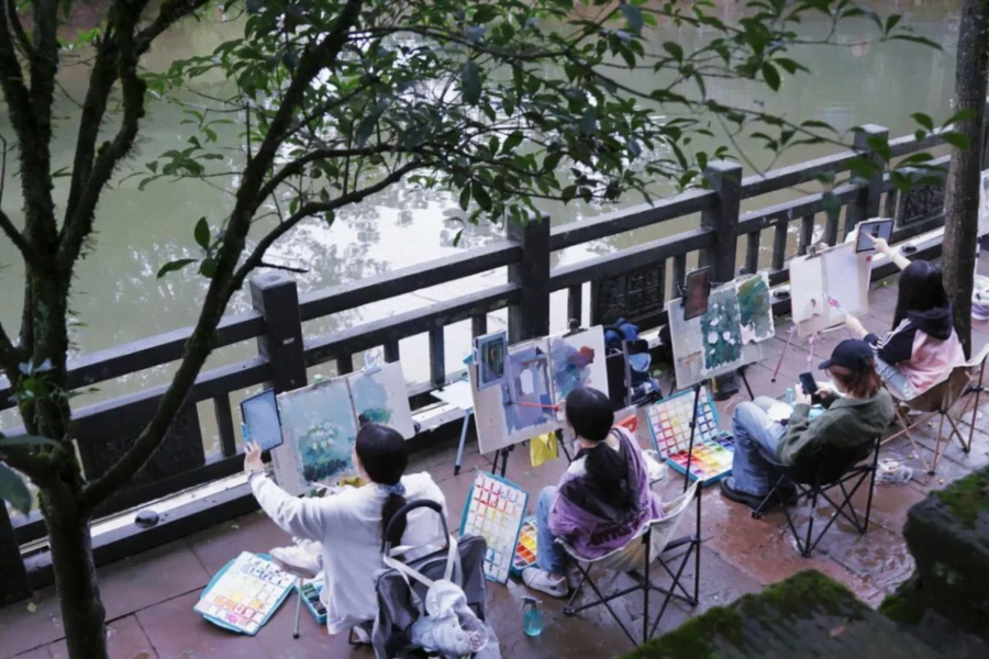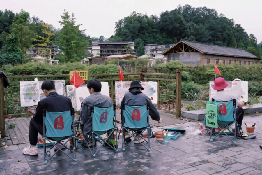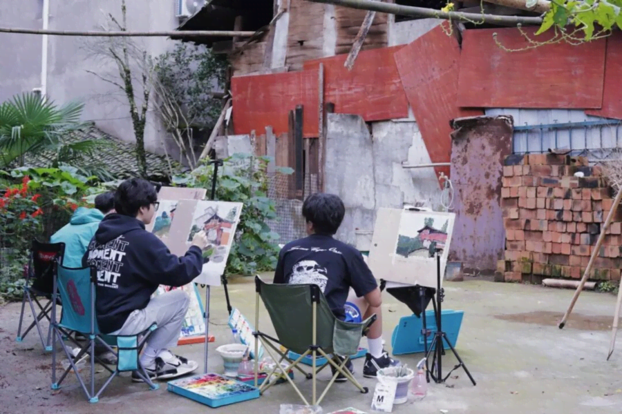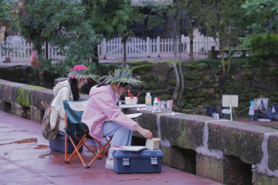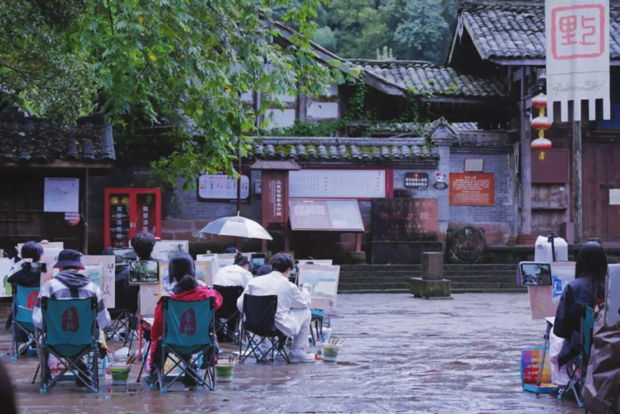 山川、河流、古树、屋檐……一步一景,皆是画框。古镇的每一处风景都是他们创作的源泉,激发着无限的想象与创造。