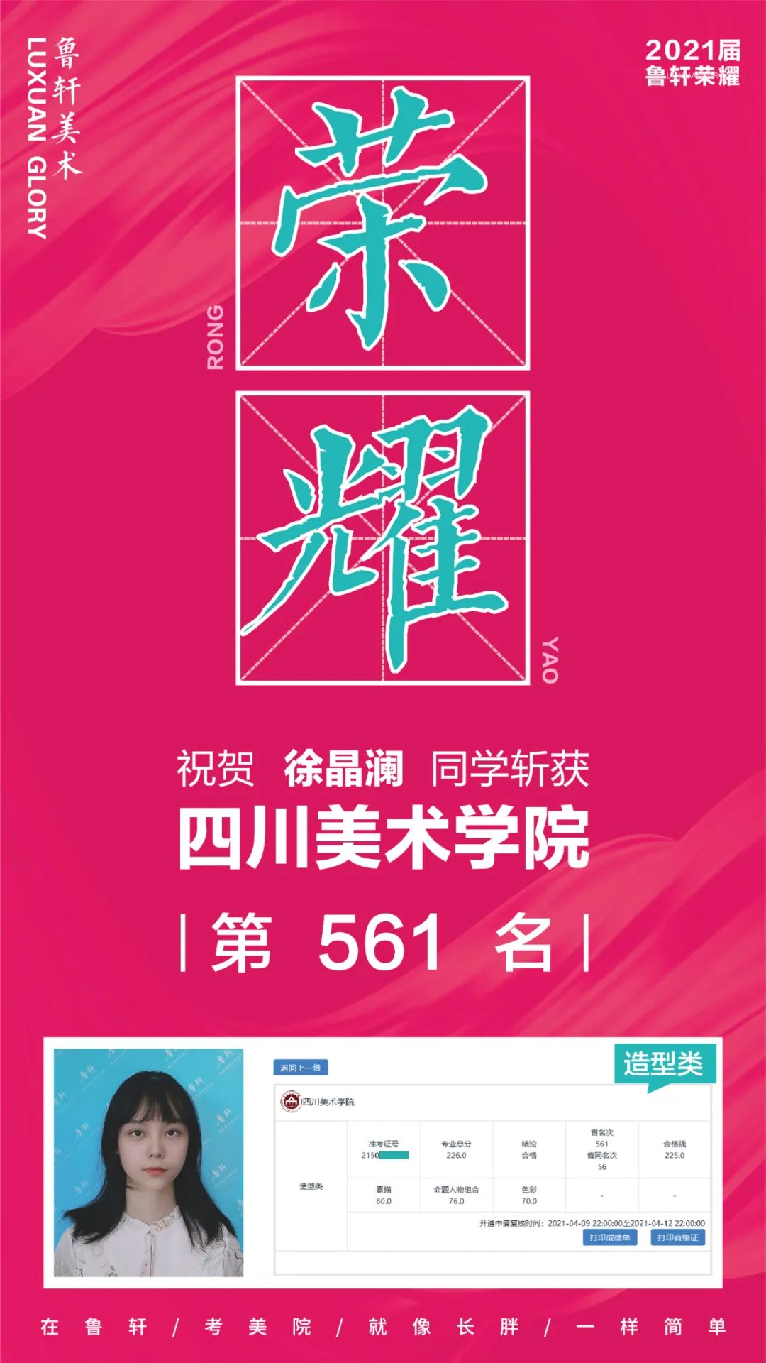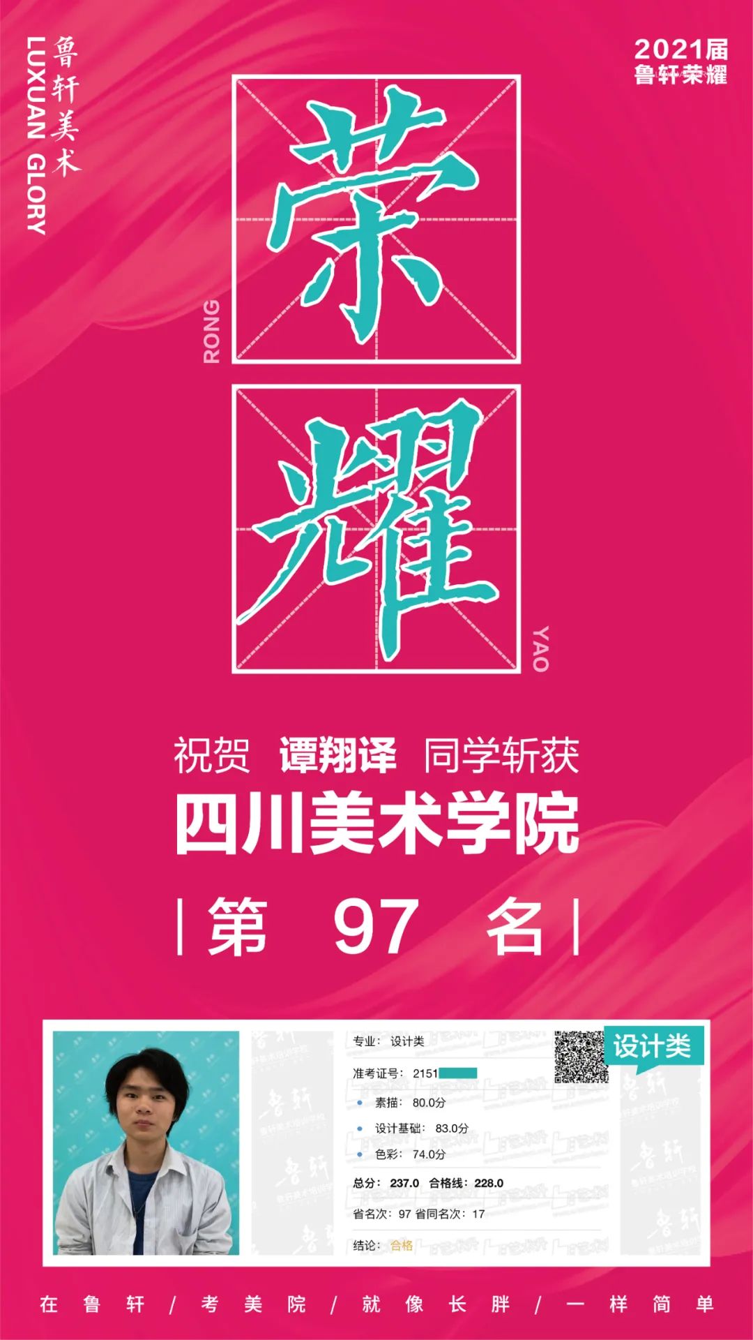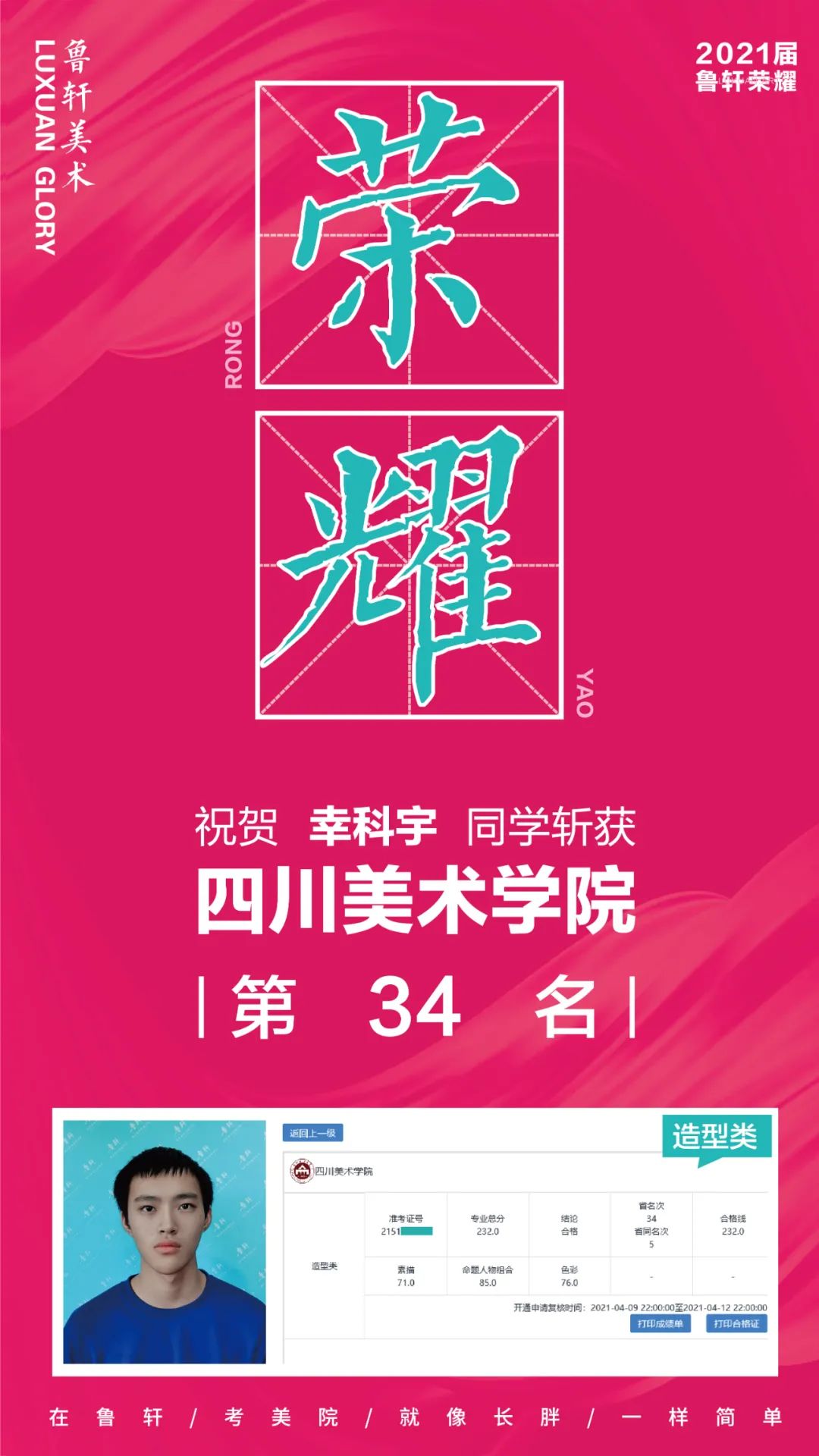 四川美院 || 还看鲁轩!实名公布,专业过线558位!