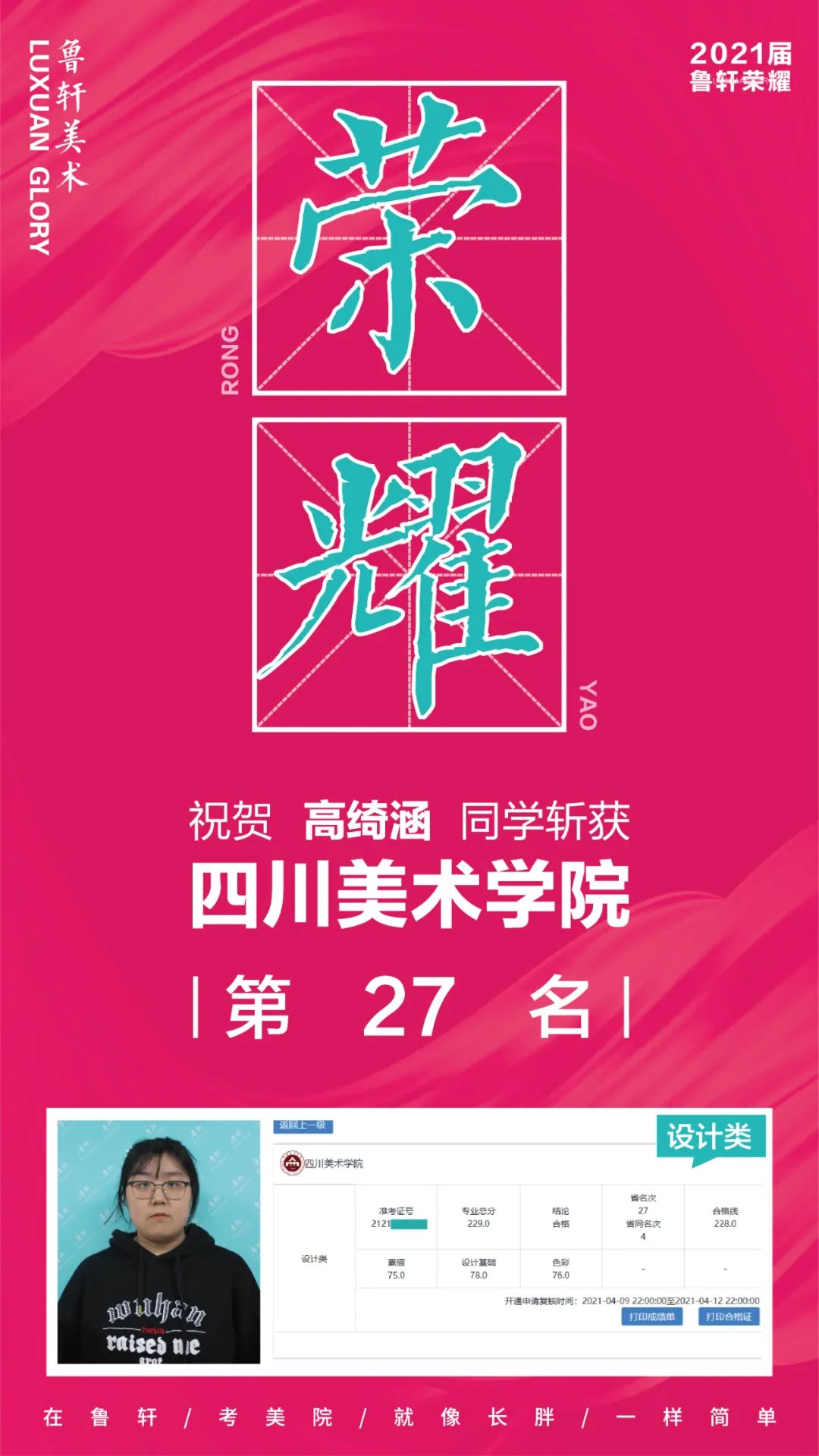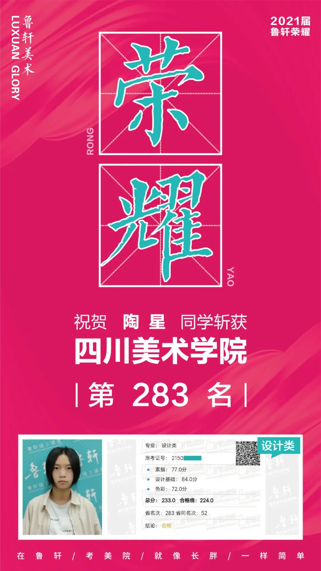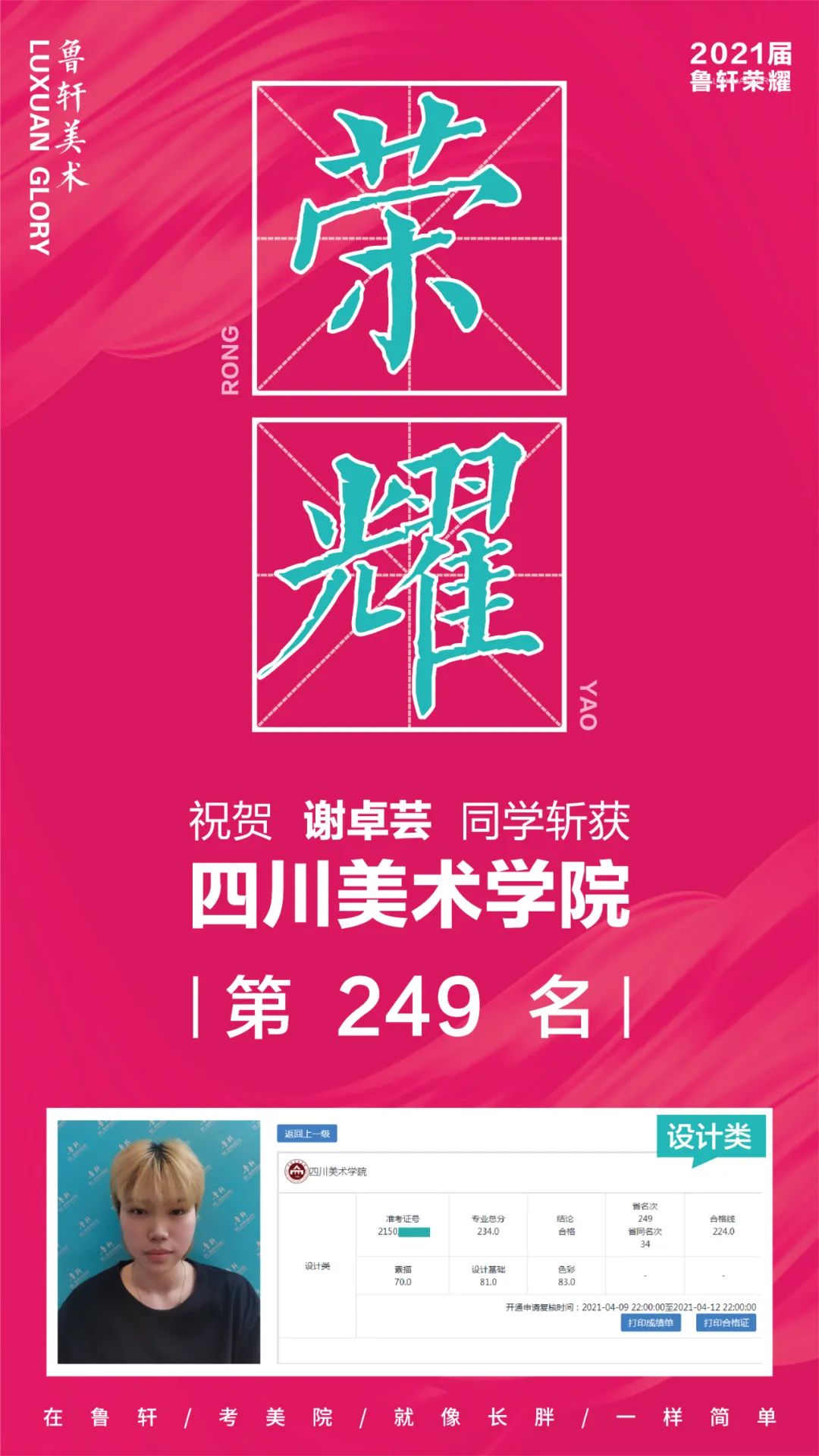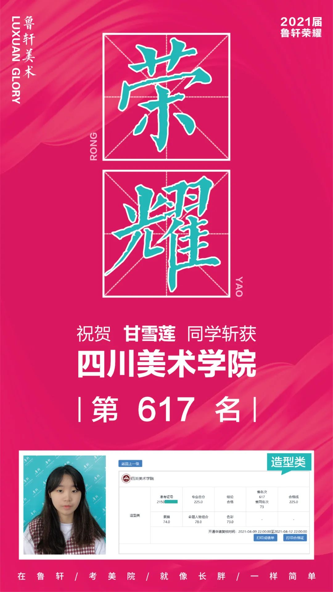 四川美院 || 还看鲁轩!实名公布,专业过线558位!