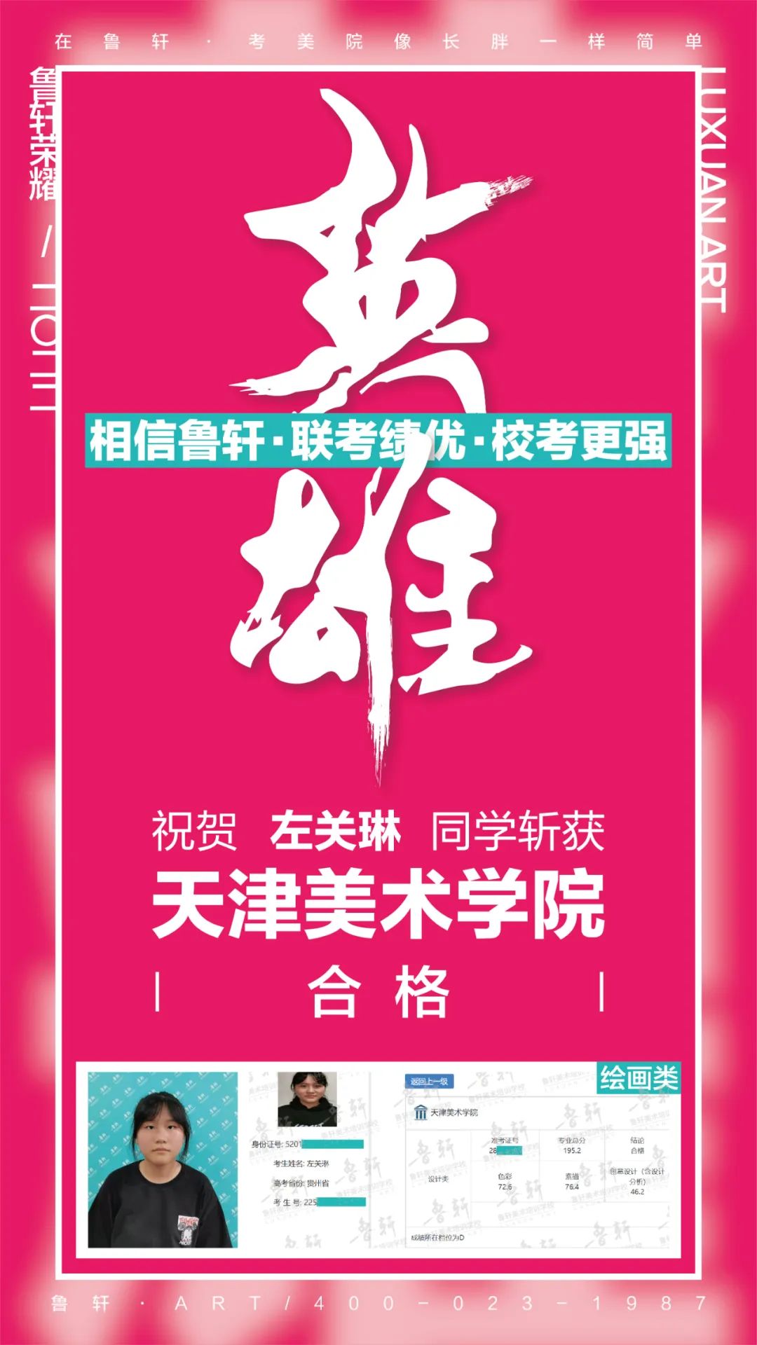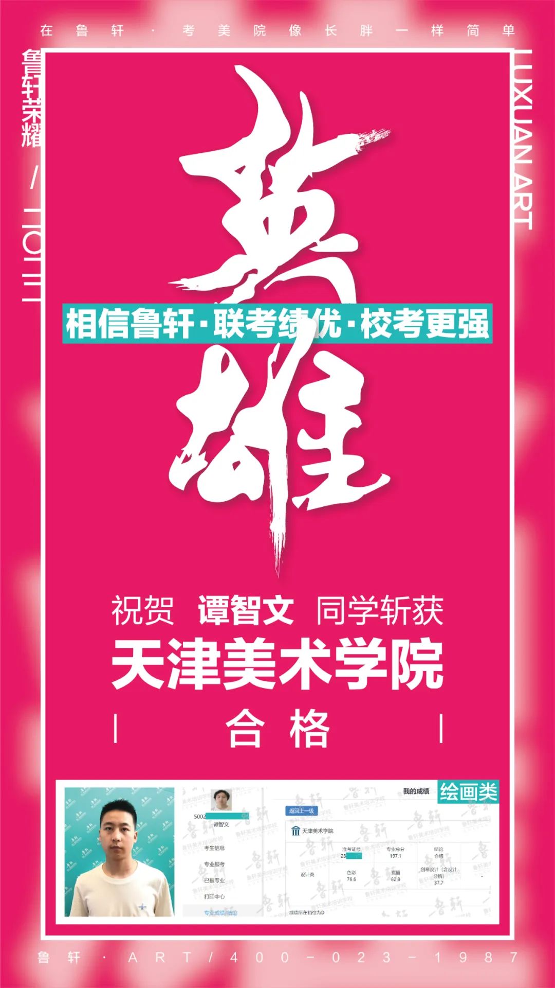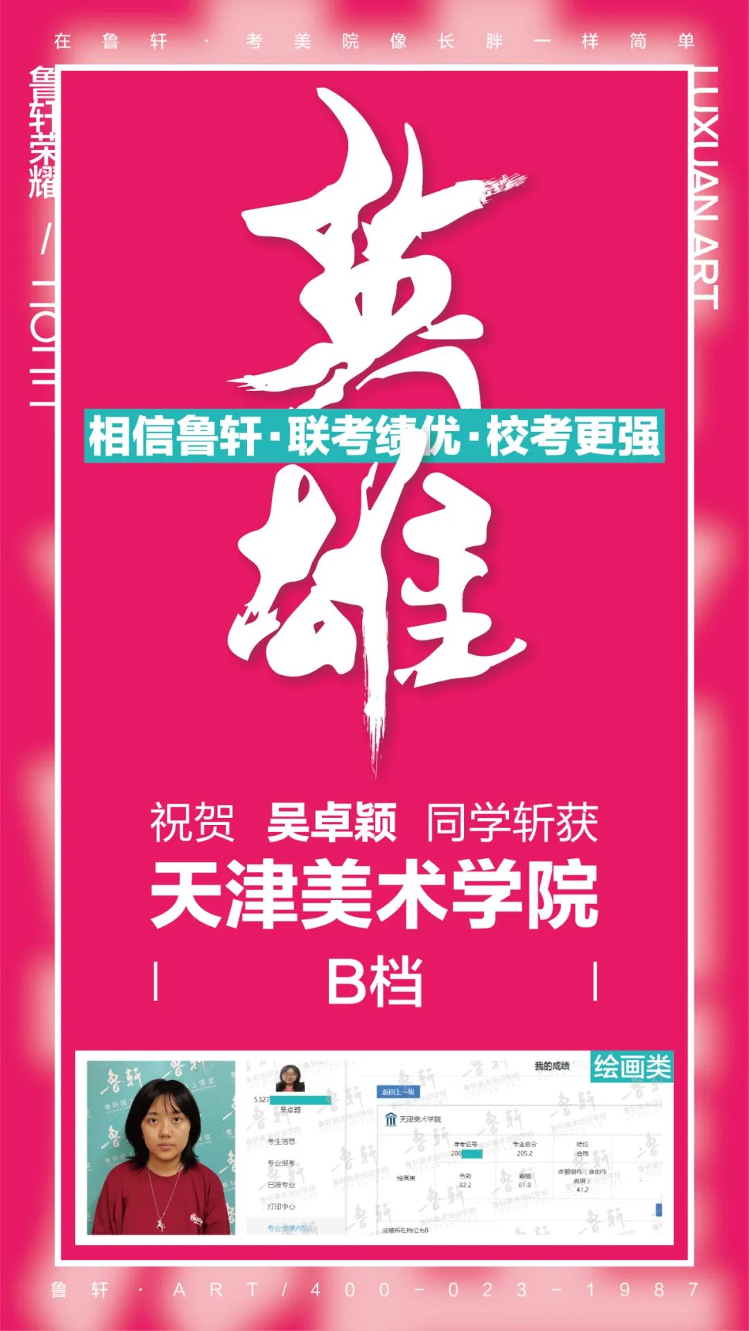 中国美院作为最顶级的美院之一,这次考试中鲁轩学子专业录取四十一位,其中A档占八位!