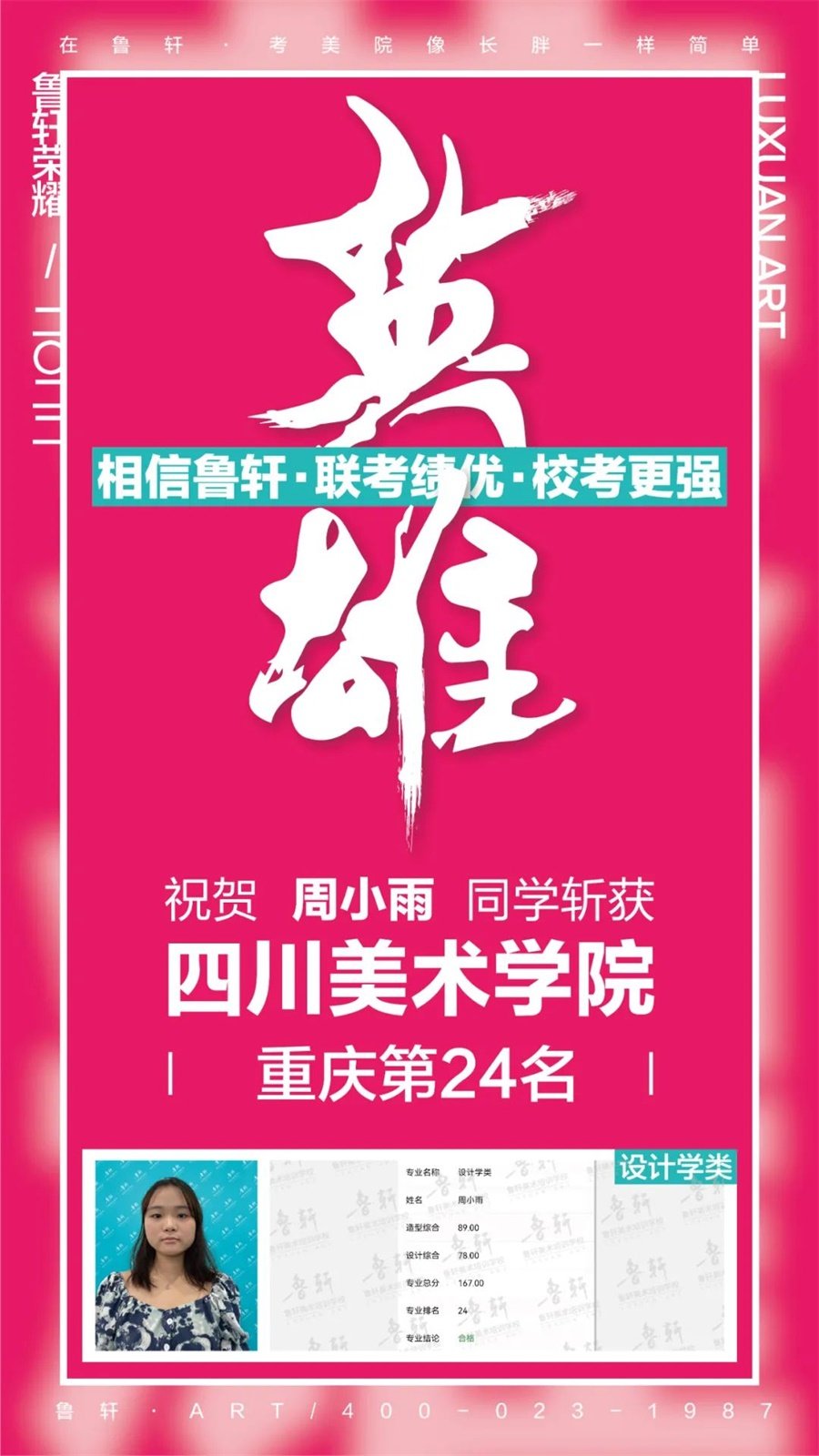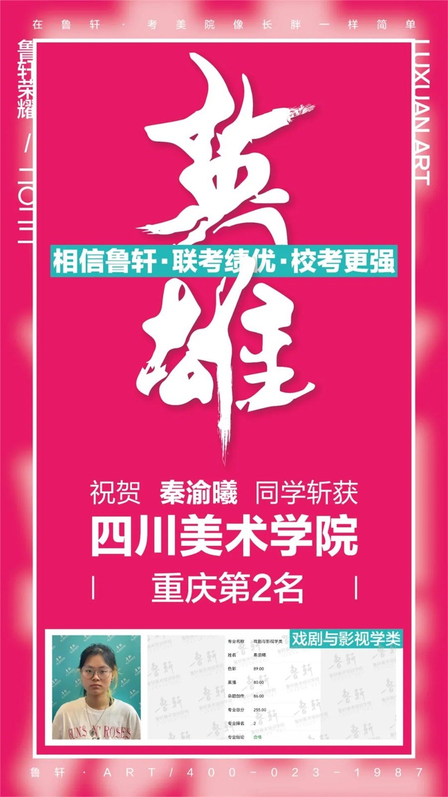 鲁轩2022届四川美术学院前100名合格证公示如下: