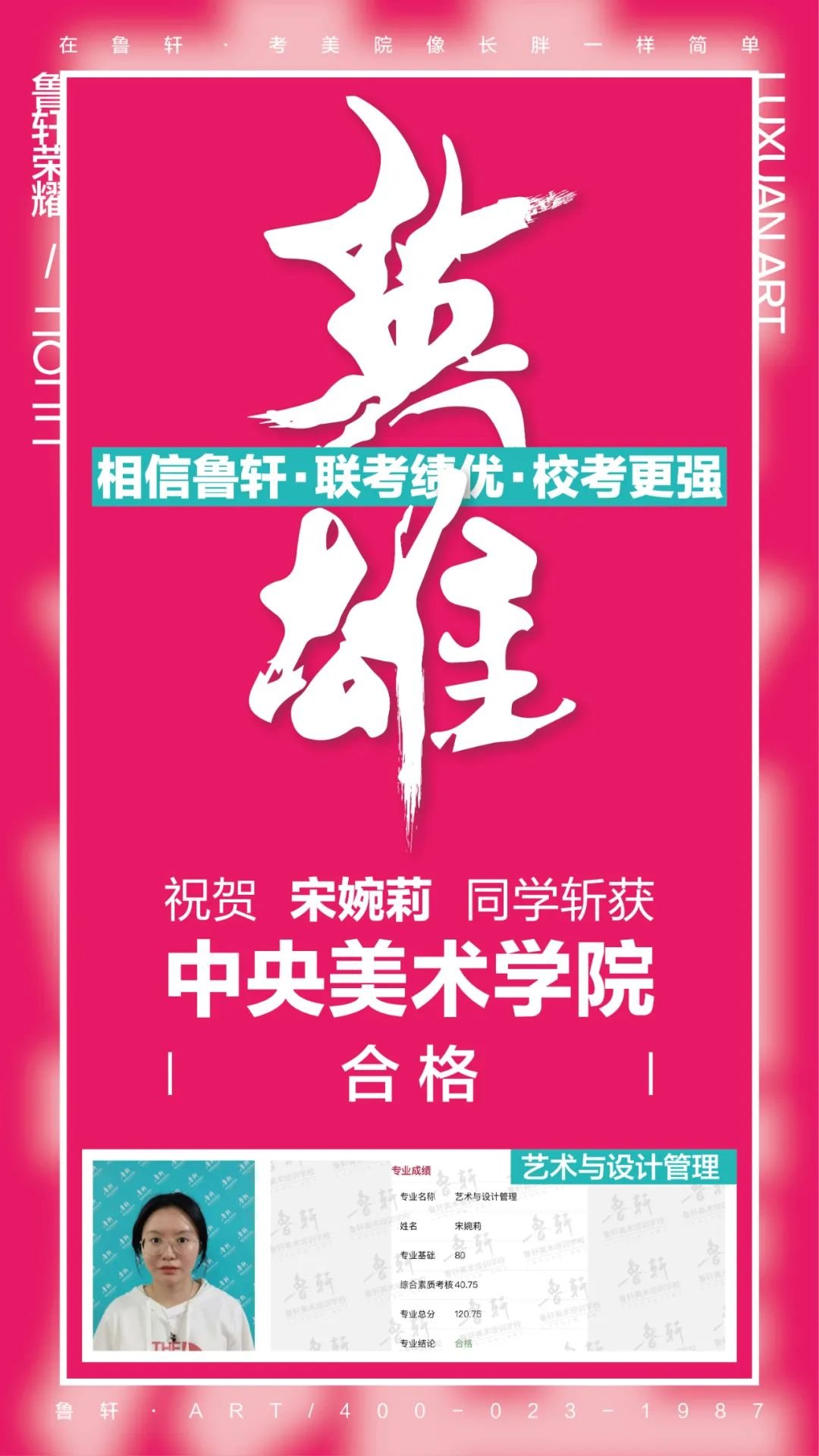 央美荣耀 || 专业录取26位!前10占2位!相信鲁轩 联考绩优 校考更强!!