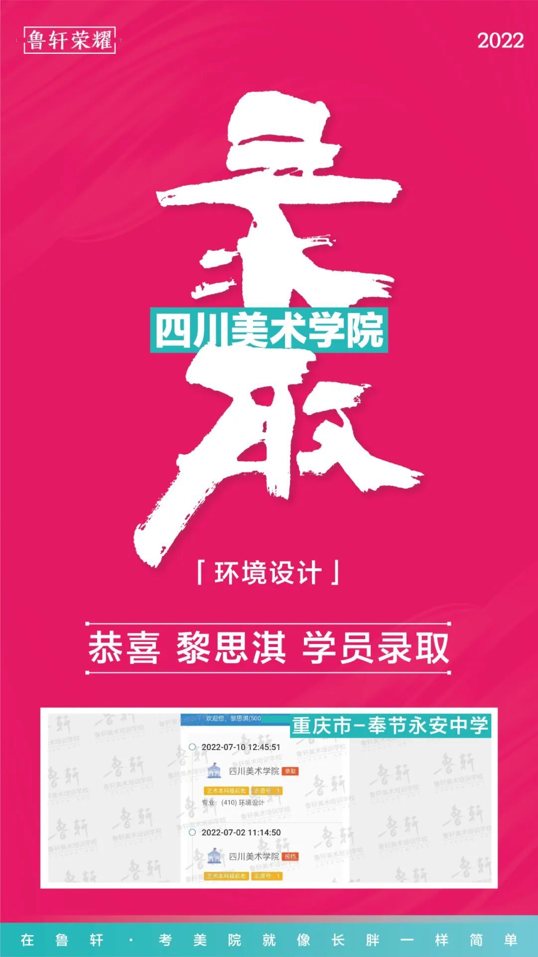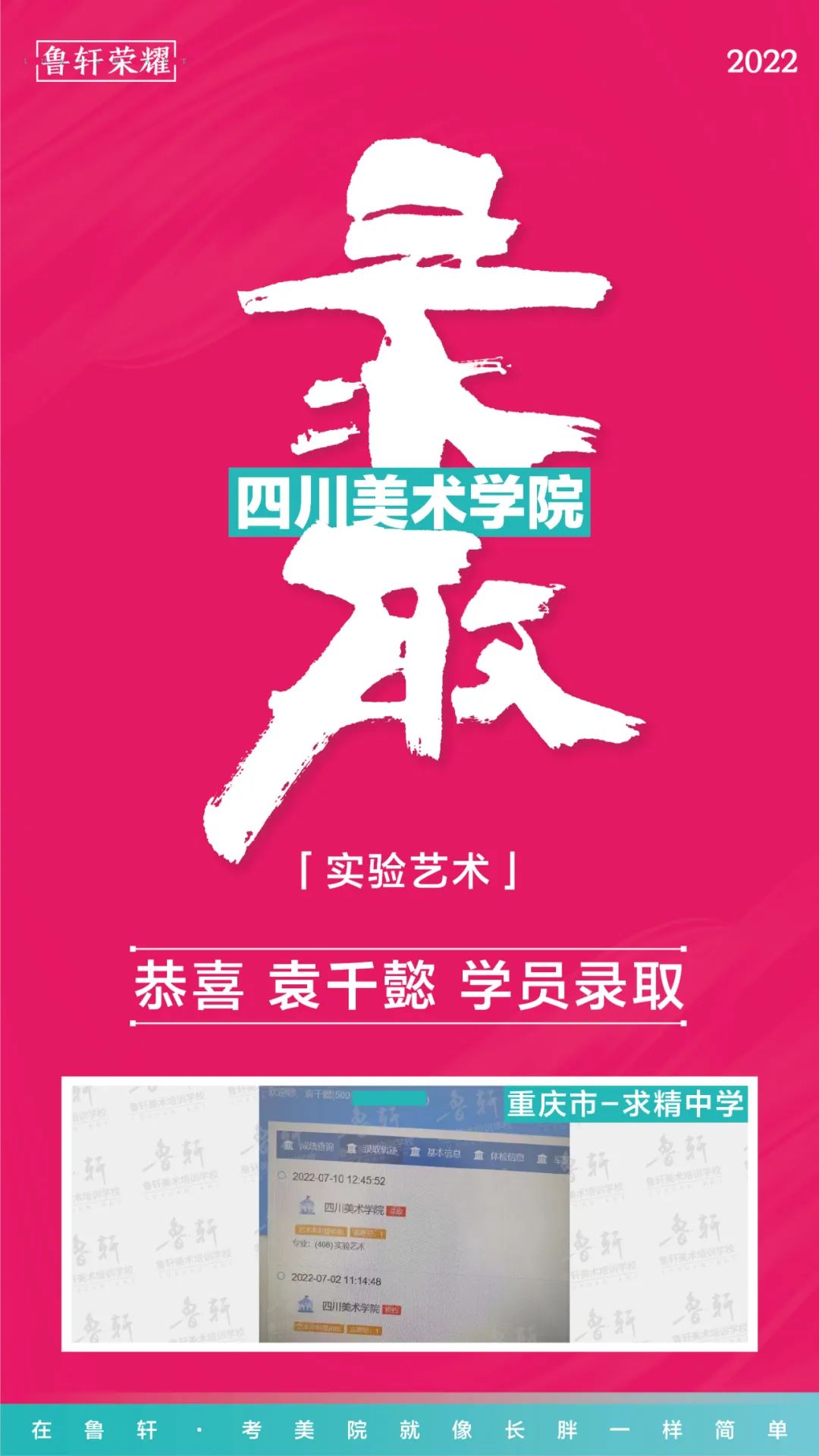 实名公布 || 在重庆,全市1/4川美新生录取来自鲁轩画室!