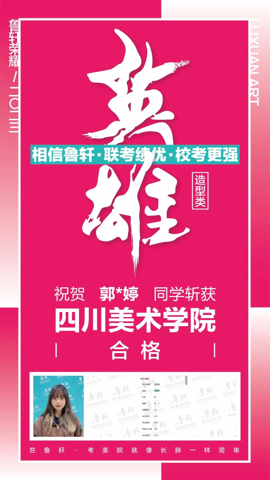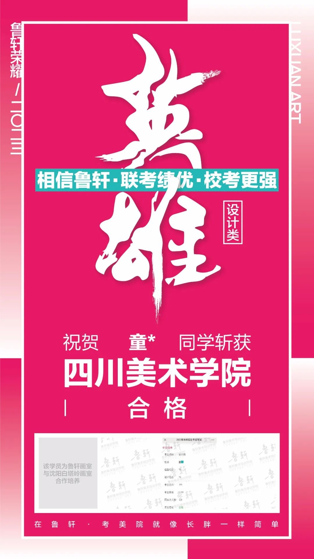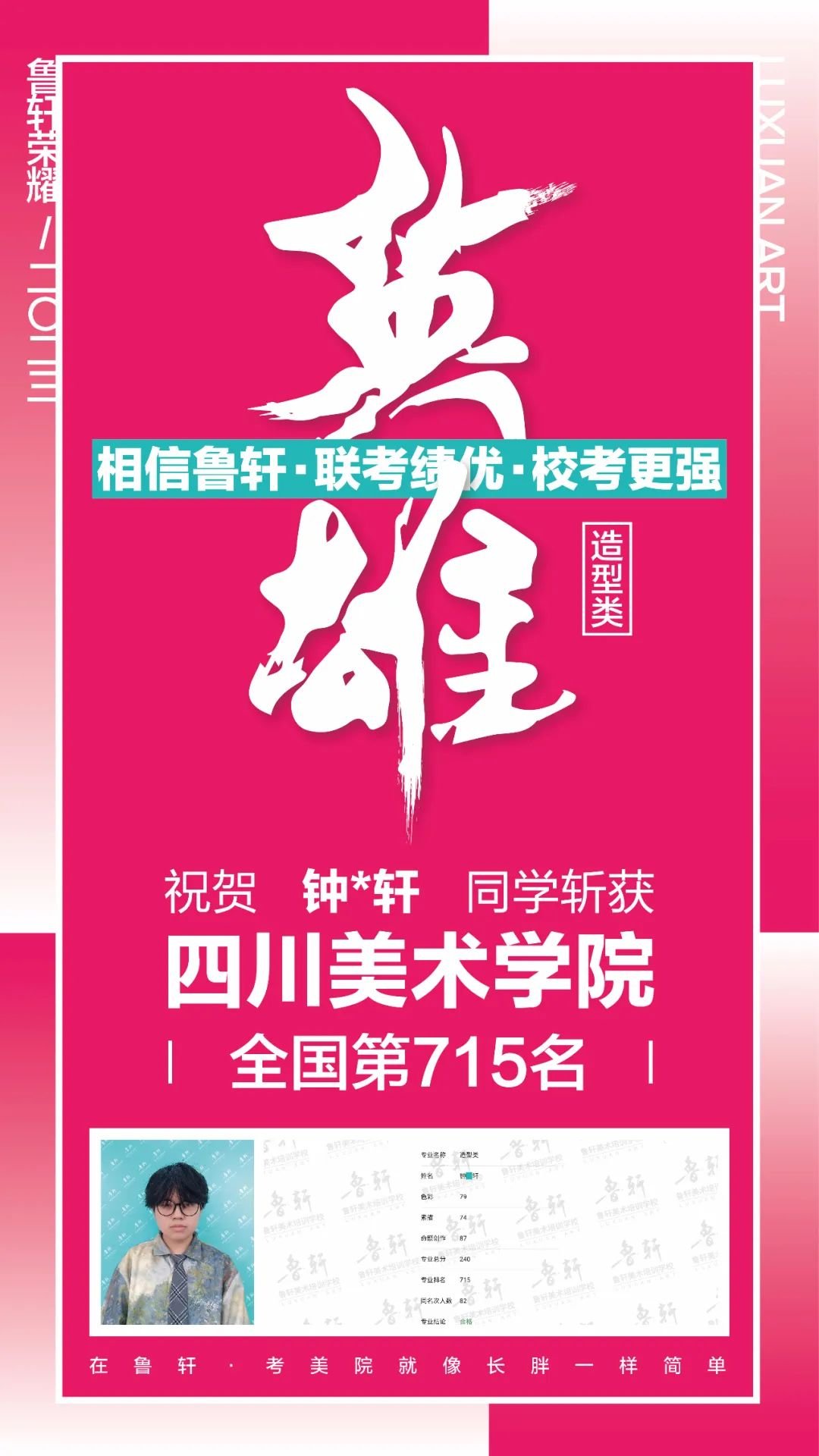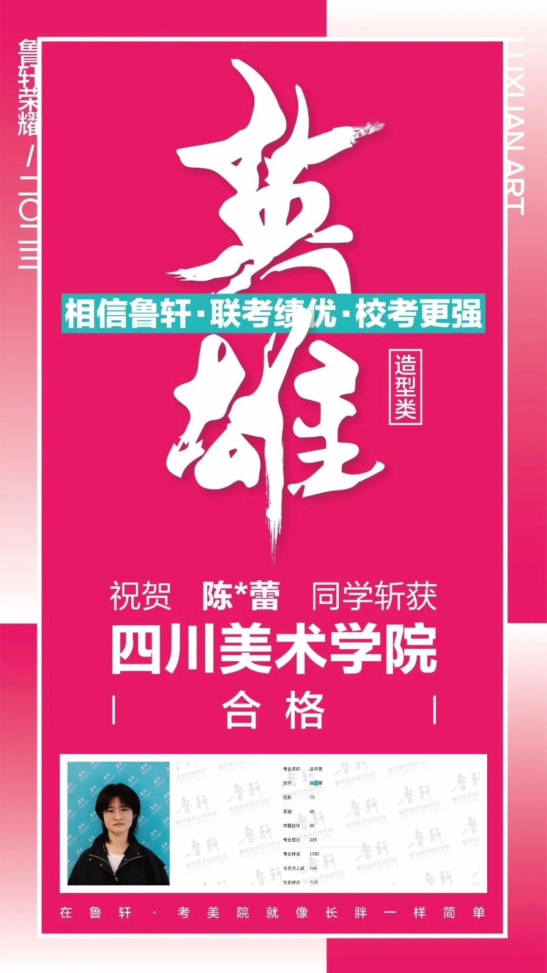 近年来,鲁轩画室专注研究川美教学,成效显著,川美战绩稳定输出,川美超过1/7的美术类学生出自鲁轩画室。