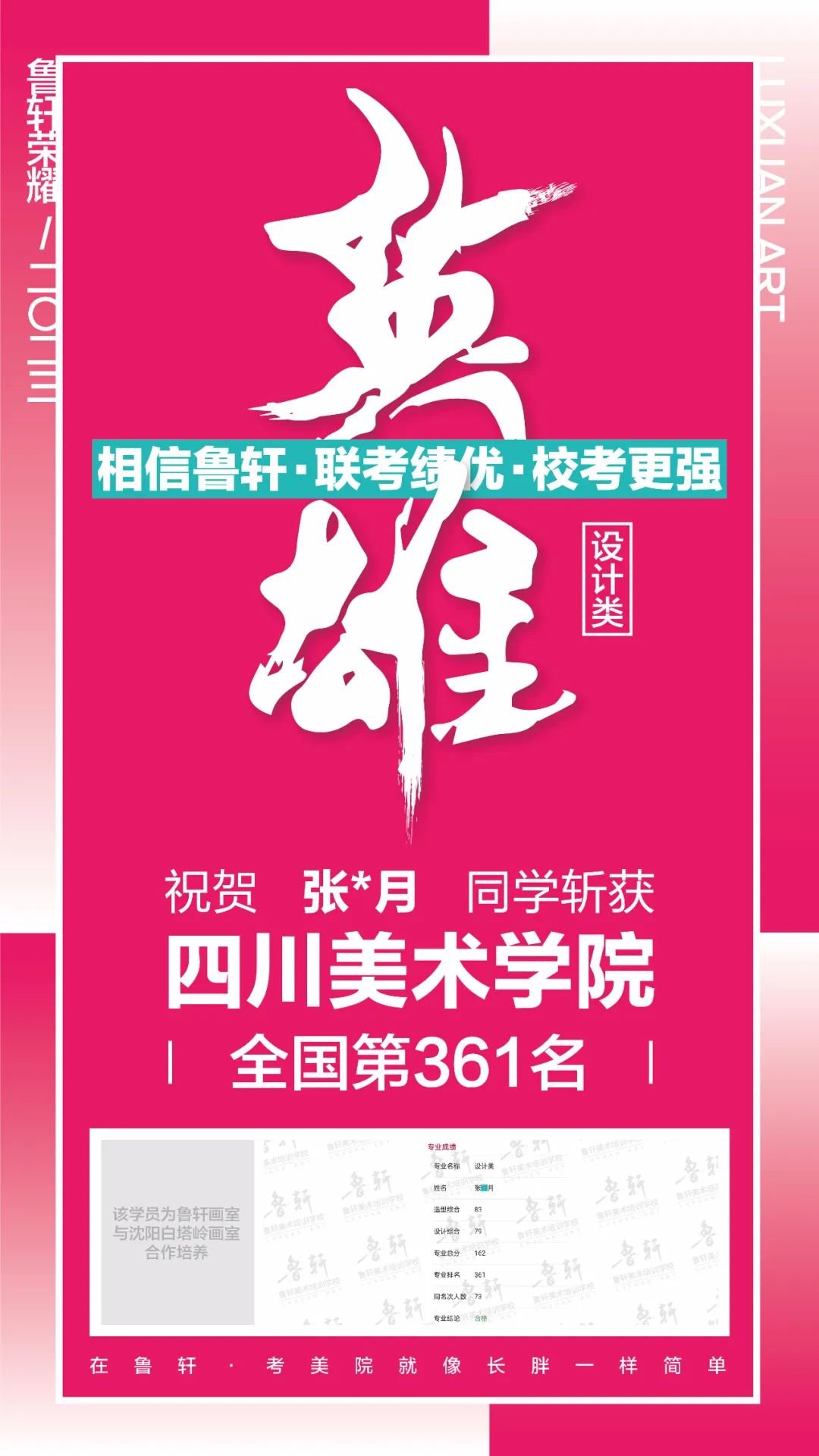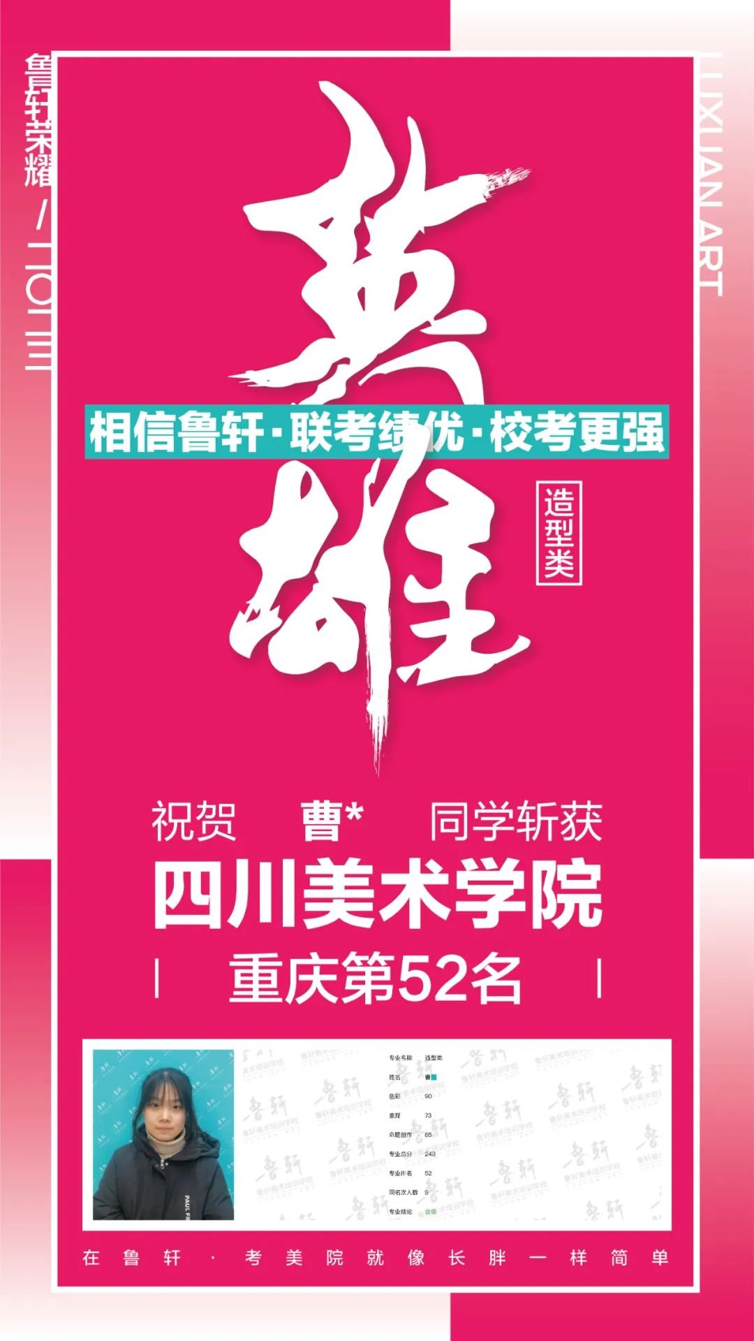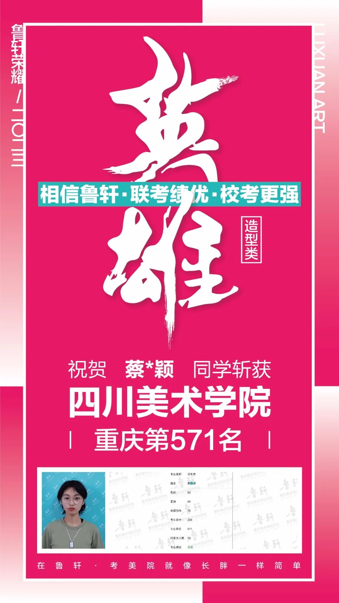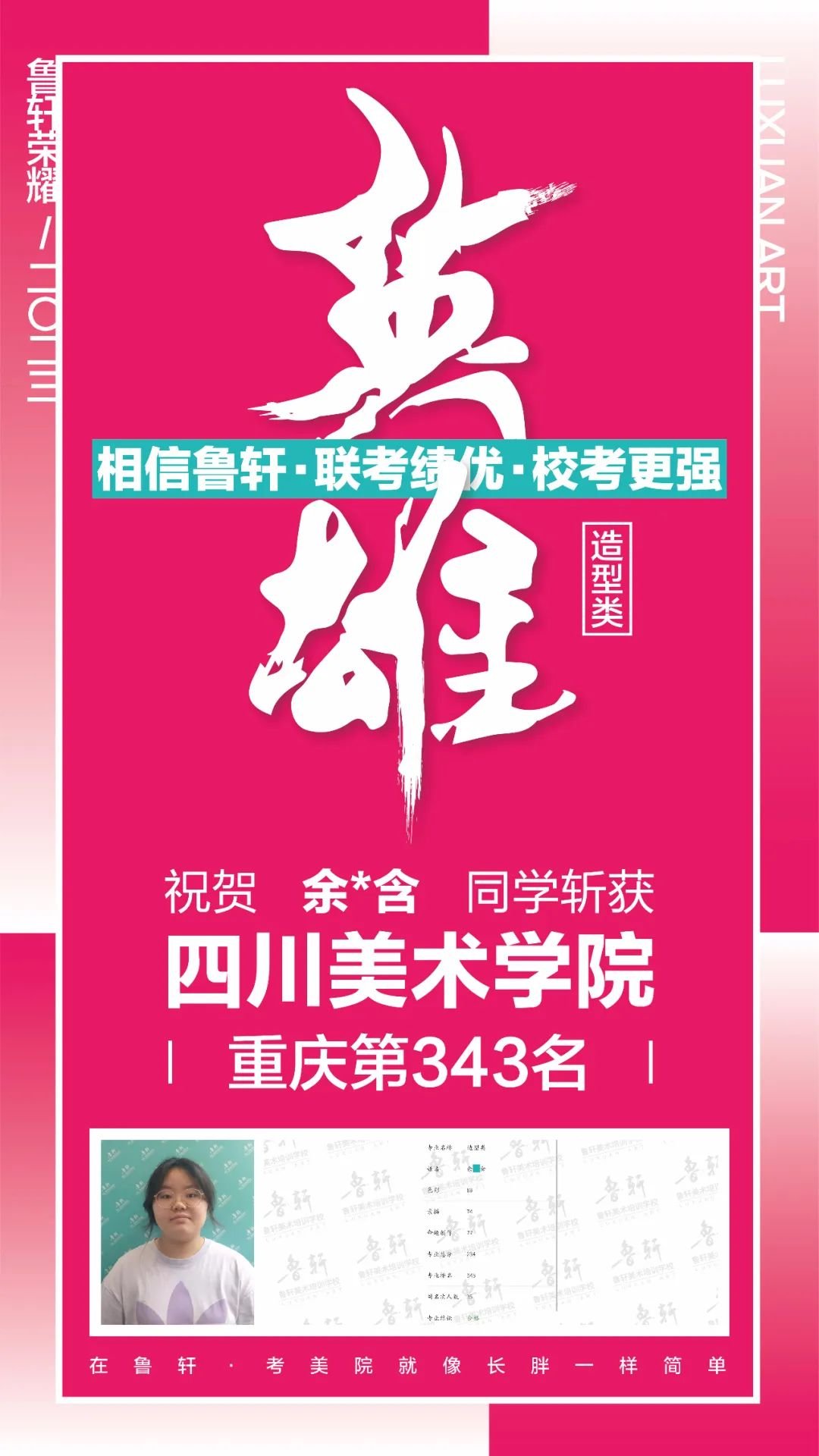 近年来,鲁轩画室专注研究川美教学,成效显著,川美战绩稳定输出,川美超过1/7的美术类学生出自鲁轩画室。