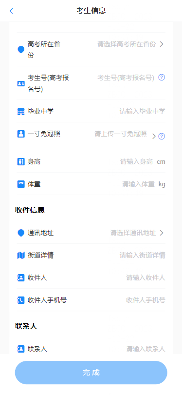 1. 考生须提前准备一张本人近期免冠正面电子证件照。照片格式为jpg或png,照片大小不超过10M。并在考生信息填报时在“免冠照”部分按要求上传。