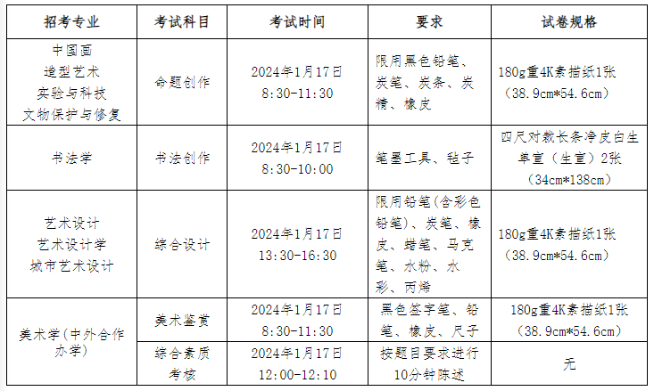 3.绘画工具:考生自行准备画板、画架或桌椅,并按照《中央美术学院2024年本科校考专业招生简章》公布的要求准备绘画材料及作答工具,应尽可能齐全。
