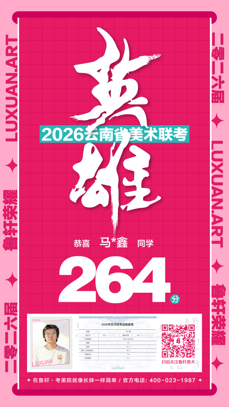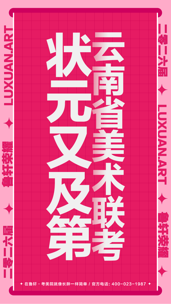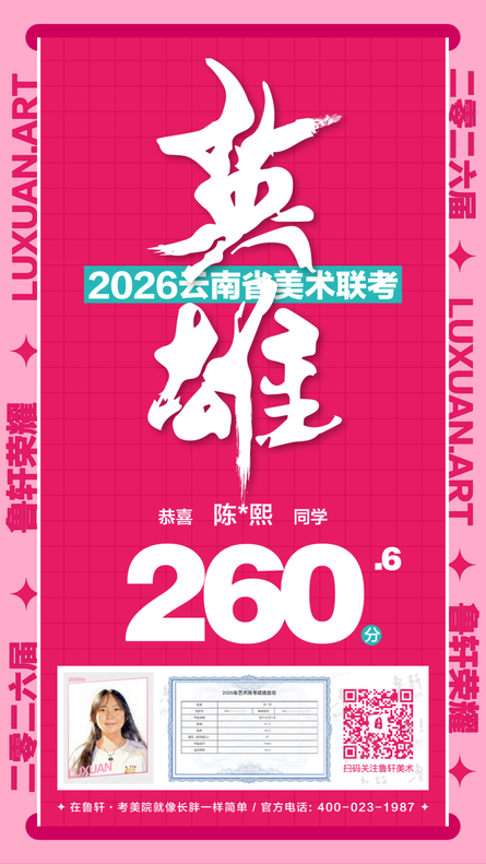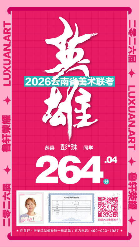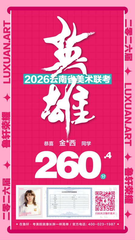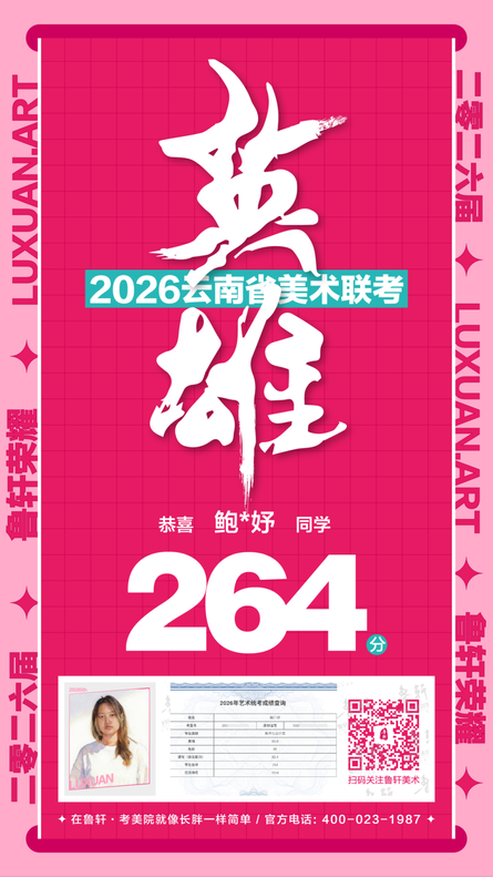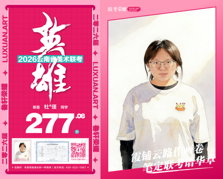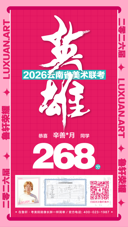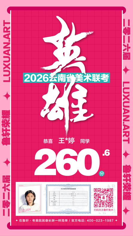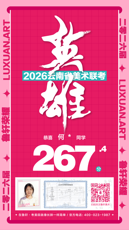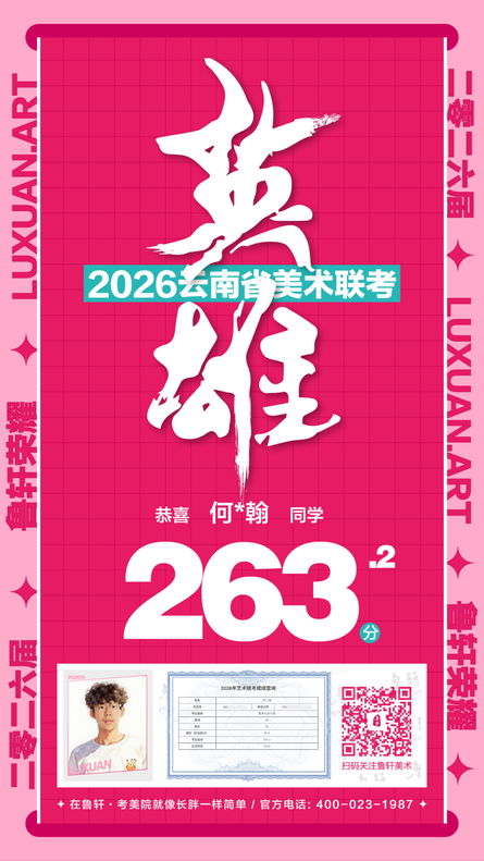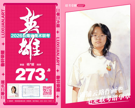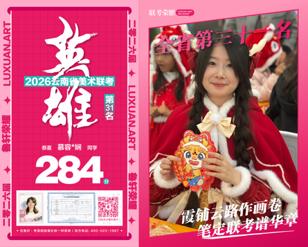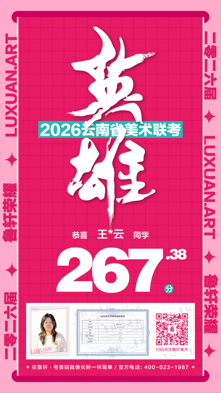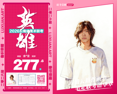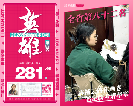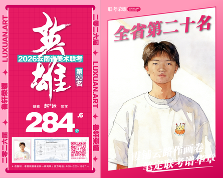 ❖ 2024届,继19届,23届之后,鲁轩再次拿下云南美术联考魁首!全省两连冠!其中,全省前6名独占3位,全省前100名霸榜20位!
