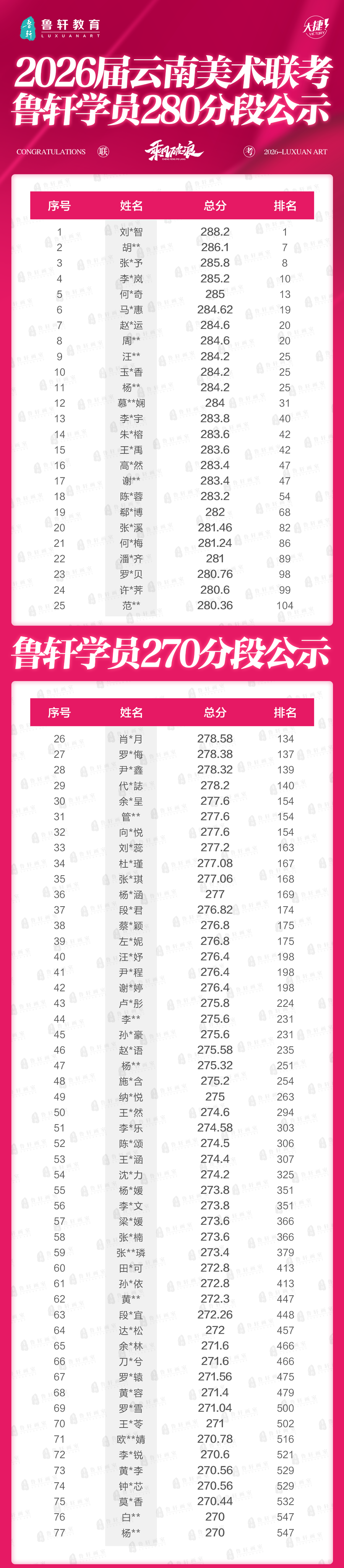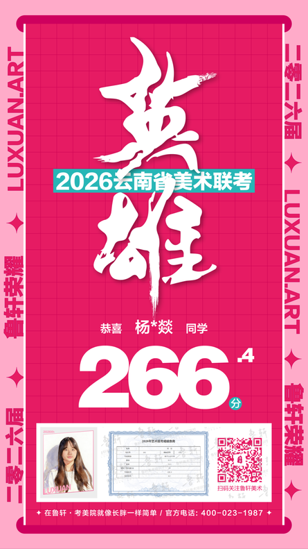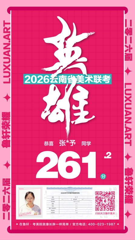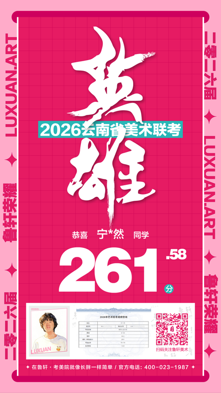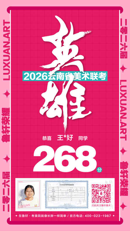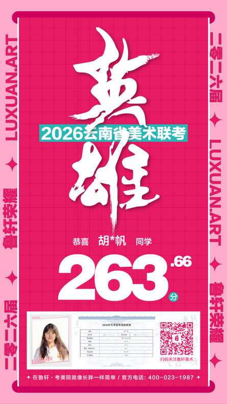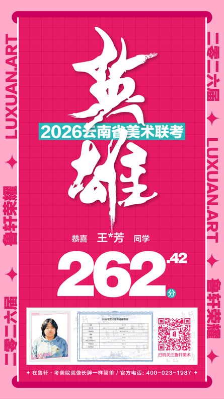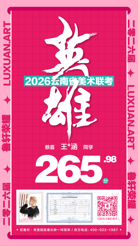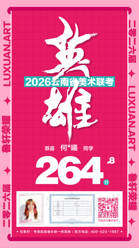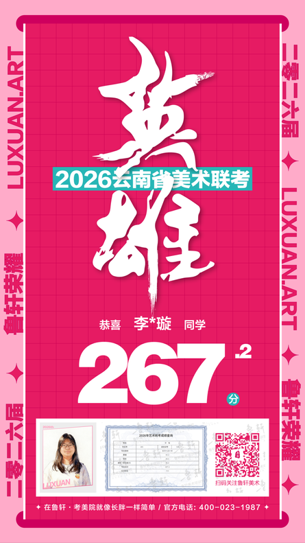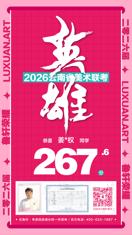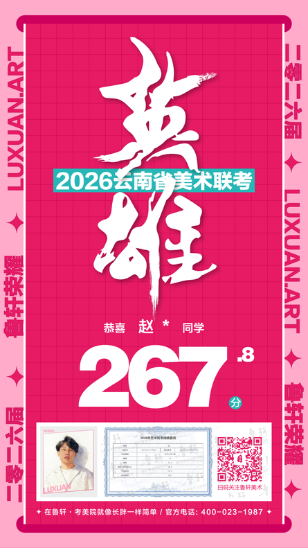 ❖ 2024届,继19届,23届之后,鲁轩再次拿下云南美术联考魁首!全省两连冠!其中,全省前6名独占3位,全省前100名霸榜20位!
