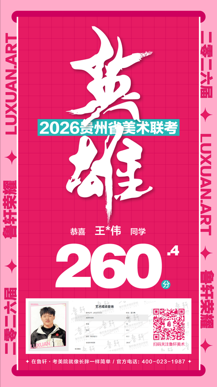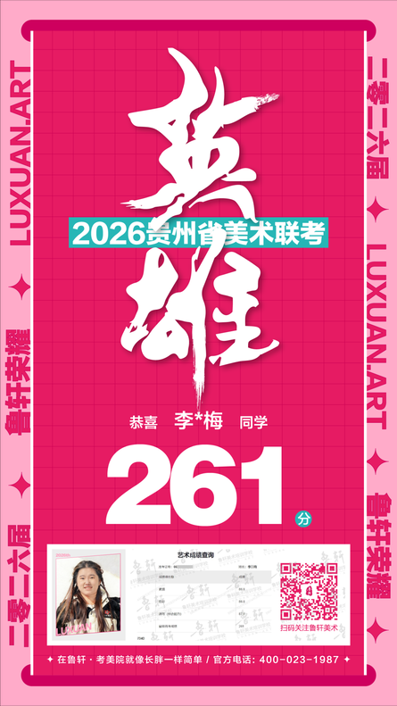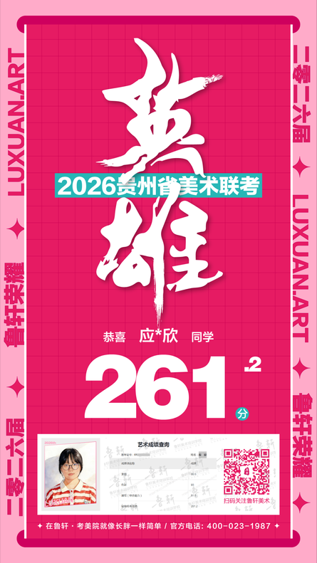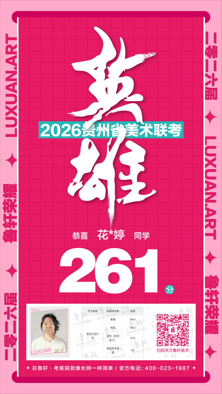 连续六年,鲁轩用彪悍的战绩捍卫了贵州美术培训的王者荣耀!