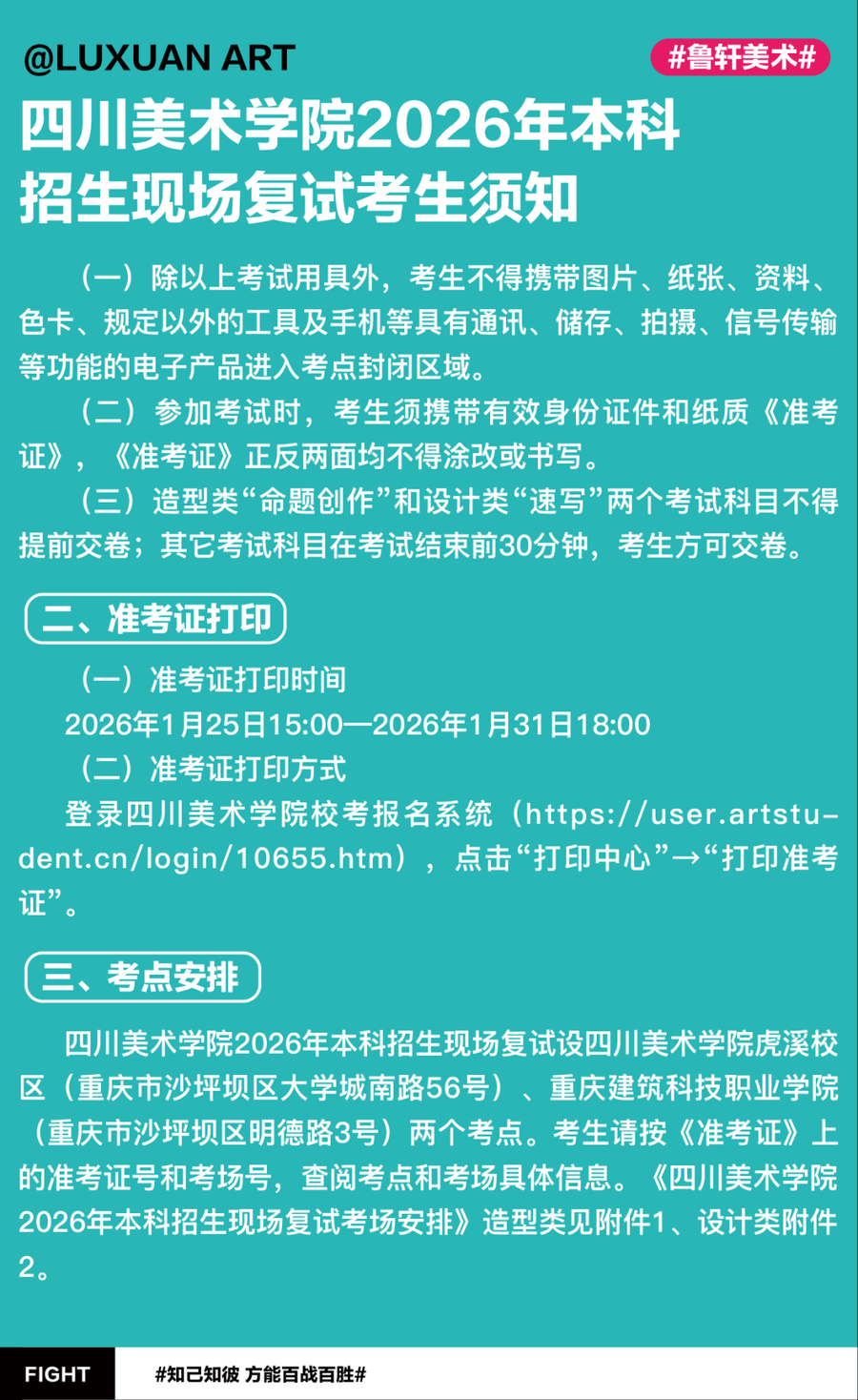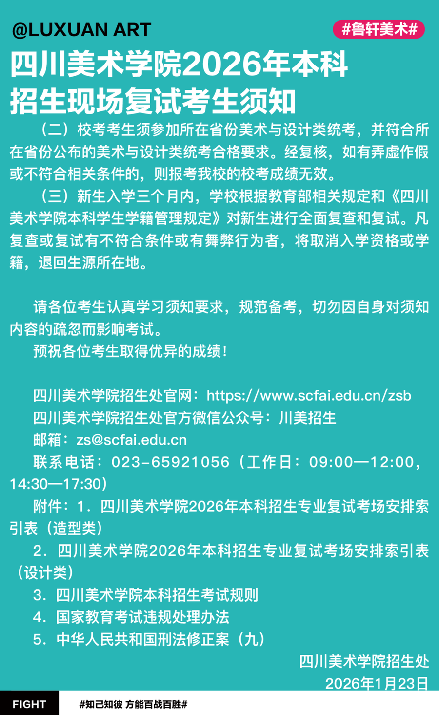最新资讯 | 四川美术学院2026年本科招生现场复试考生须知
