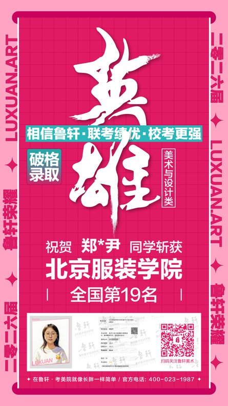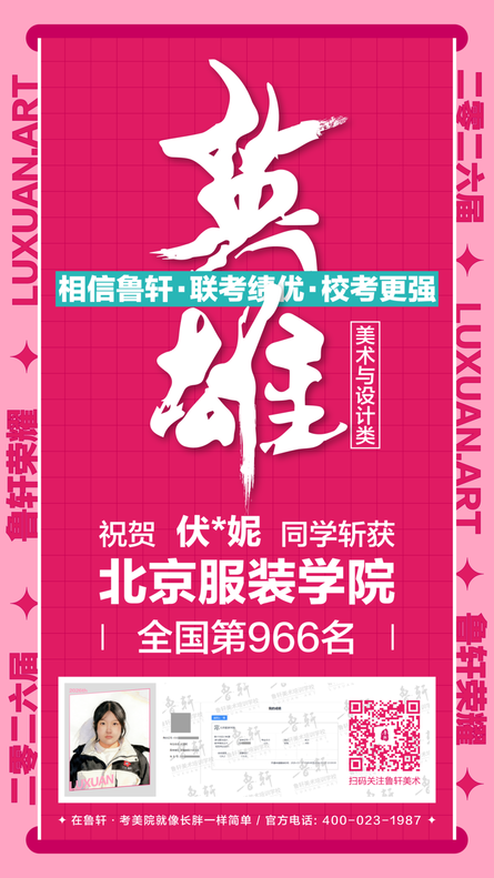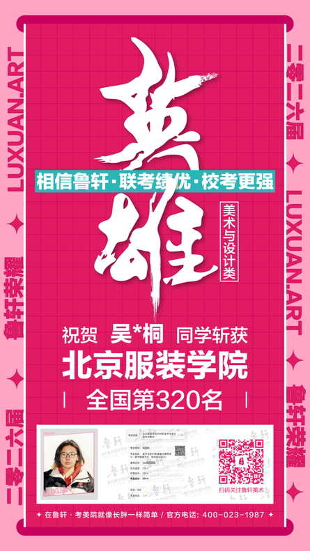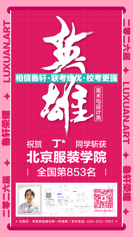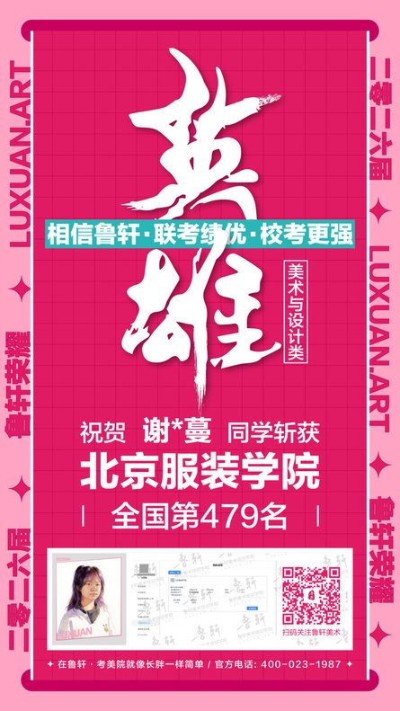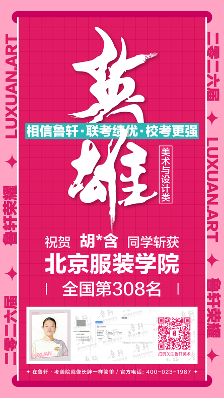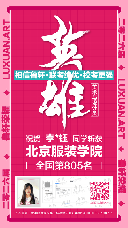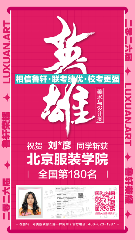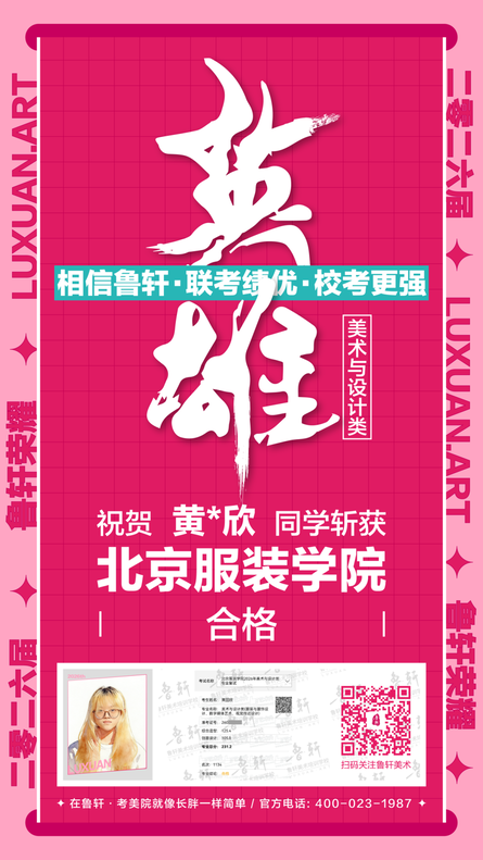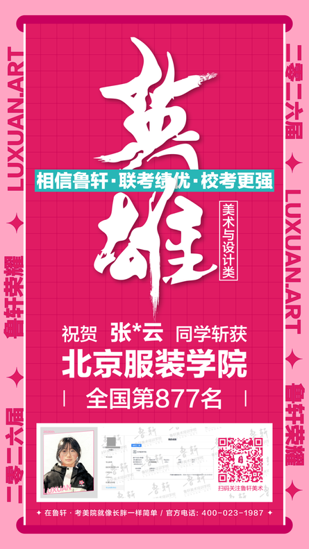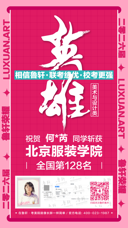 截至目前,鲁轩今年共斩获59张北服合格证!其中,黄心语同学斩获北京服装学院美术与设计类全国第8名!破格录取6位!在西南地区各大机构一骑绝尘!