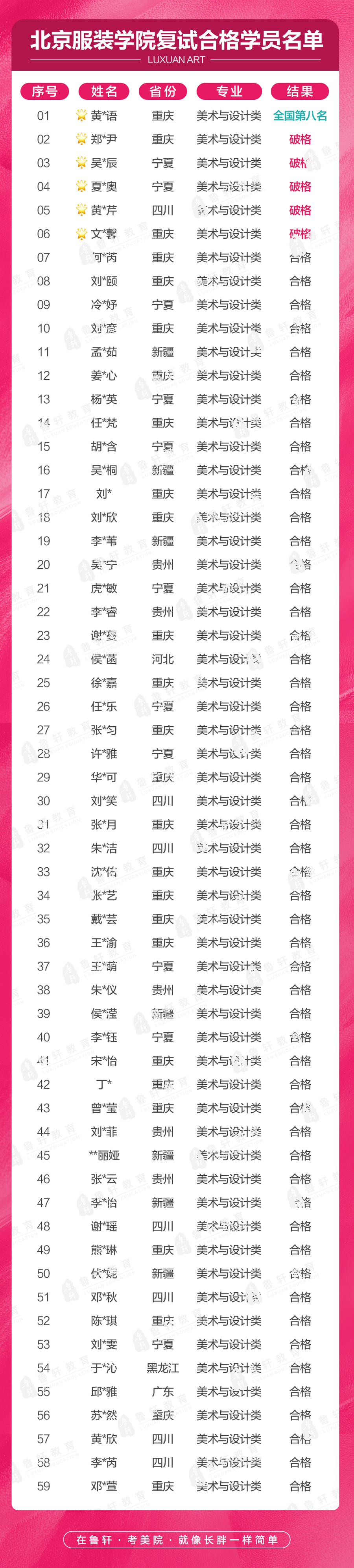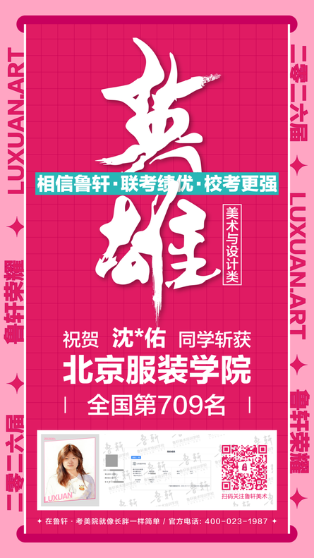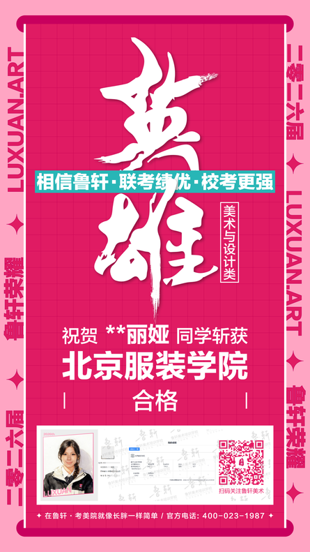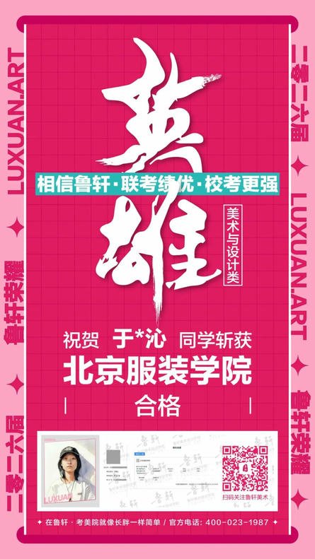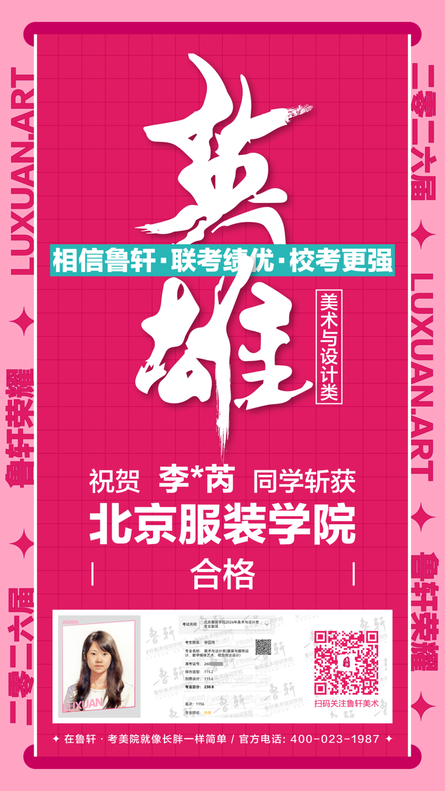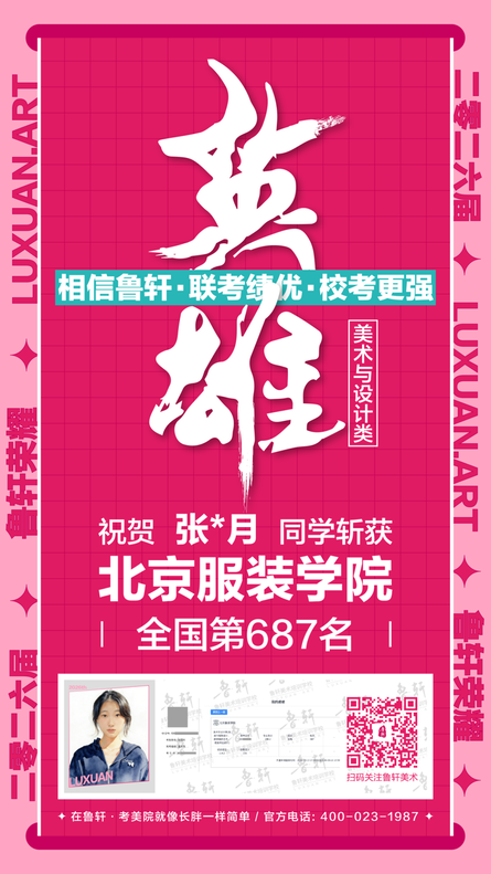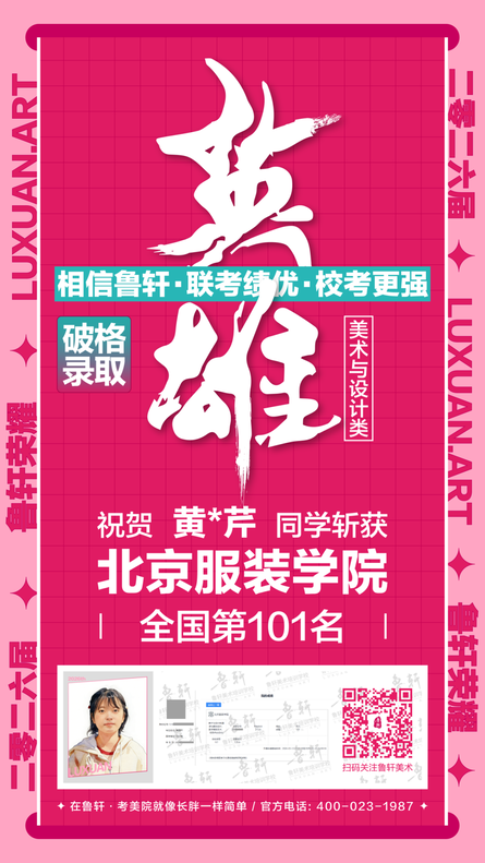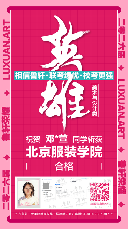 截至目前,鲁轩今年共斩获59张北服合格证!其中,黄心语同学斩获北京服装学院美术与设计类全国第8名!破格录取6位!在西南地区各大机构一骑绝尘!