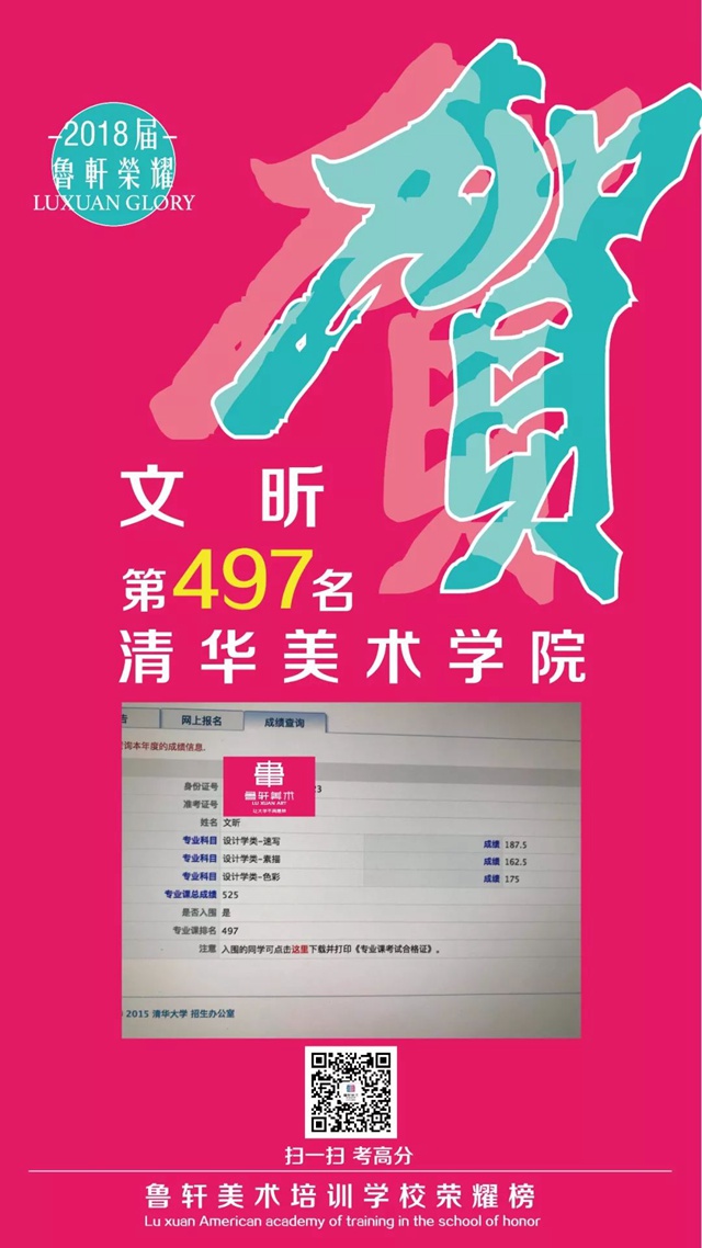 ,鲁轩首次组织学生参考清华央美,12人参考,收获清华3位,老师们兴奋的一宿没睡,原来我们自己也可以培养清华!