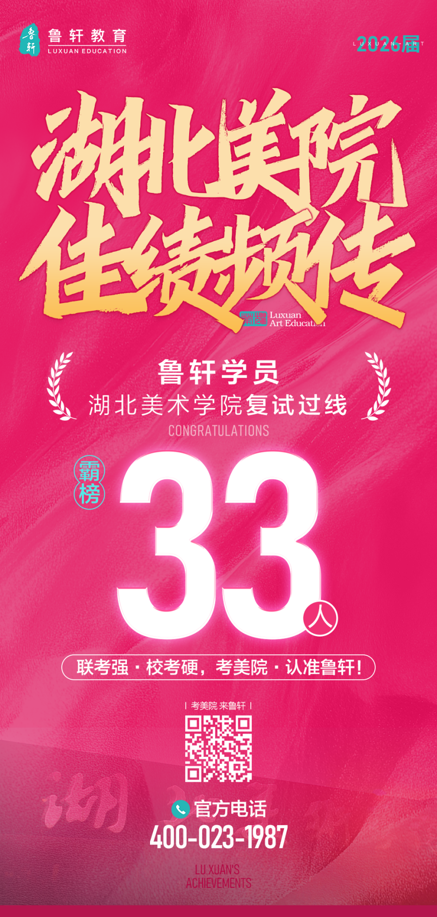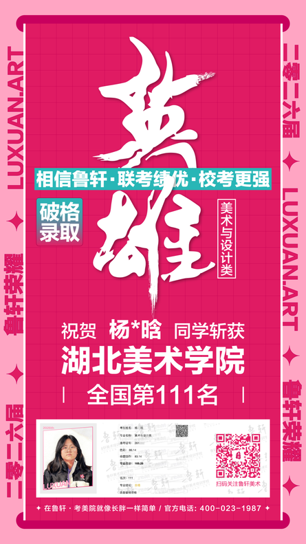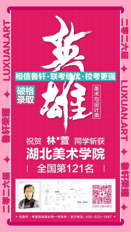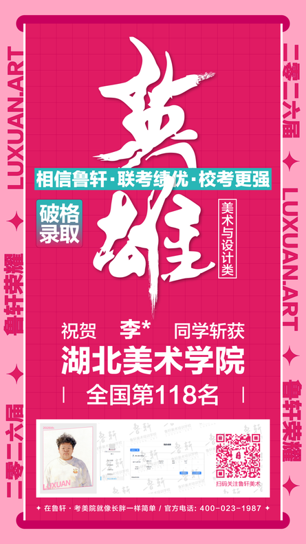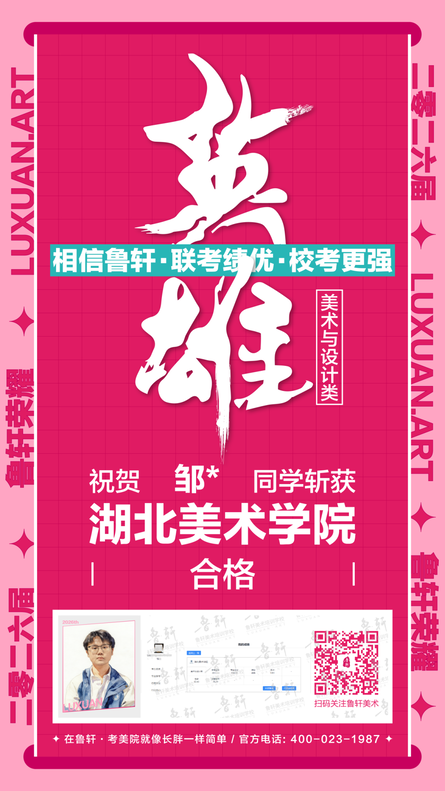 湖美荣耀 || 鲁轩26届湖美过线33位!破格录取4位!考美院,请认准鲁轩!