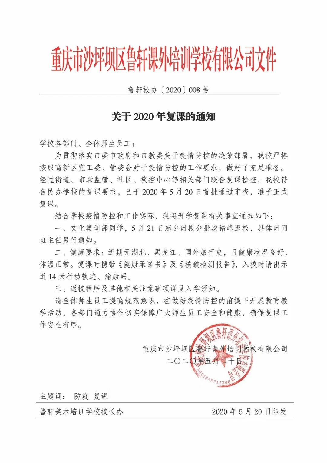 作为重庆市第一批被批准复课的美术培训机构,鲁轩画室的正规办学和优秀成绩让每一个选择鲁轩的家庭得到确实的保障。复课在即,我校将在做好防疫工作的同时竭尽全力做好教学!